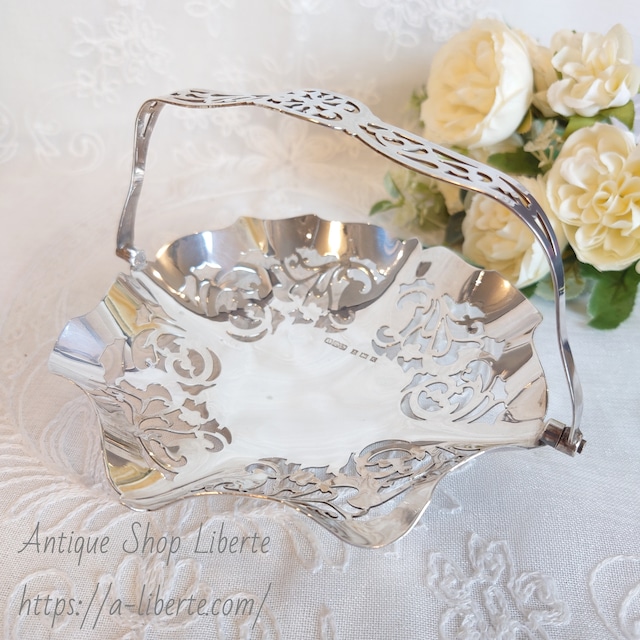 イギリス 純銀 スイングハンドル シルバーバスケット