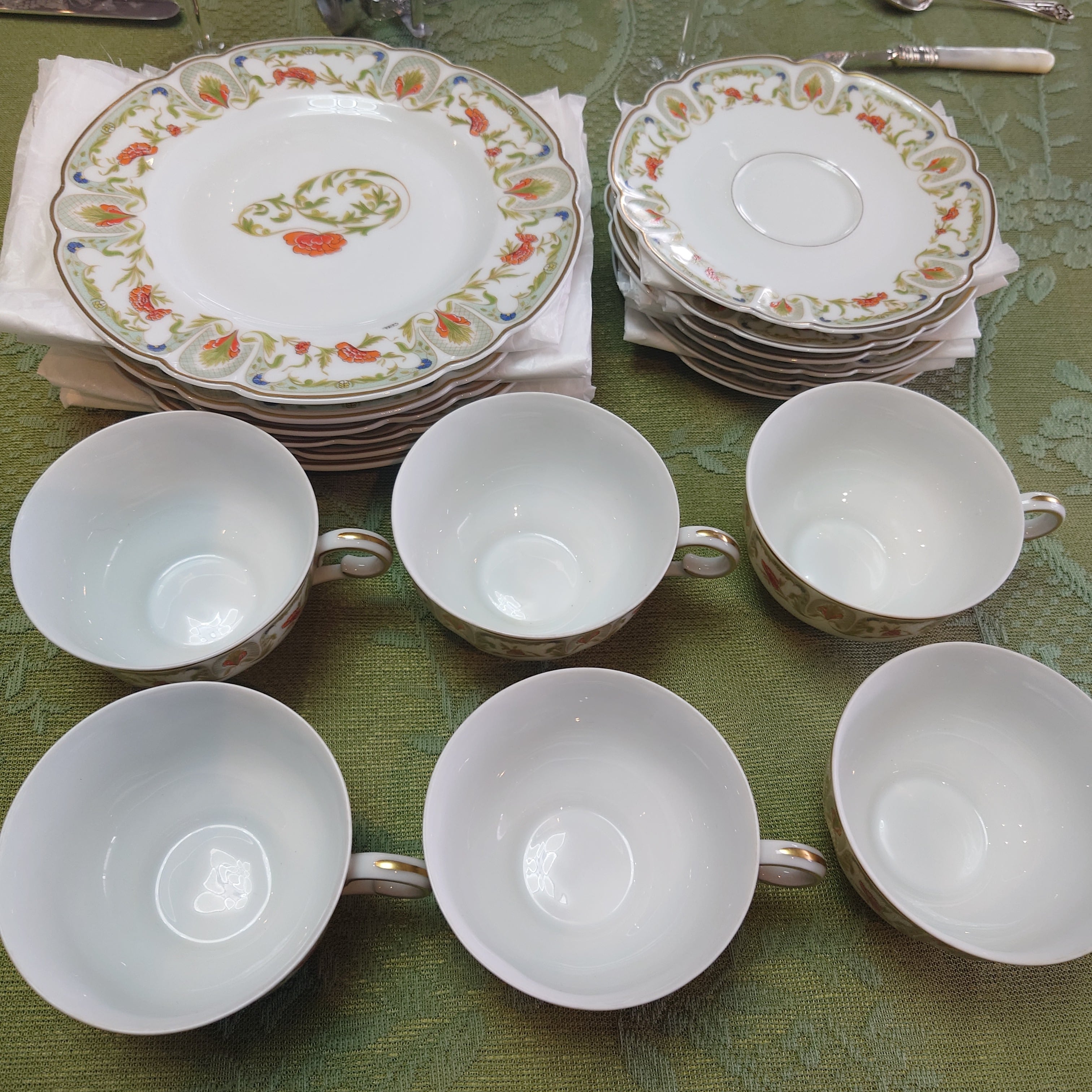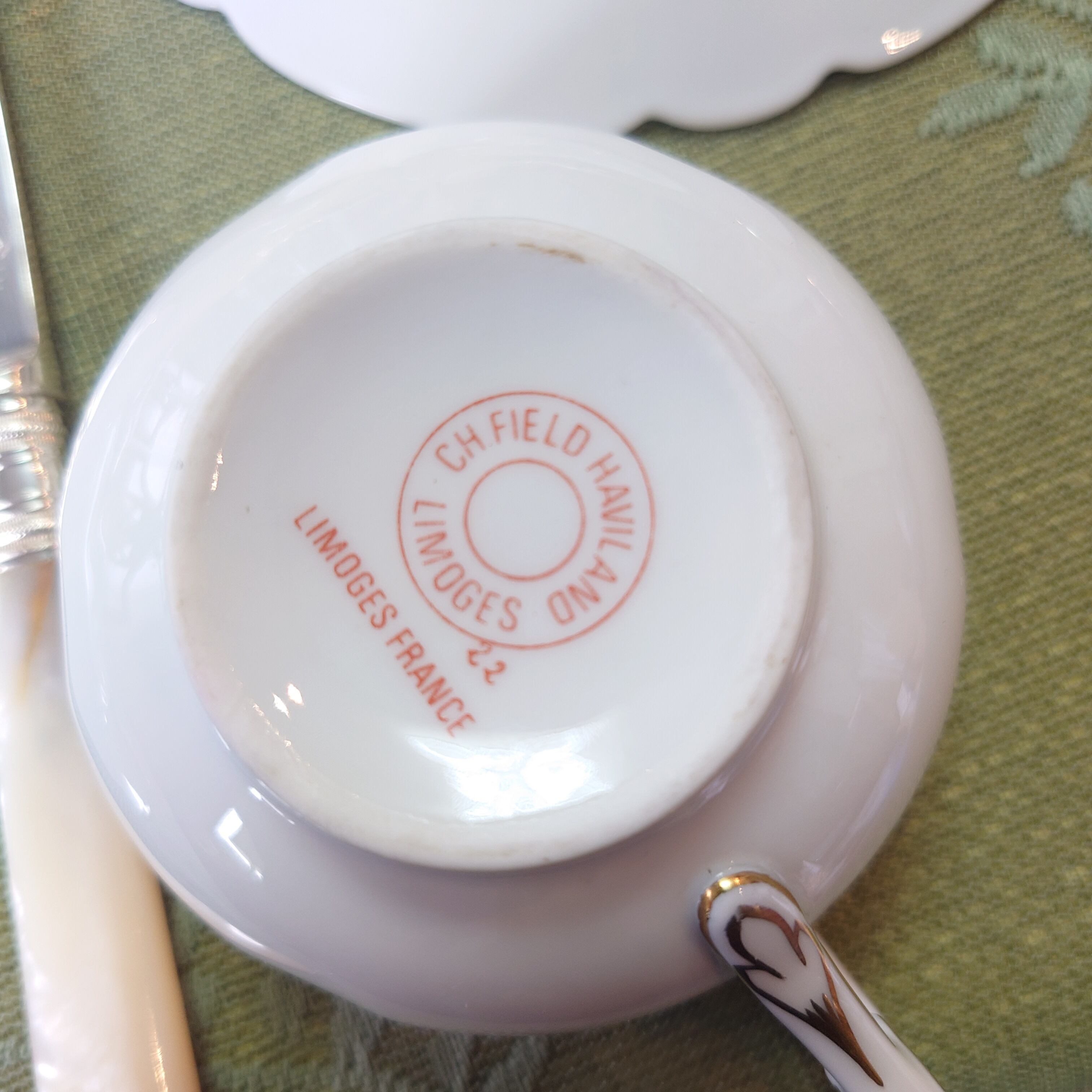 一部高台にやや黒ずみ、金彩のスレ、カップ1客にはハンドルの金彩にほんの少し剥がれが見られますが、それ以外は目立った欠けや汚れもなく、とても綺麗な状態です