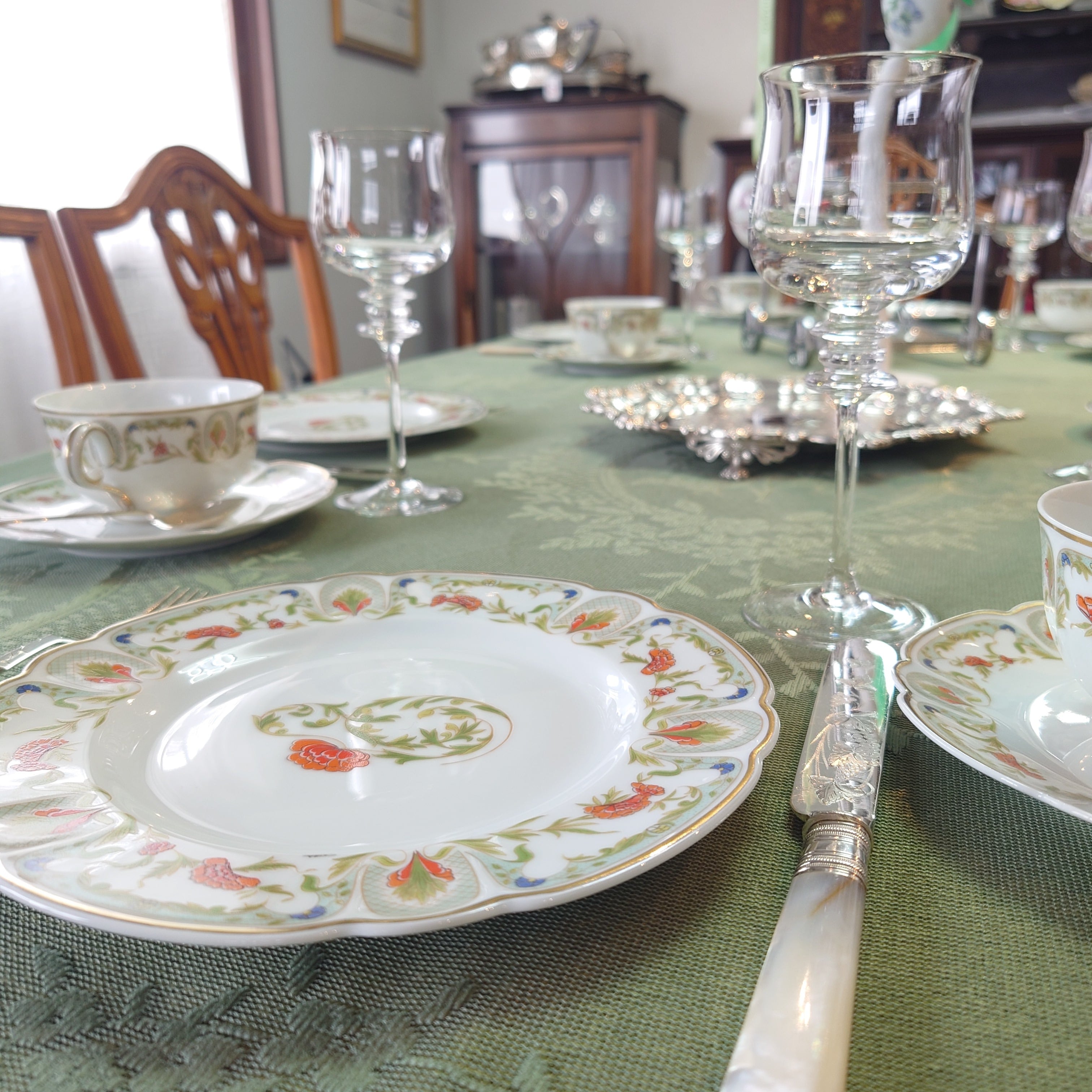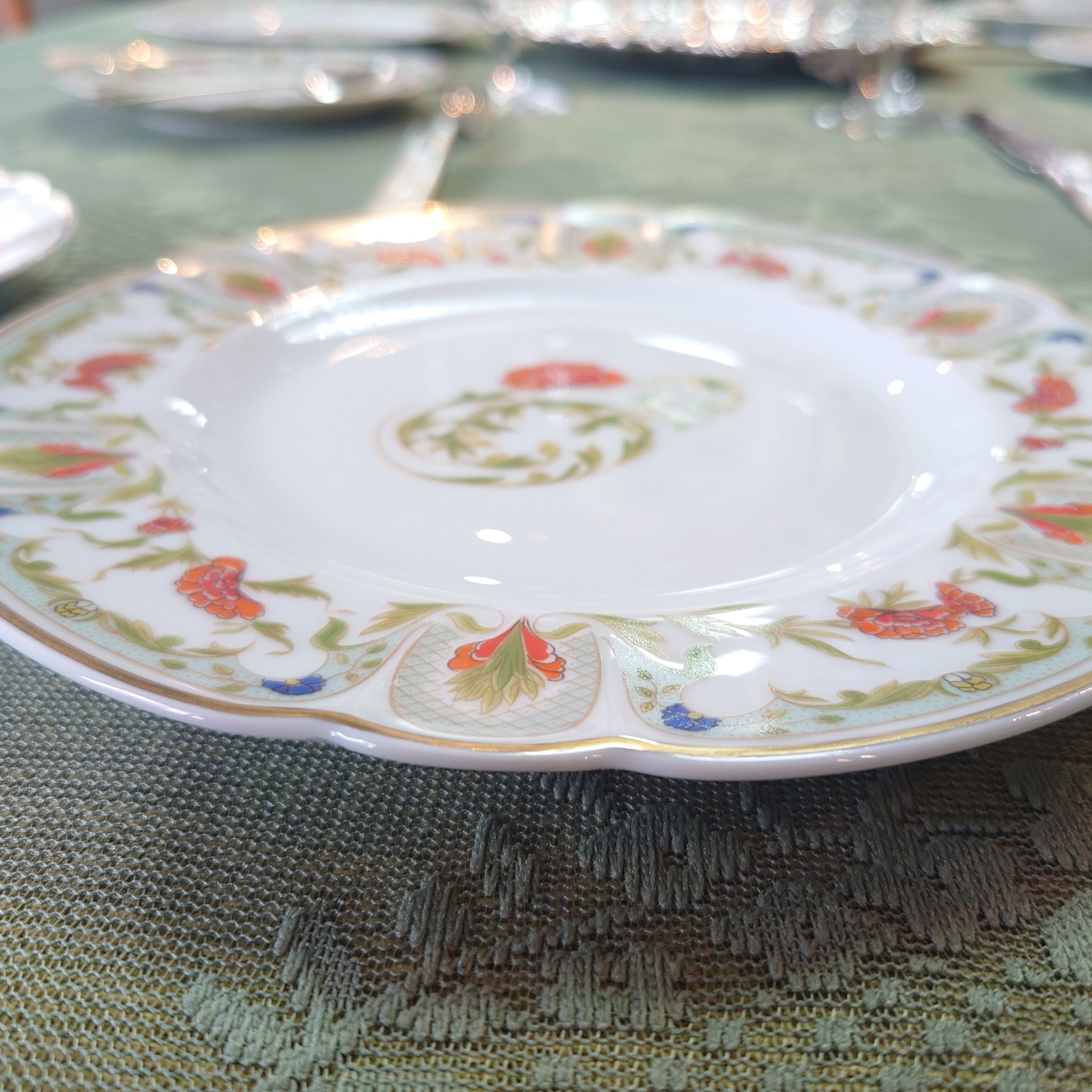 オリエンタルなお花のデザインがシックで大人な印象のテーブルコーディネートに仕上げくれそうです♪