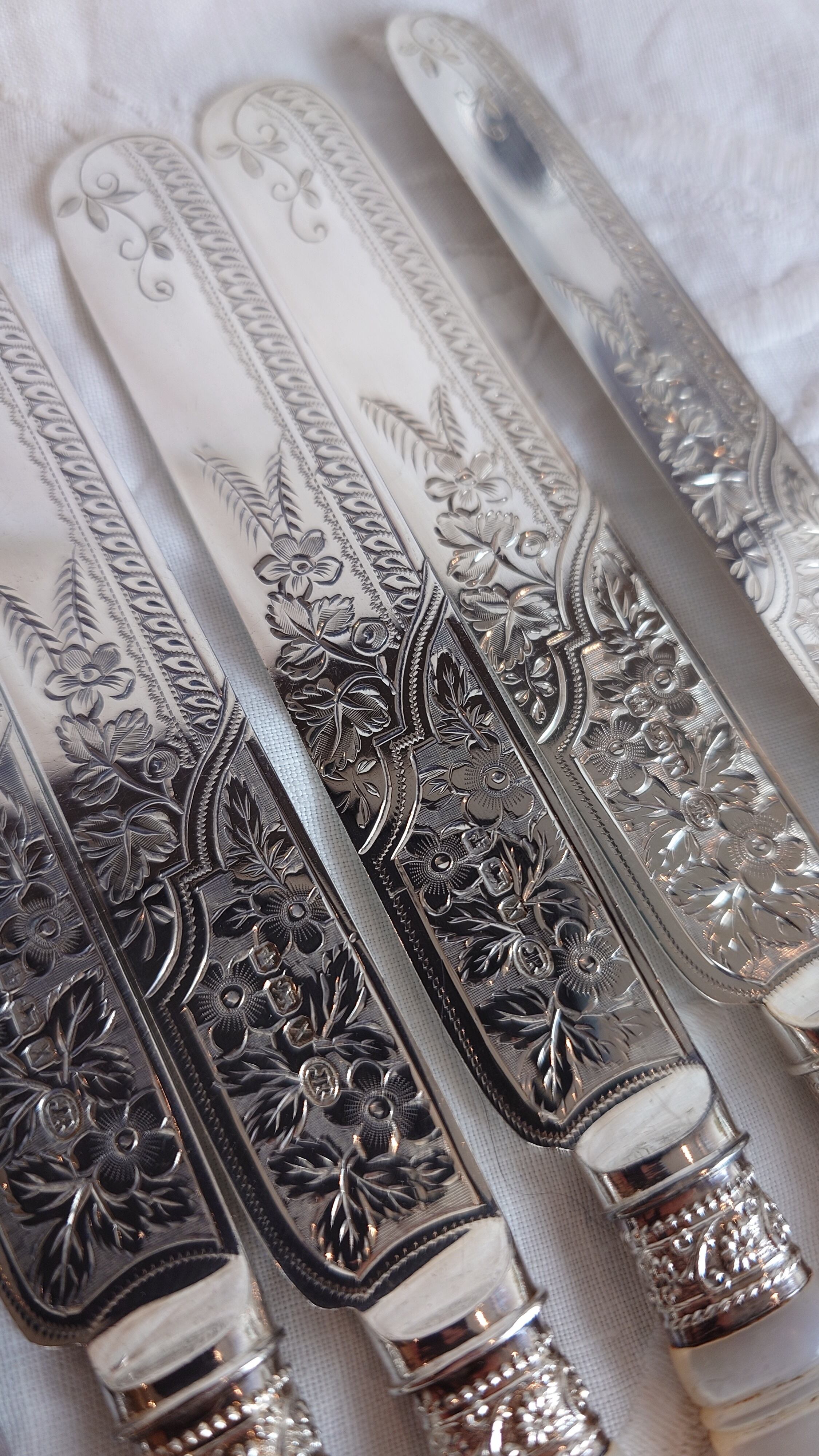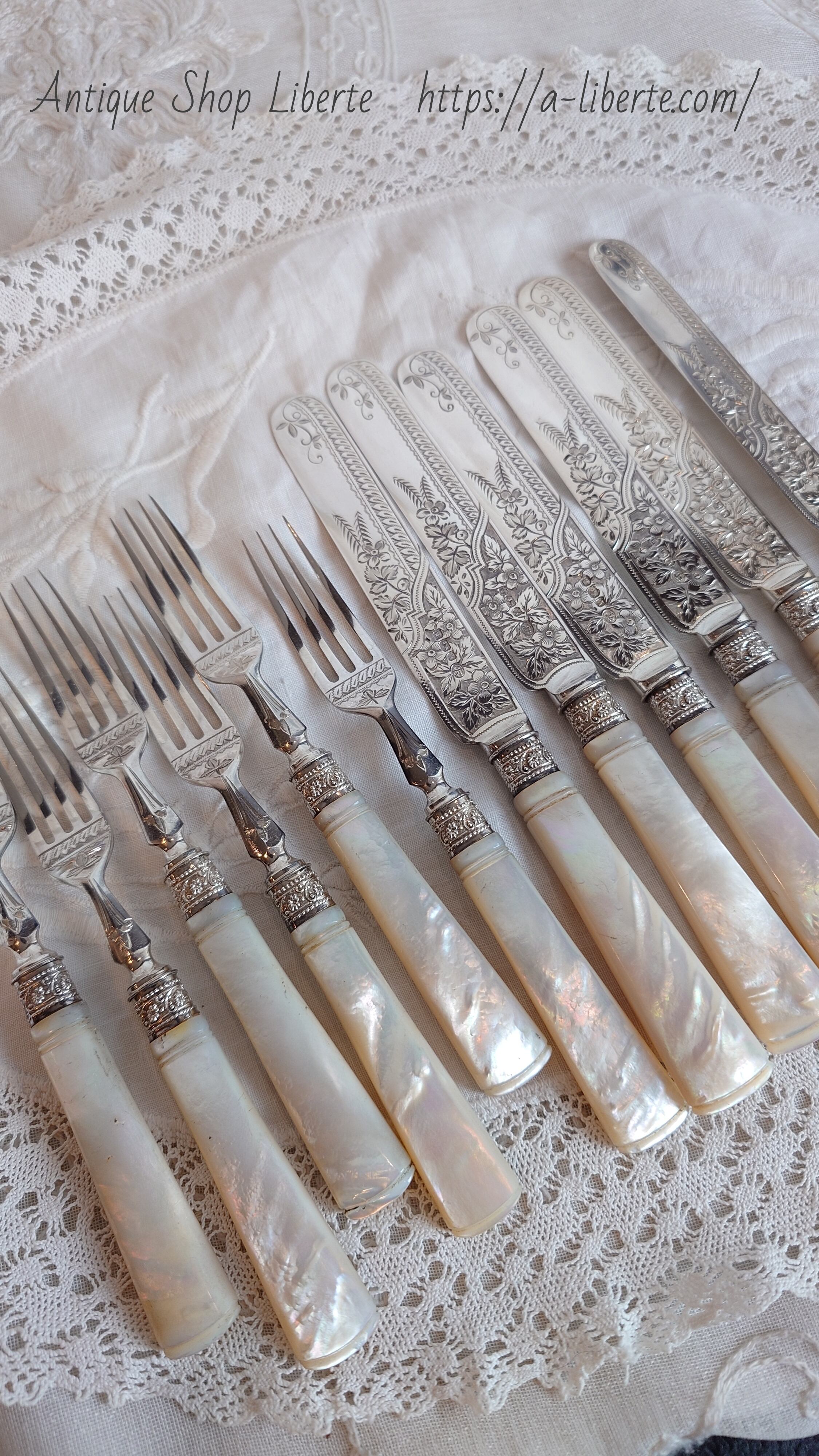 白蝶貝カトラリーセット 純銀製 イギリス アンティーク