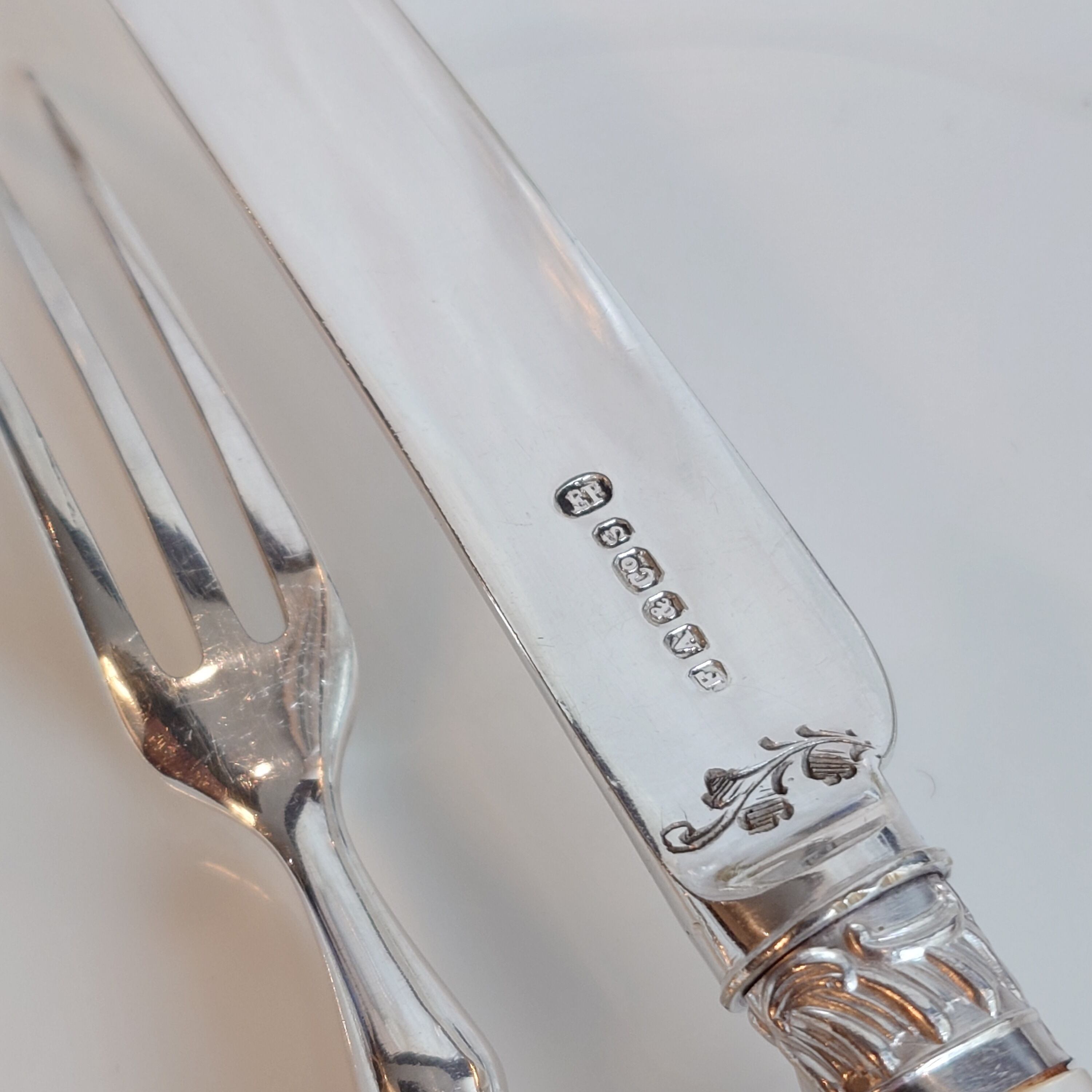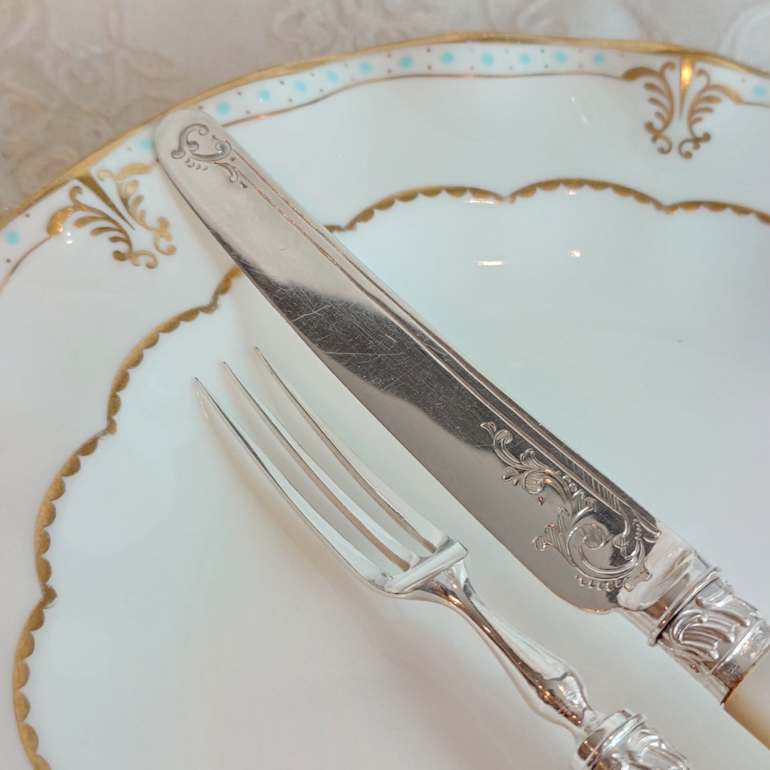 流れるようなスクロールの美しいレリーフと、裏面にも控えめに継ぎ目付近にレリーフが施された華やかで上品なカトラリーです。