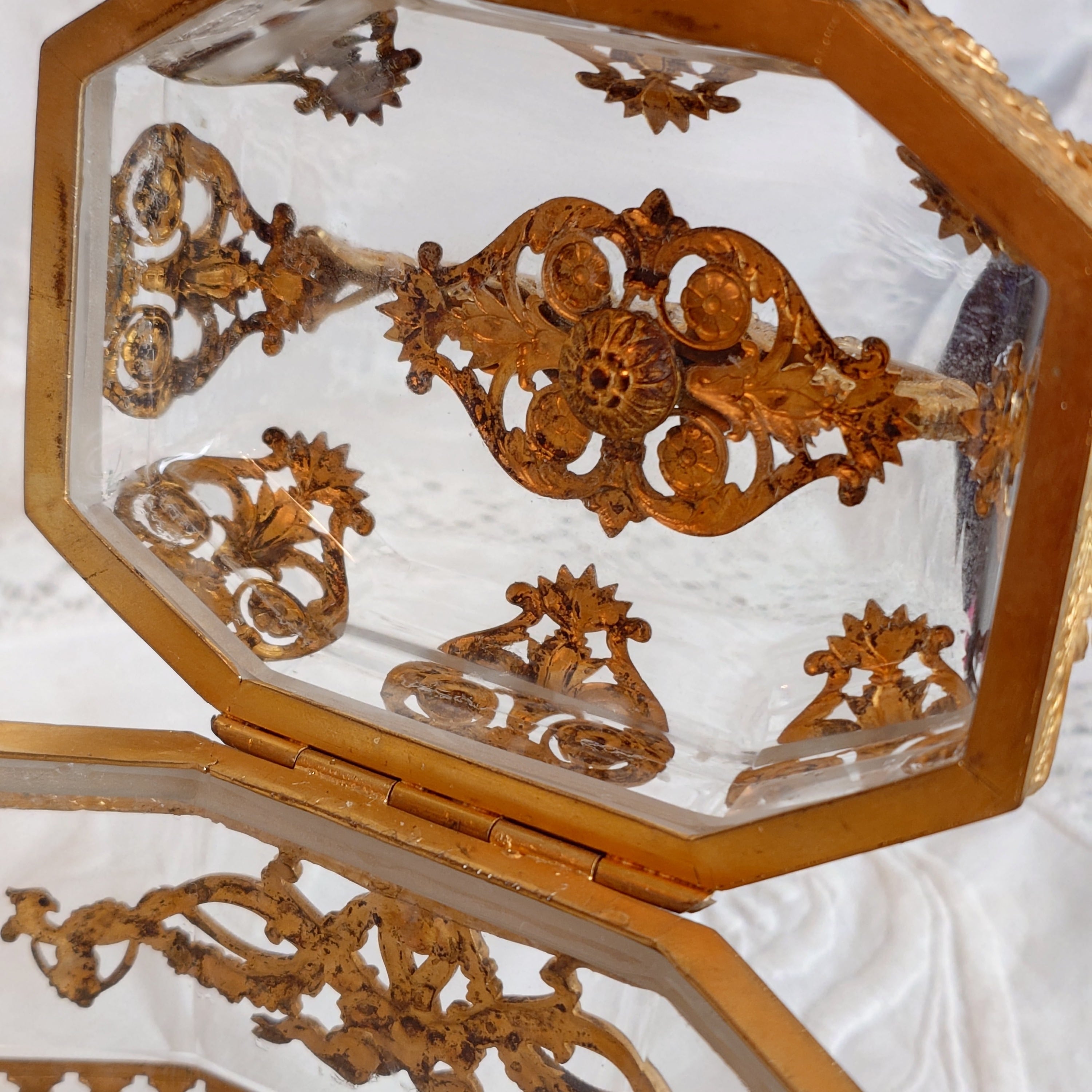 使い方によっては内部に柔らかいベルベット等を敷いて頂いても、あえて何も無しでアンティークガラスの雰囲気をそのままお楽しみ頂けます。