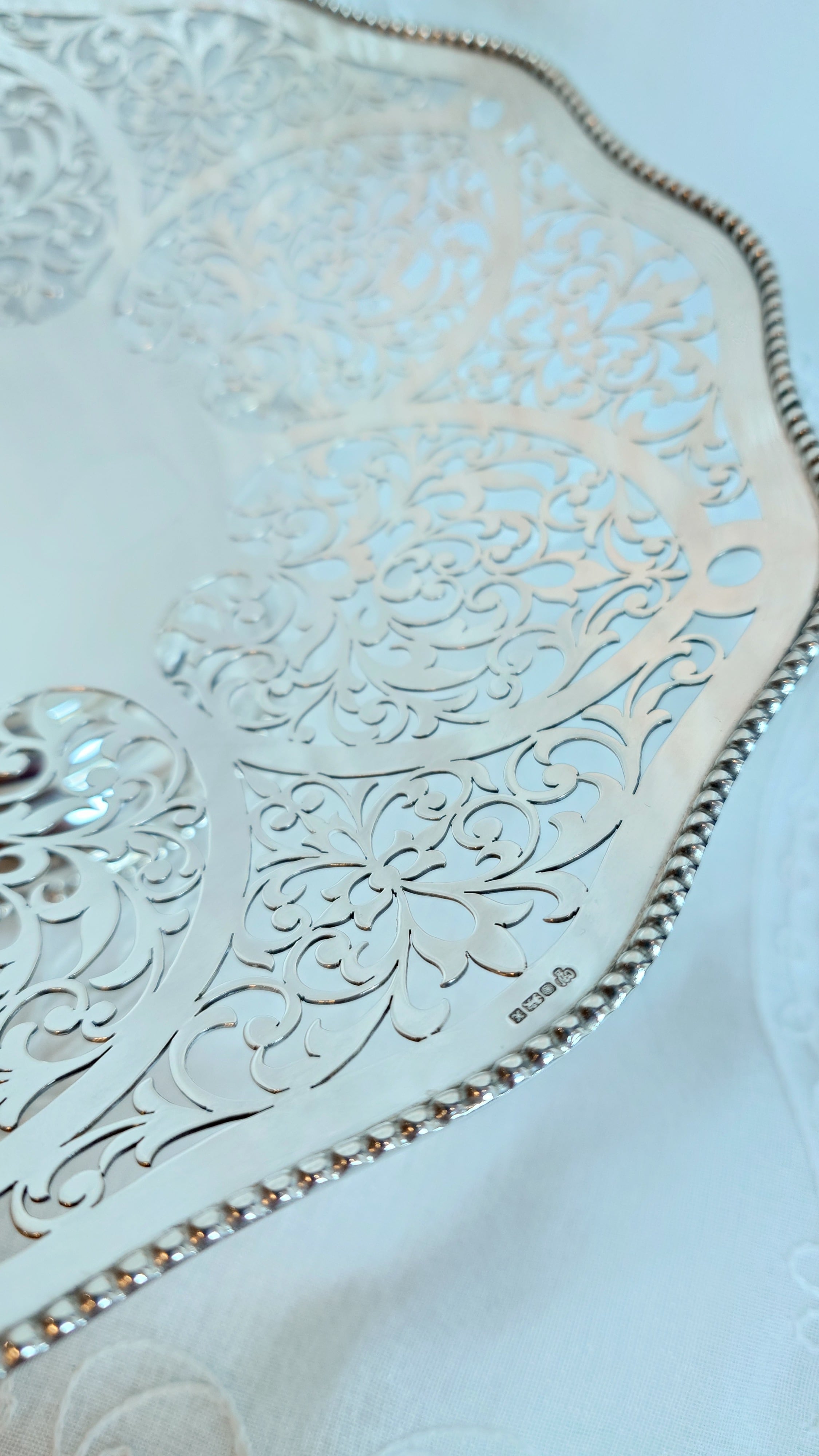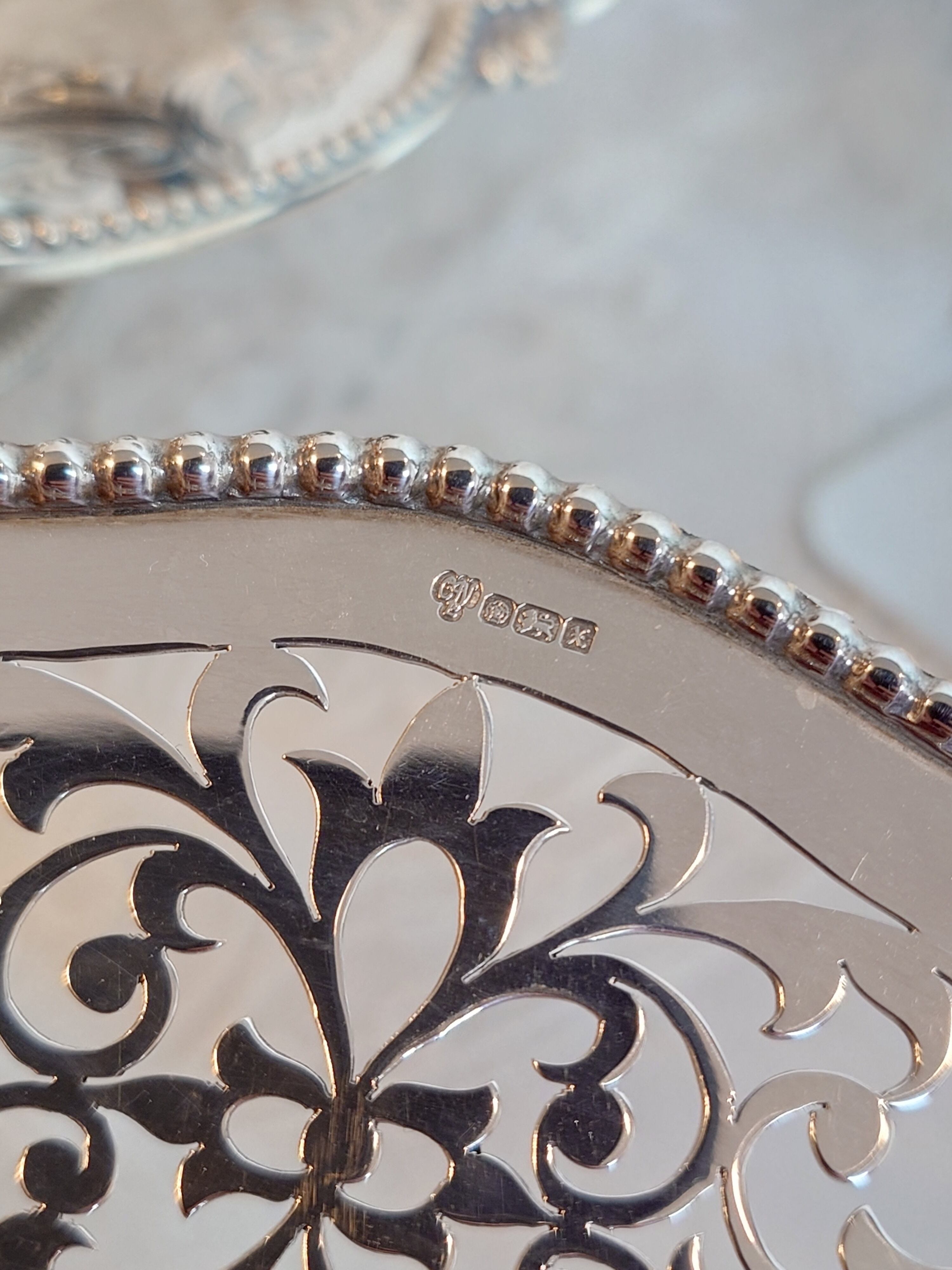 気品あふれる佇まいが目を惹く、イギリス純銀製のアンティーク・シルバーコンポートです