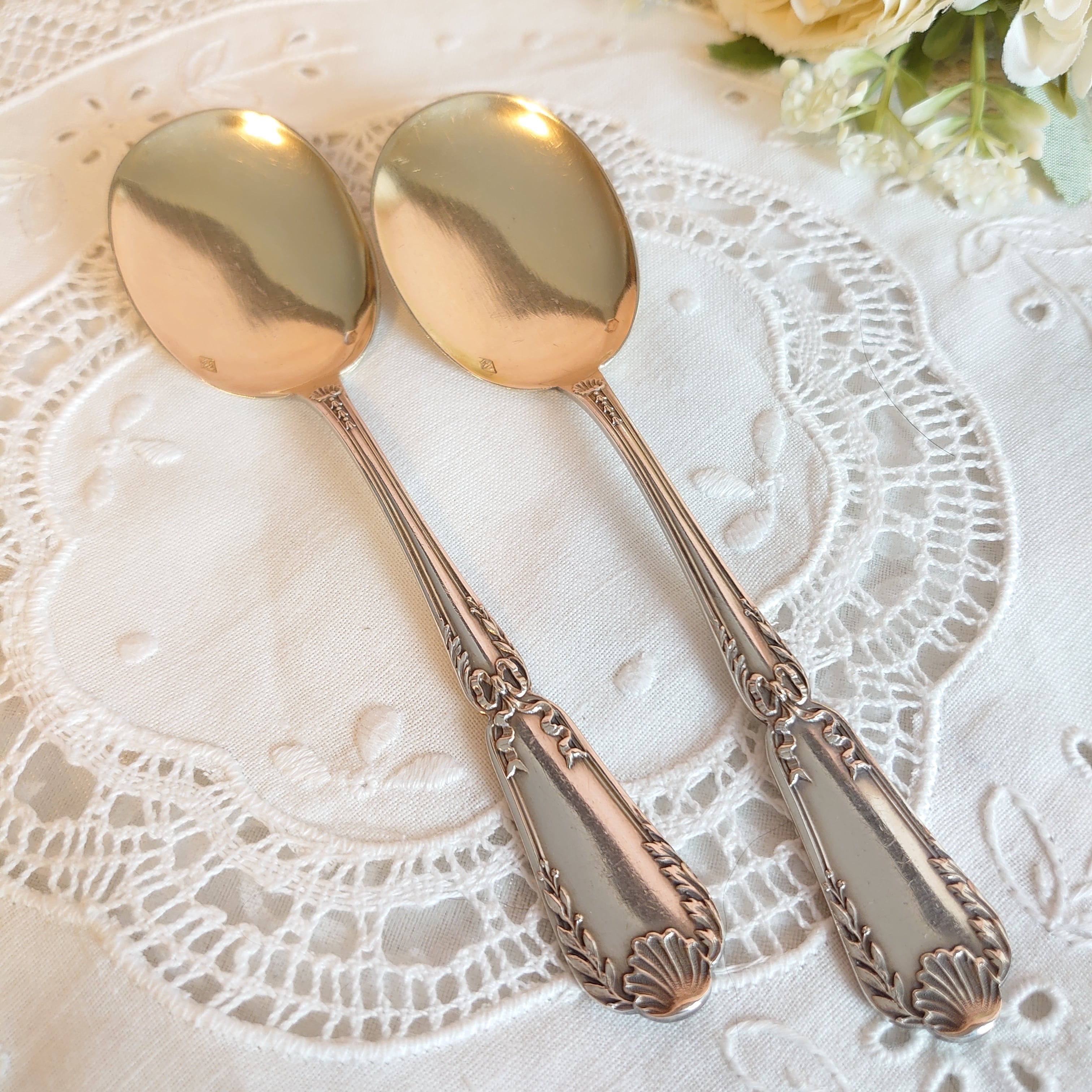 スプーンの匙部分はヴェルメイユ(純金鍍金)加工が施された高級な仕上がりです。