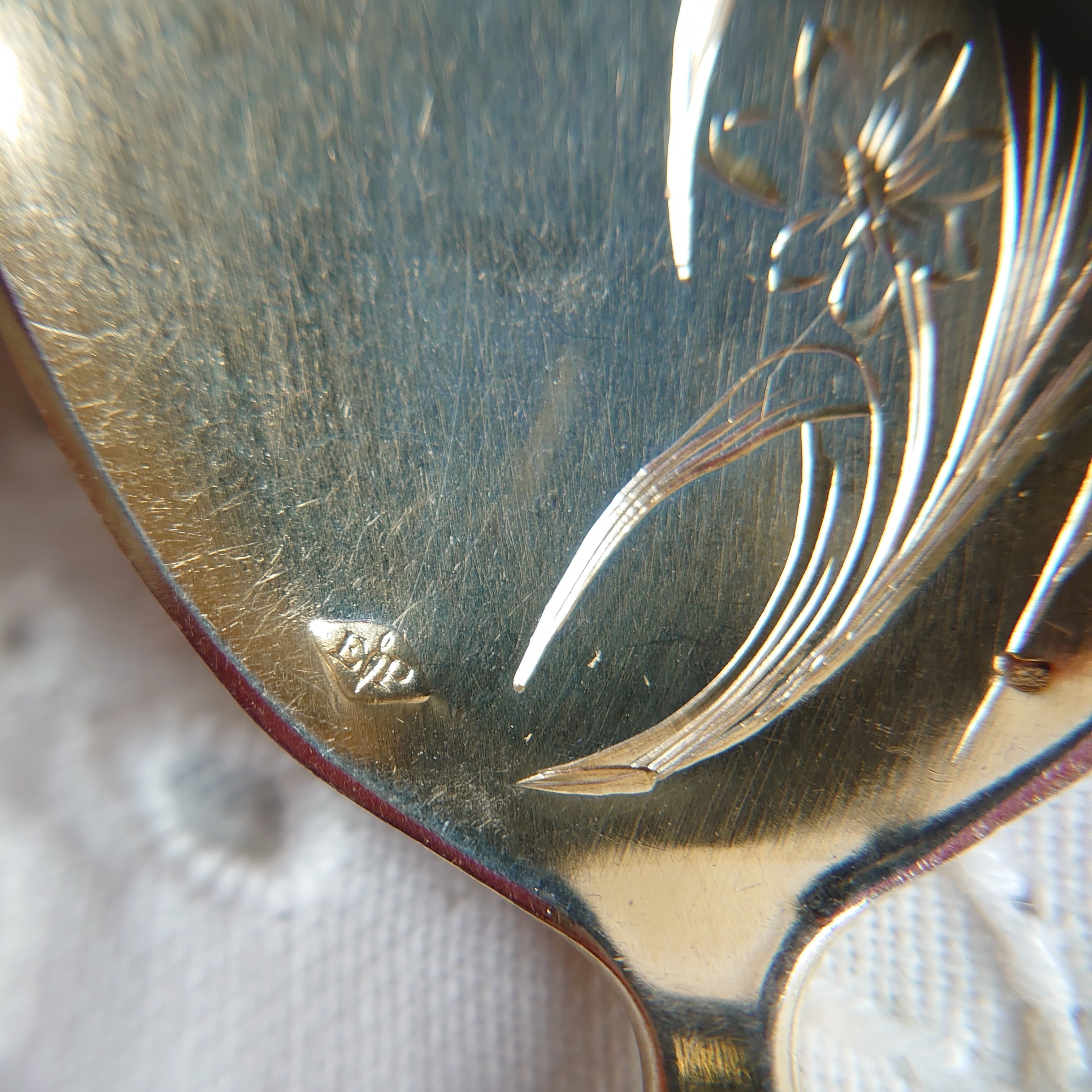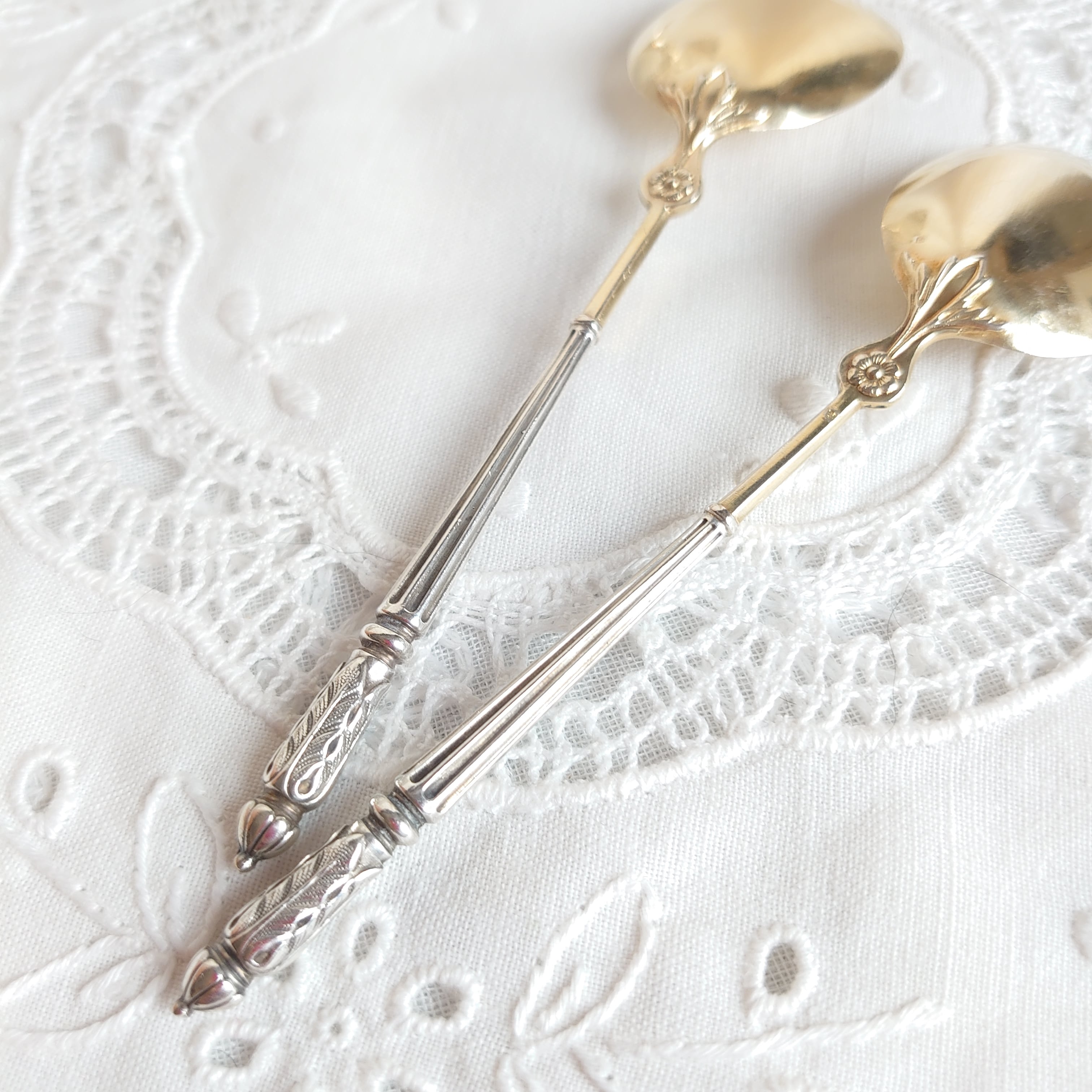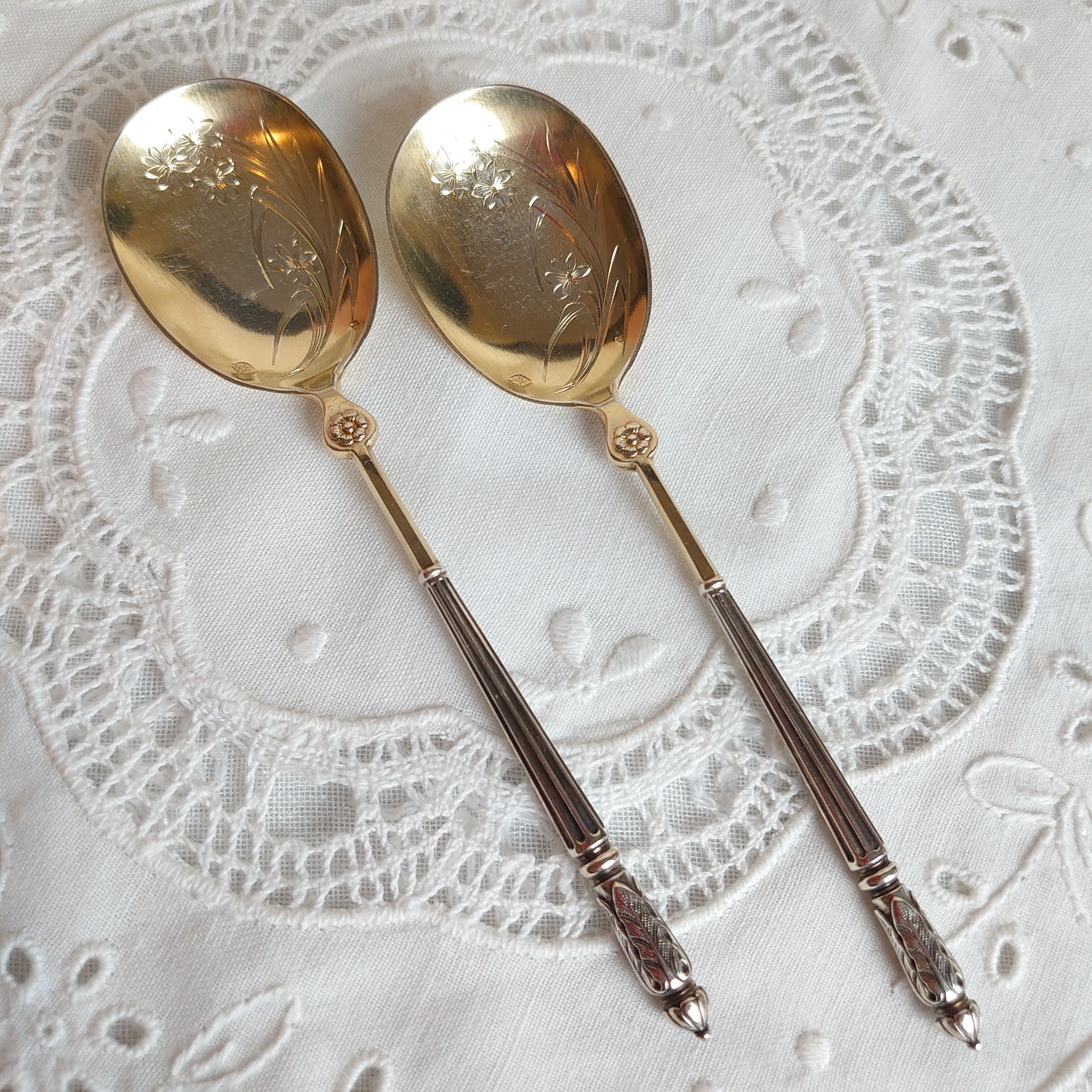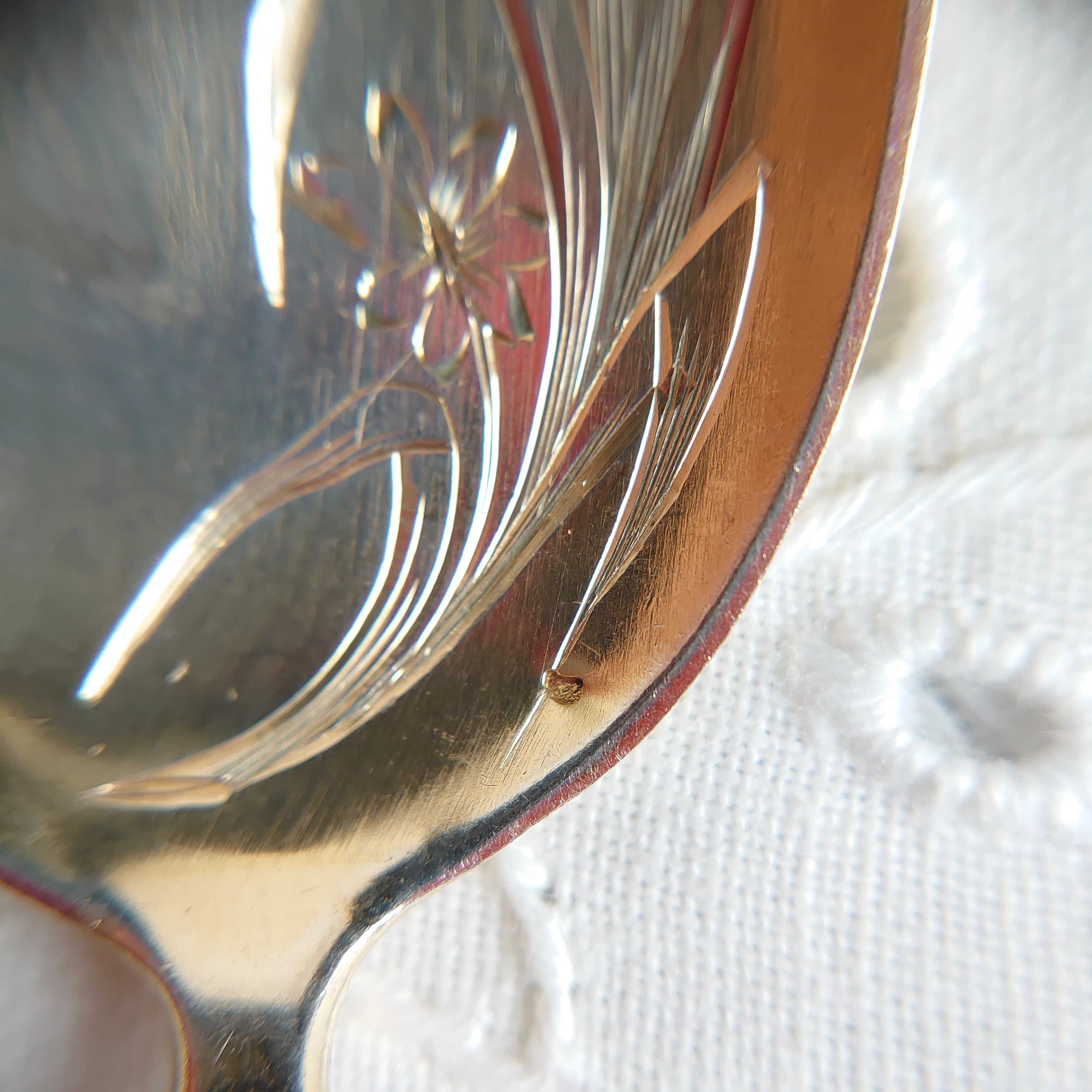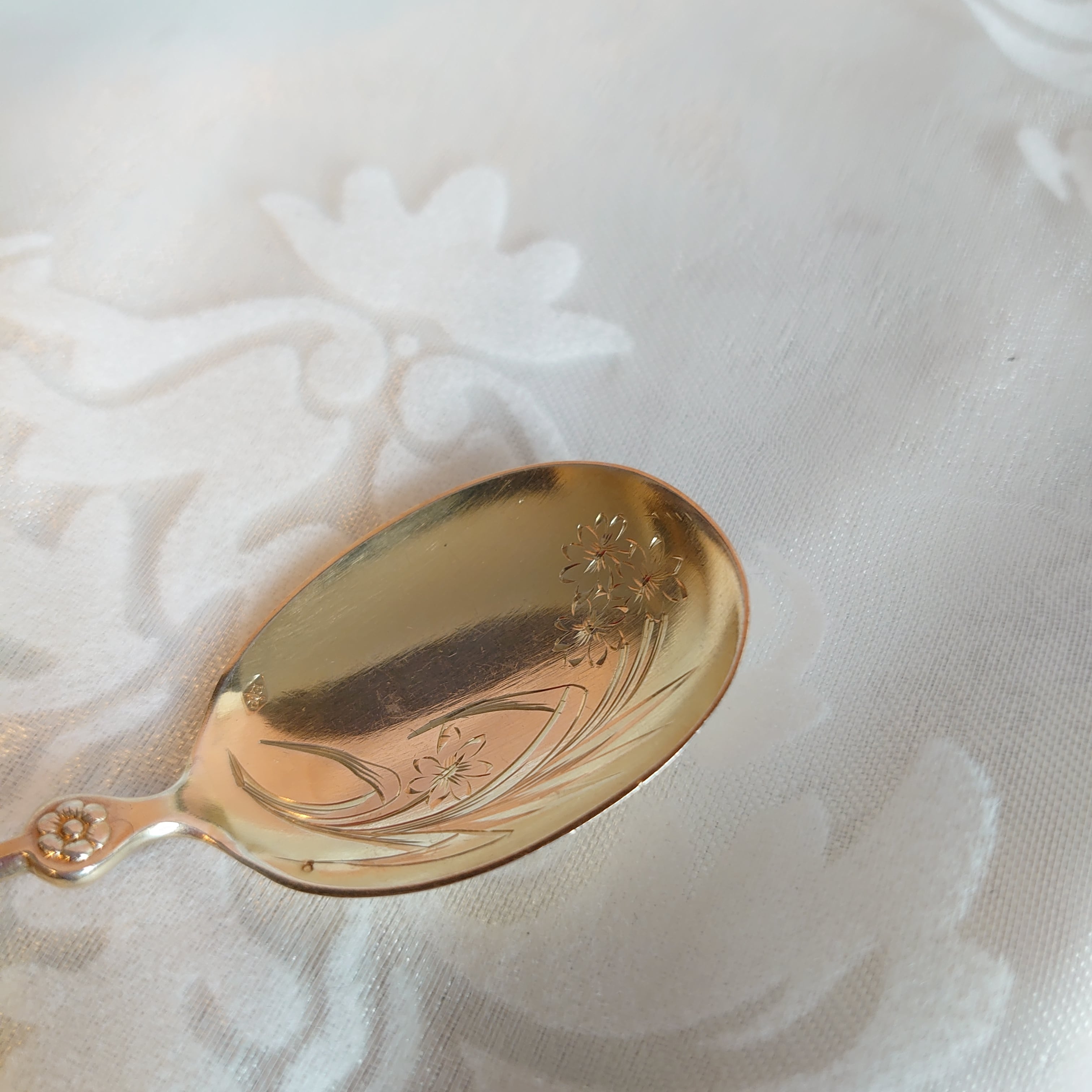 スプーンの匙部分はヴェルメイユ(純金鍍金)加工が施されており、高級な仕上がりです。