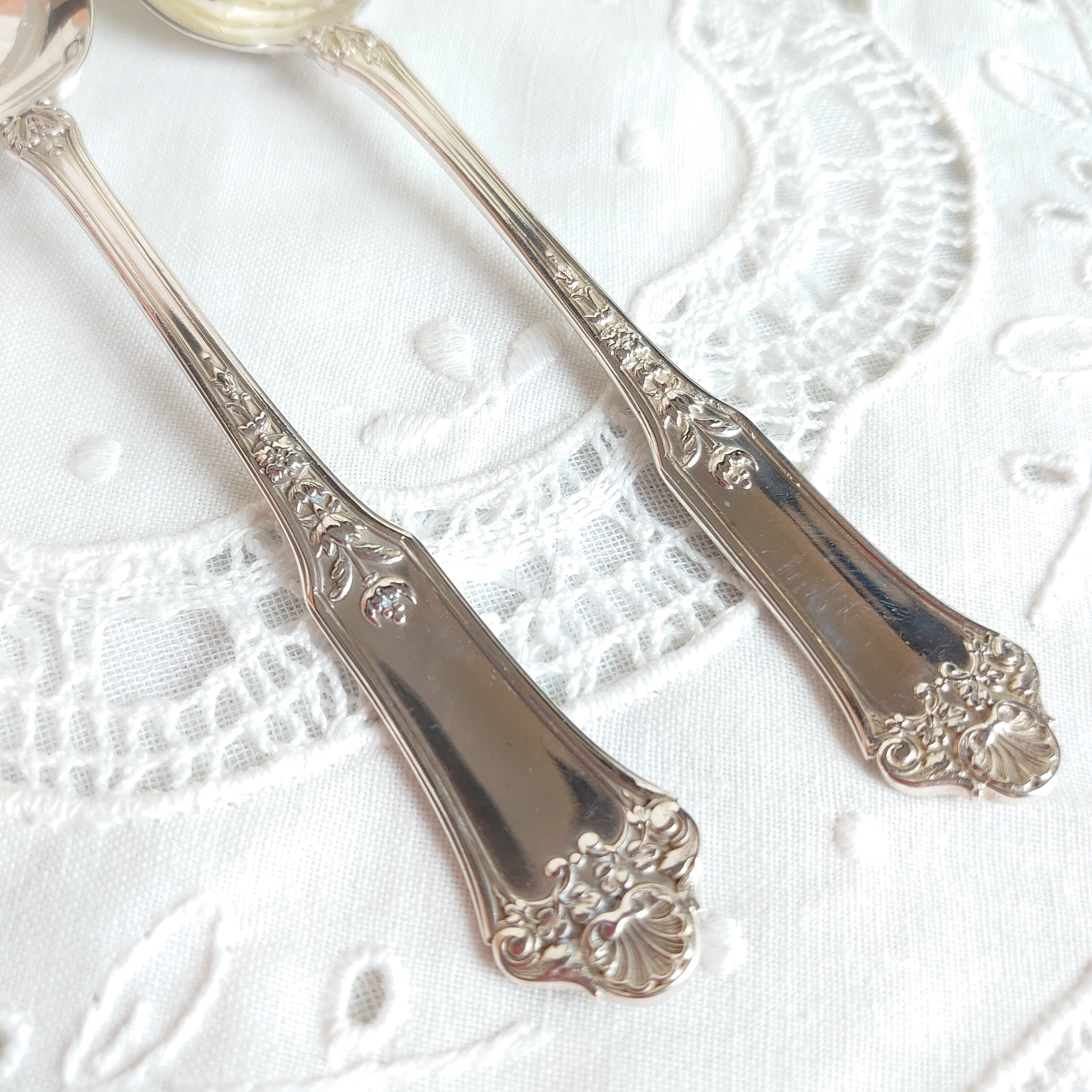 シェルやお花のロカイユのモチーフがとても美しいティースプーンです