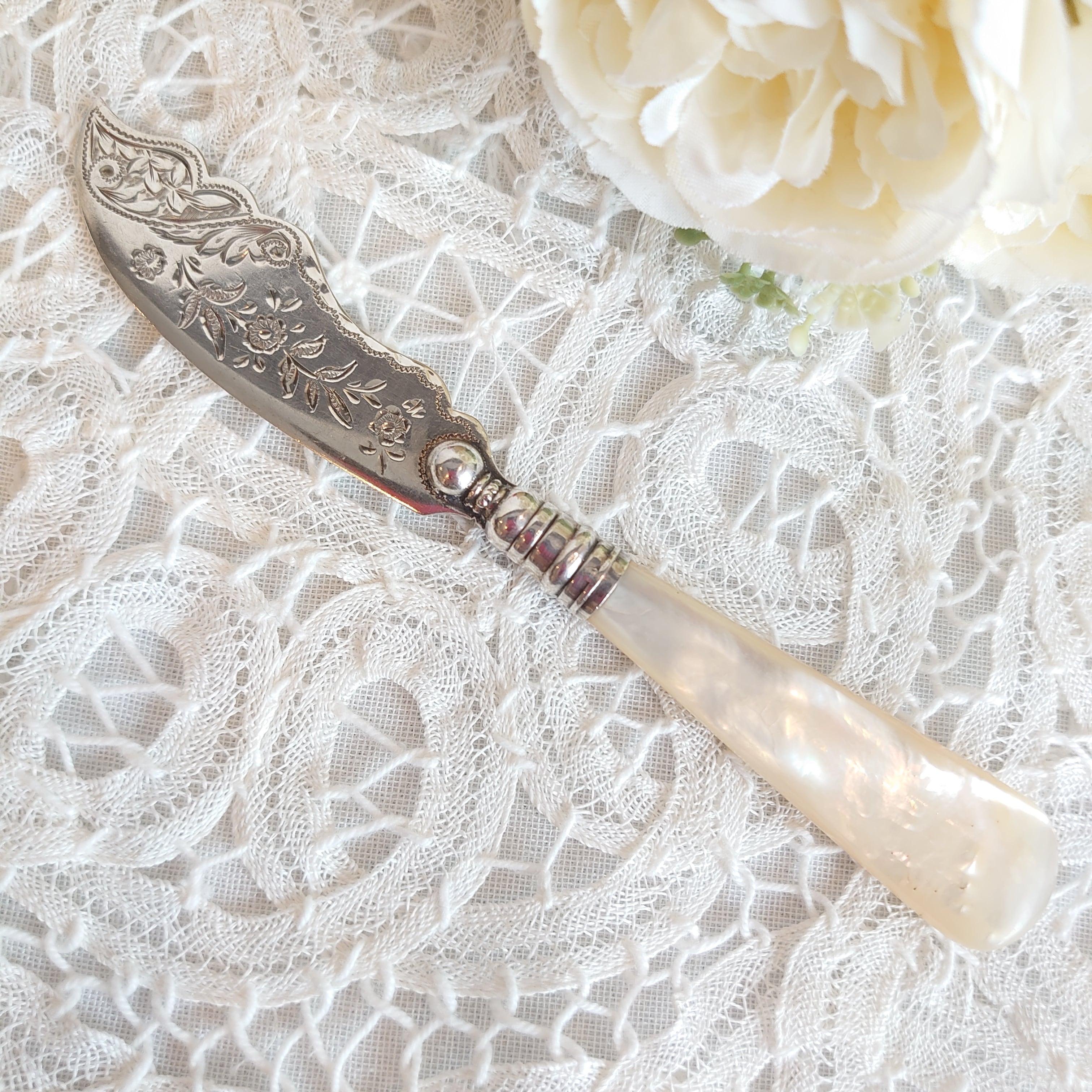 マザーオブパールの持ち手がとても素敵なバターナイフです