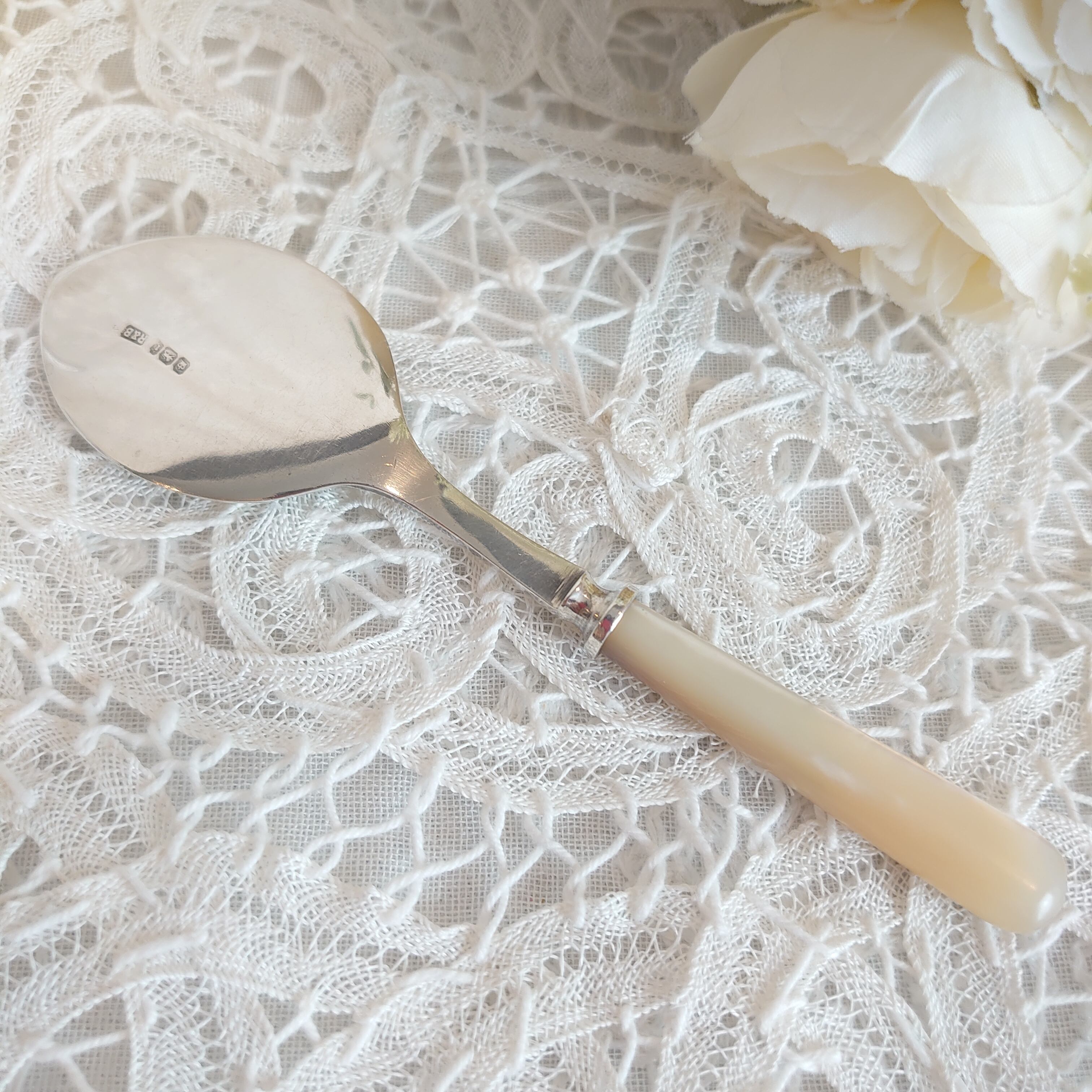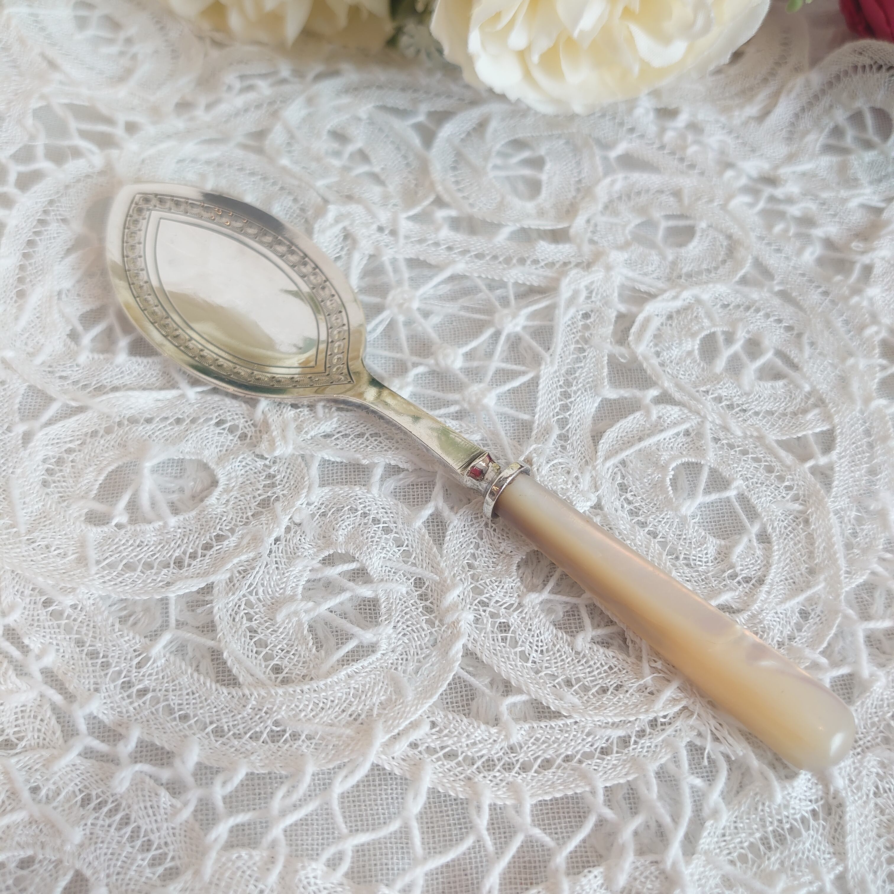 アンティークのマザーオブパールのジャムスプーンで素敵な朝食やティータイムをお楽しみ下さいませ