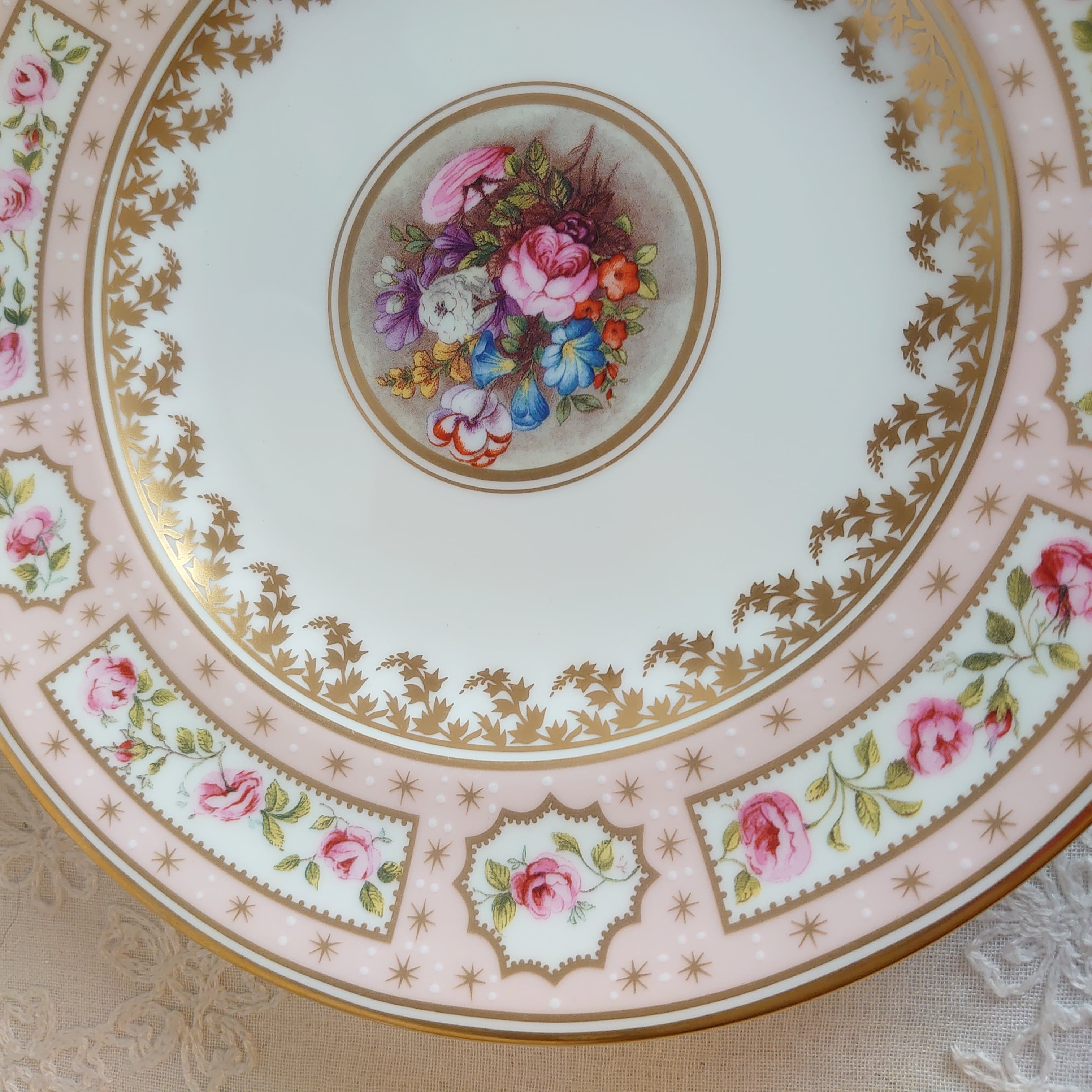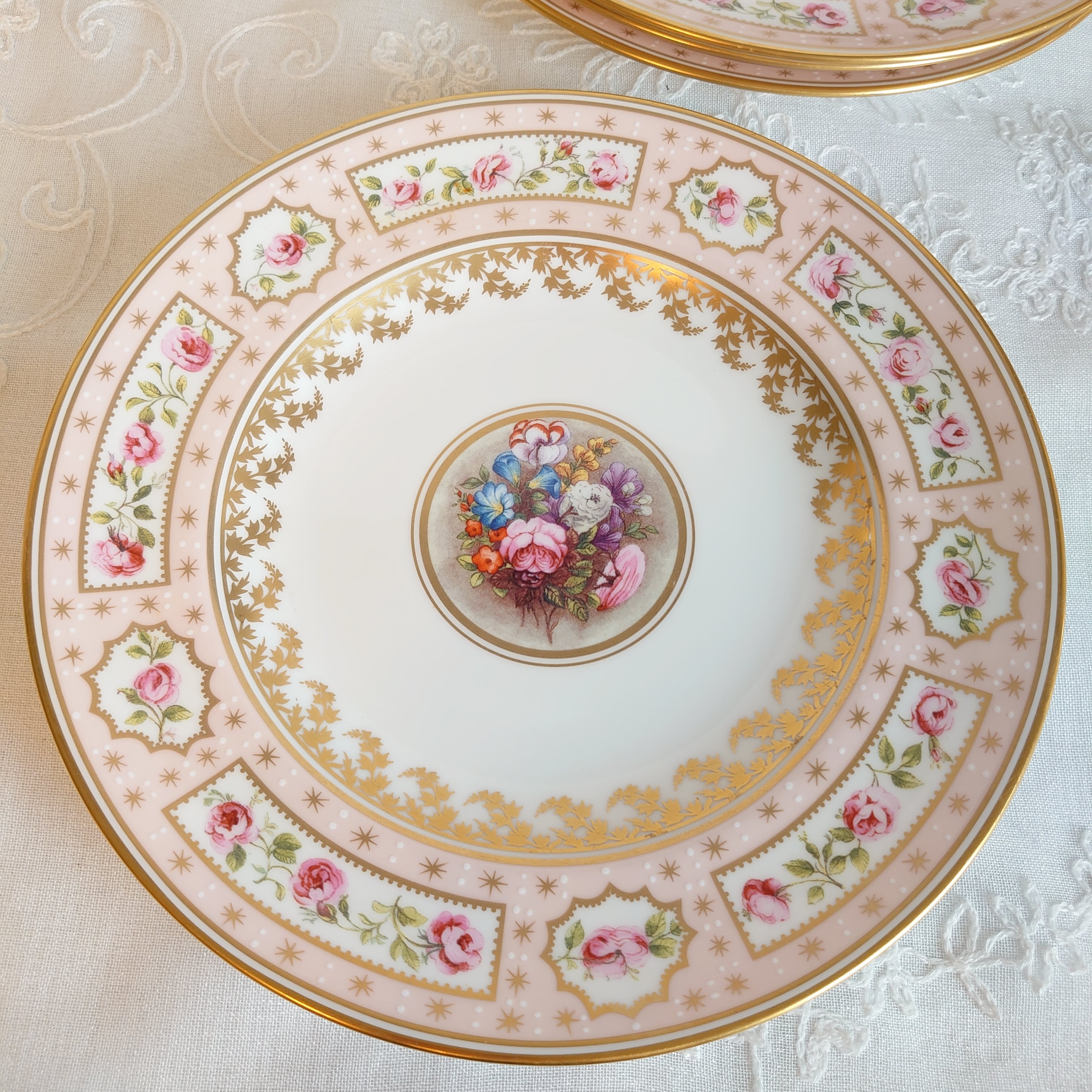 ロイヤルクラウンダービーの250周年記念で作られたビリングスレイローズのケーキプレート4枚組です。