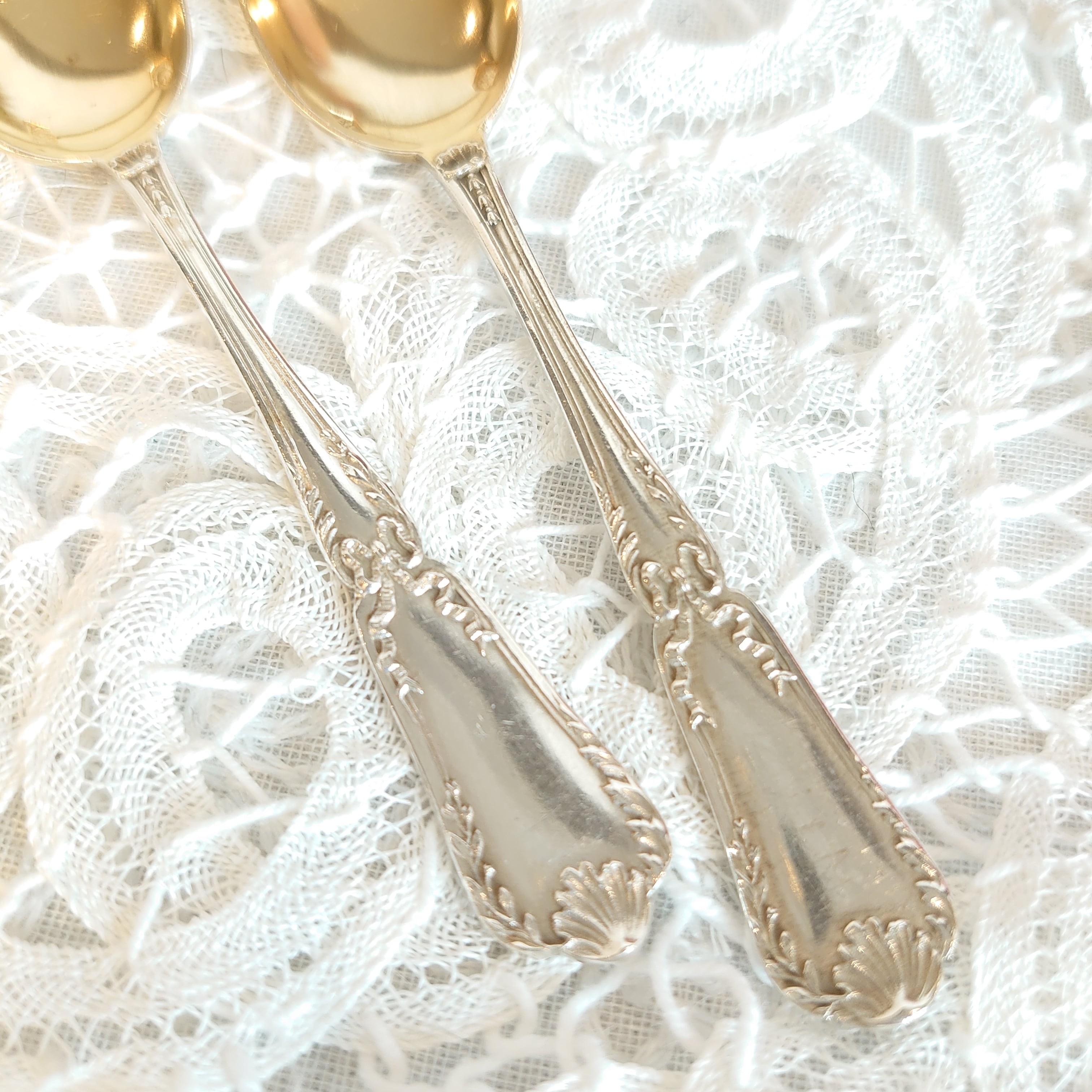 スプーンの匙部分はヴェルメイユ(純金鍍金)加工が施された高級な仕上がりです。
