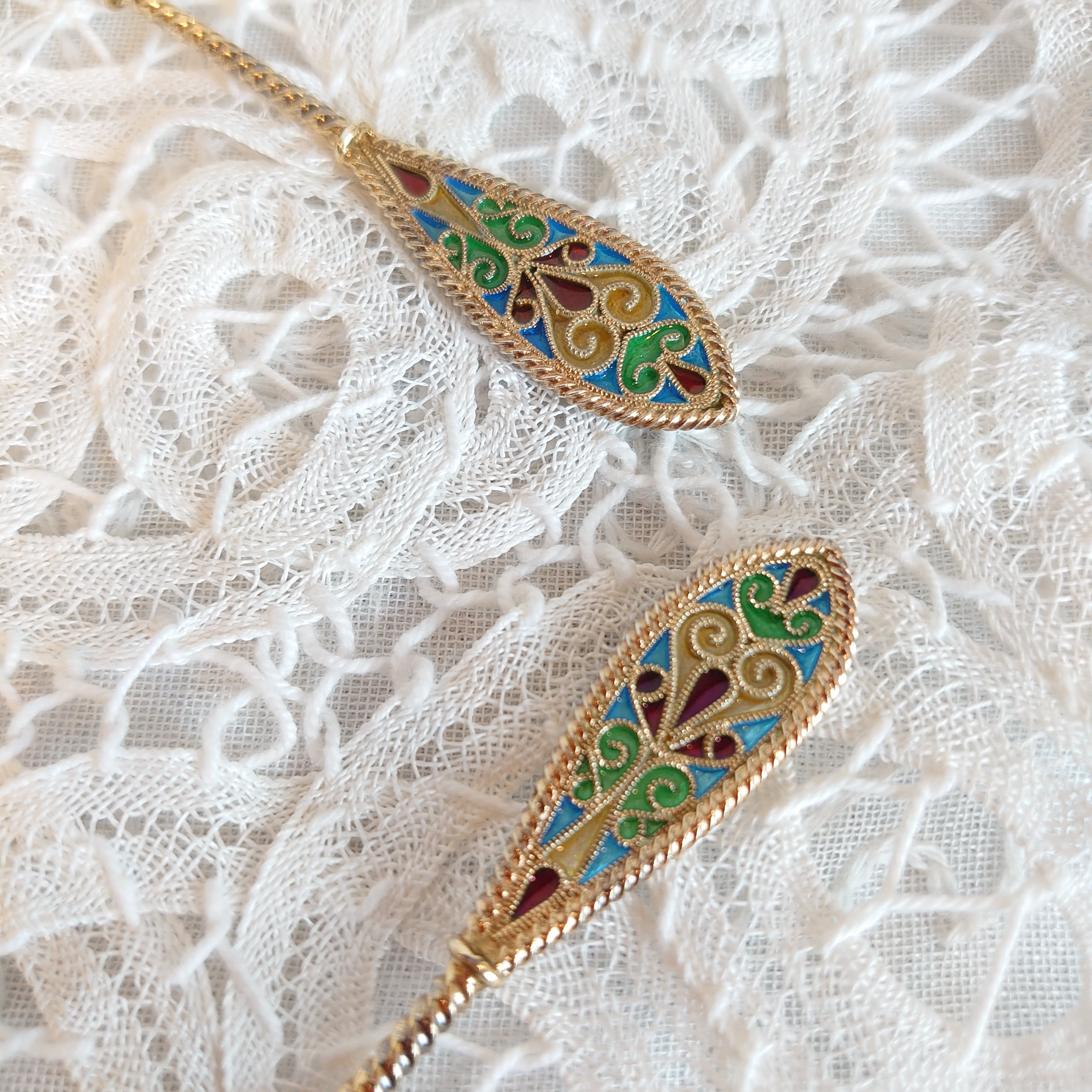 金属の下地がなく、金属枠のみによってエナメルを支える特別なエナメル技法です。