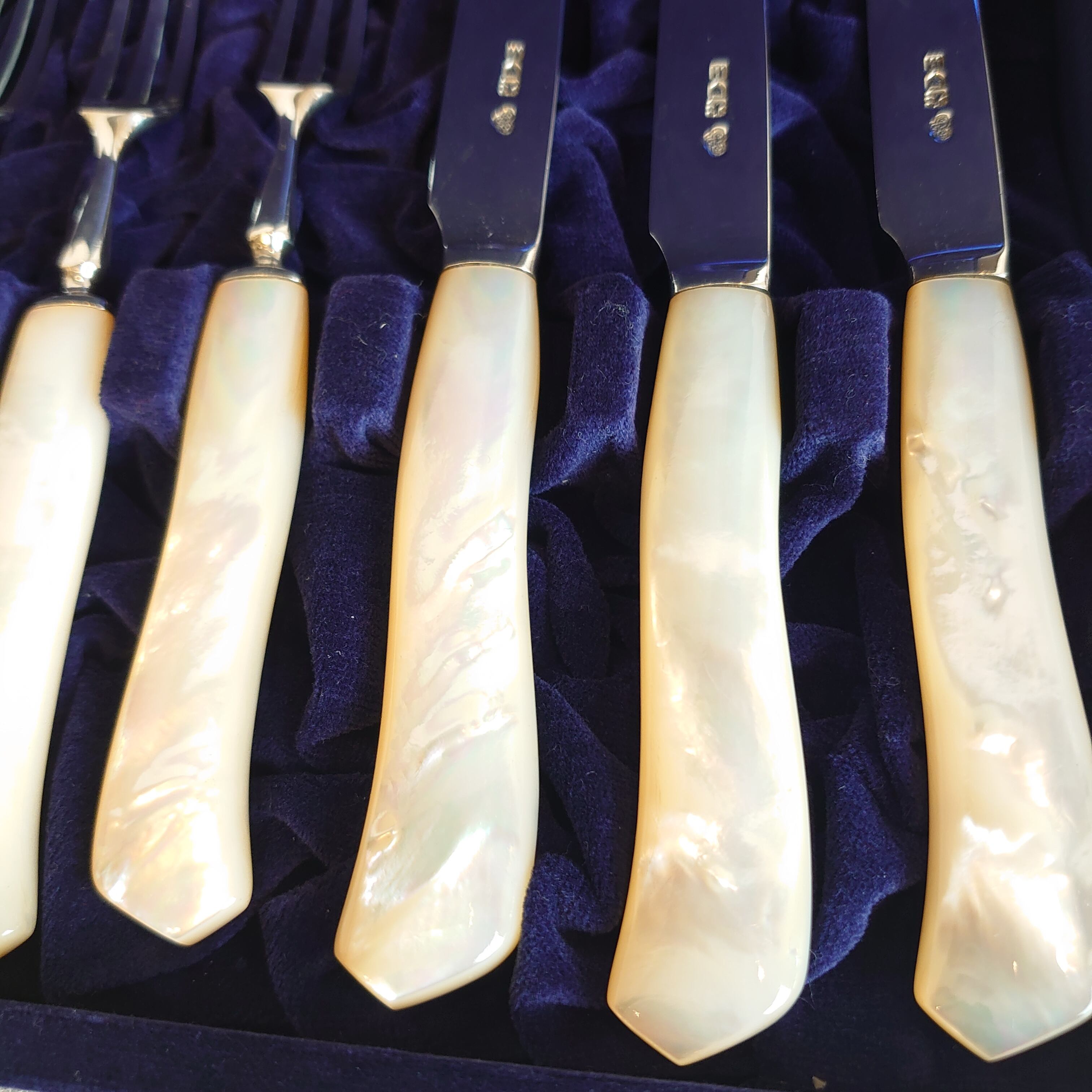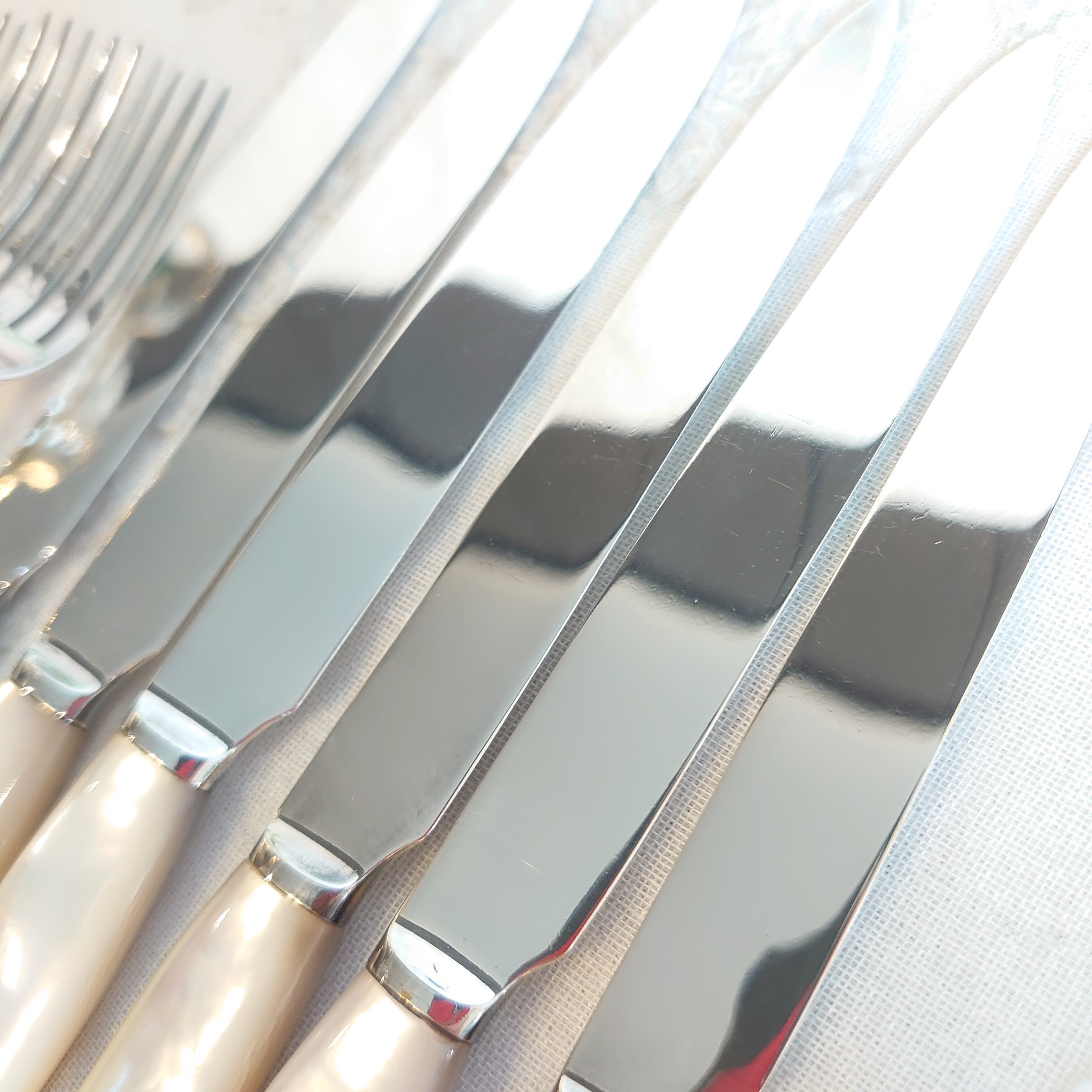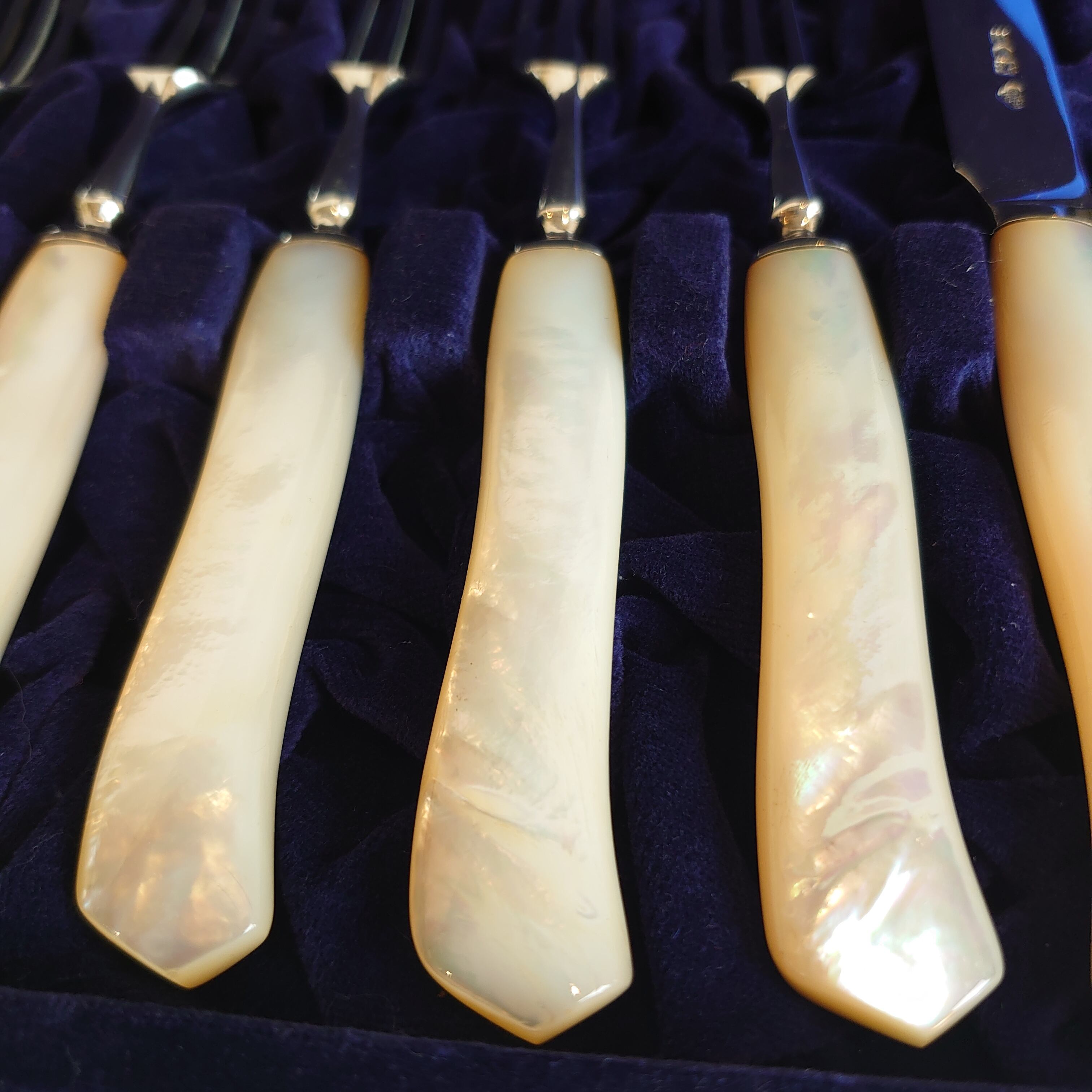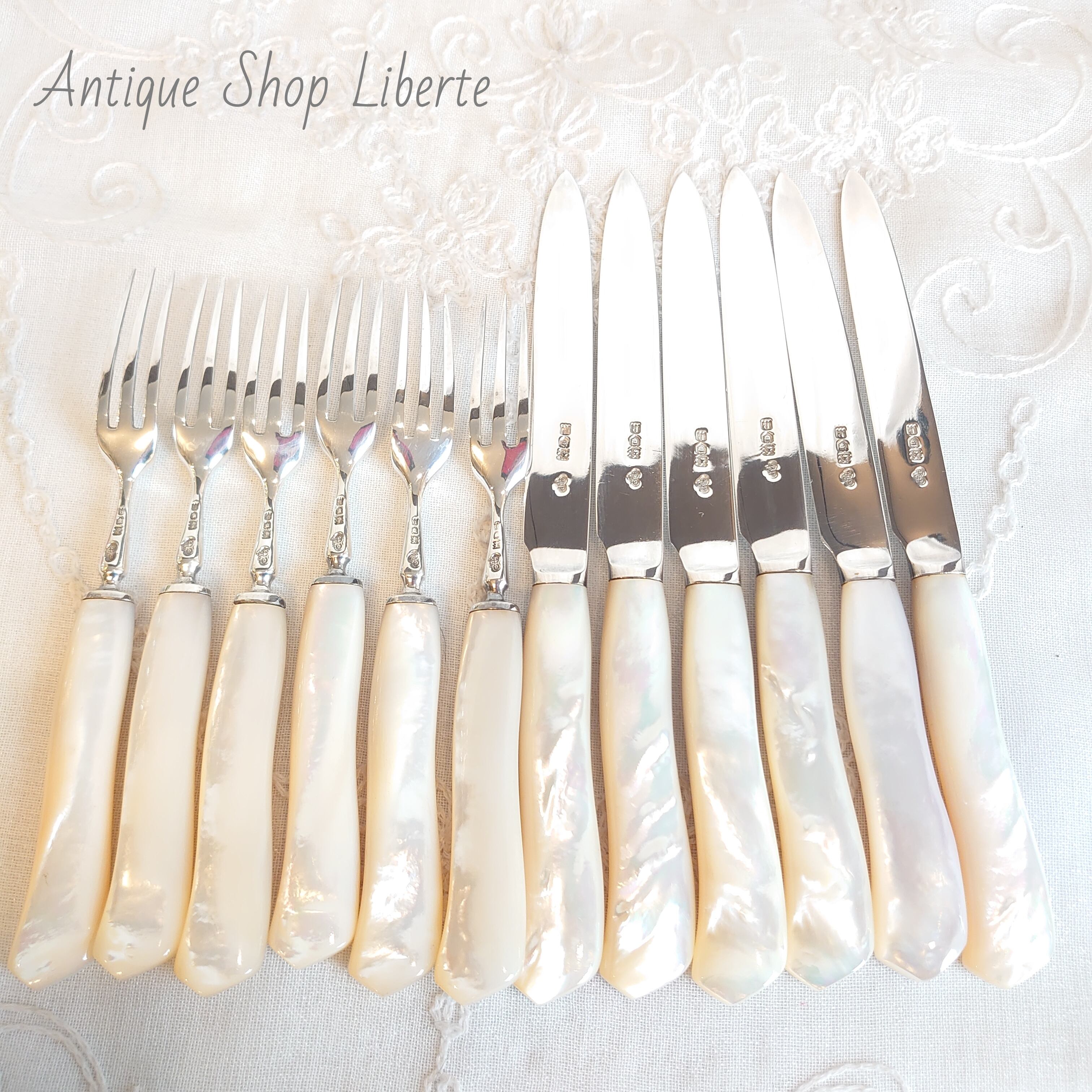マザーオブパールハンドルのデザートカトラリーセットです