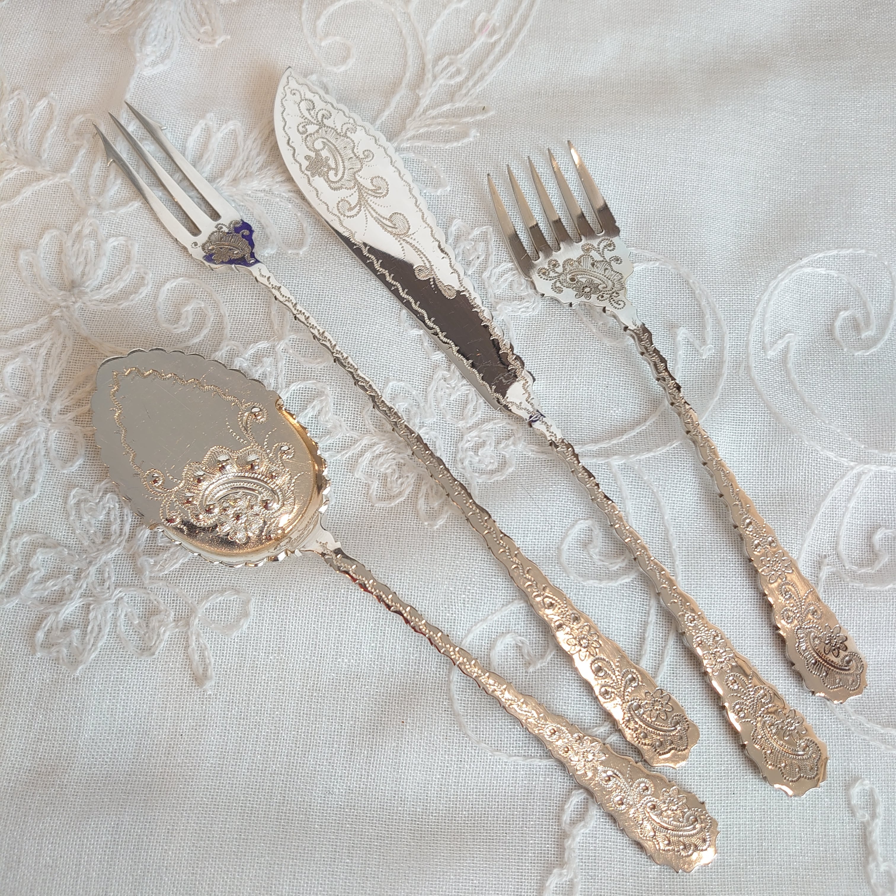 ジャムスプーン、バターナイフ、ピクルスフォーク、サービングフォークの4点セット