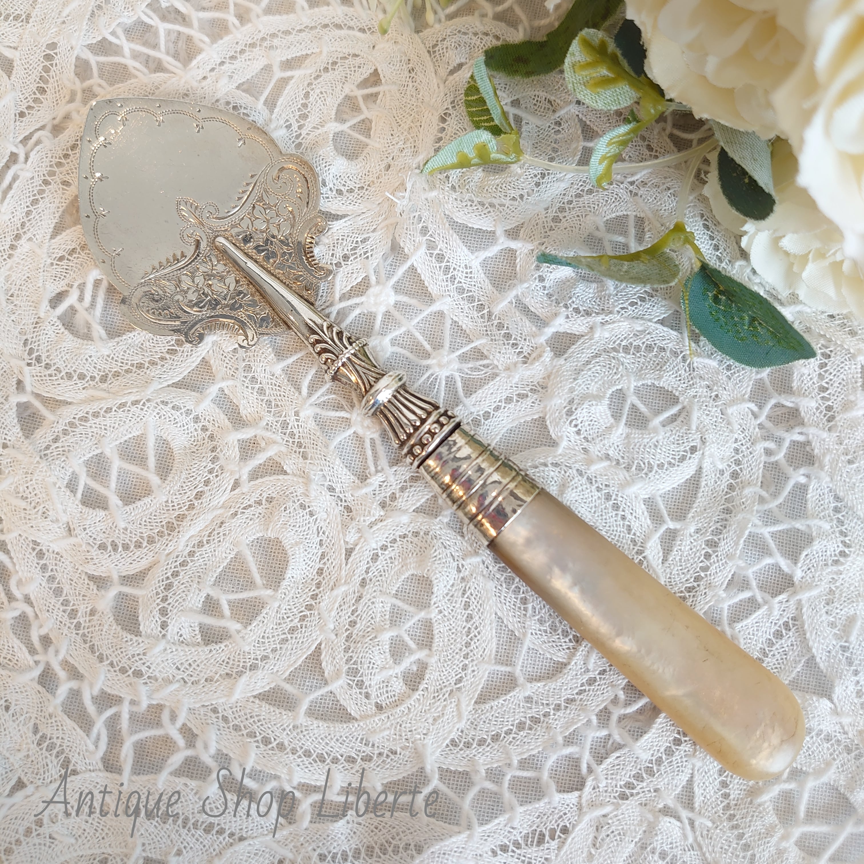 アンティークのマザーオブパールのジャムスプーンで素敵な朝食やティータイムをお楽しみ下さいませ