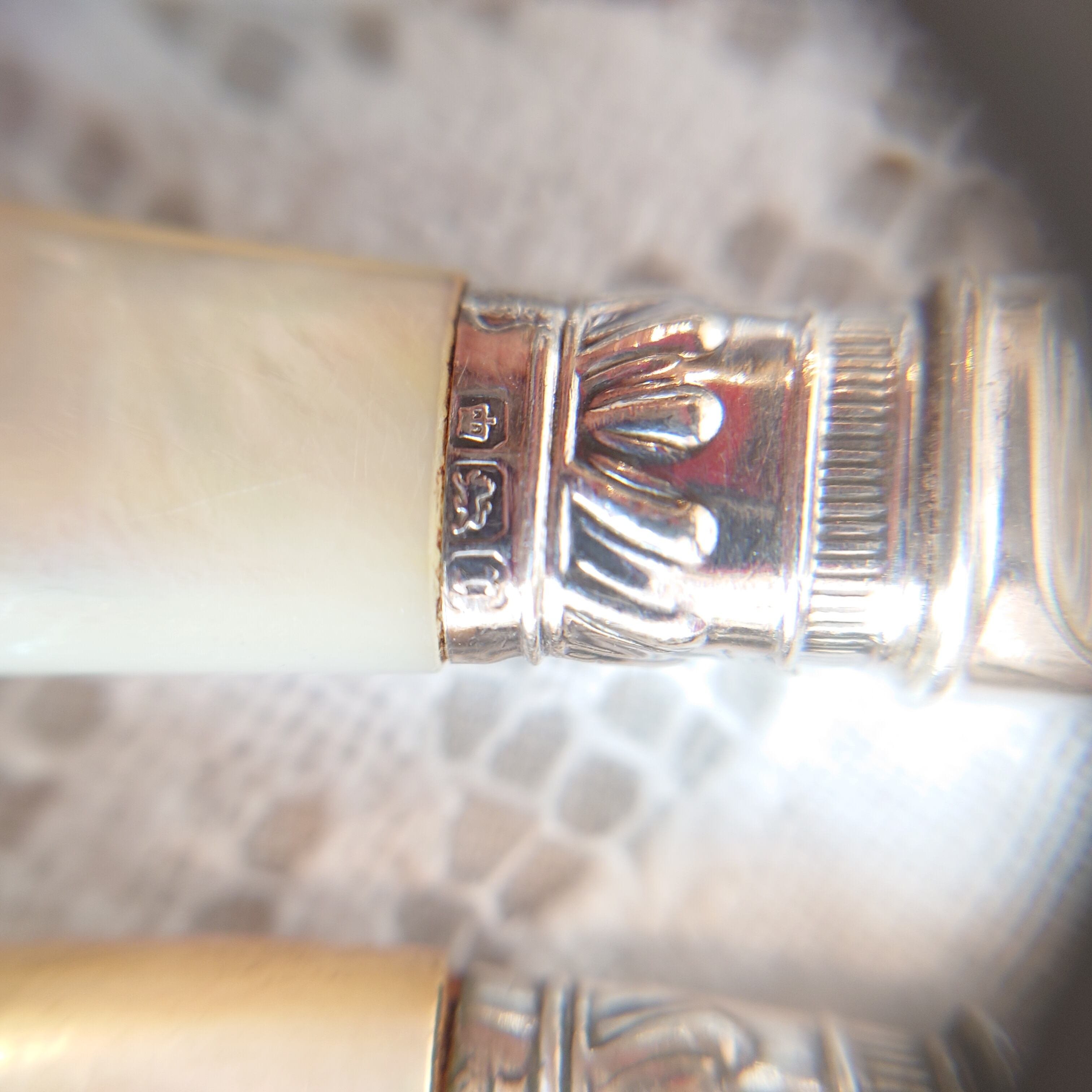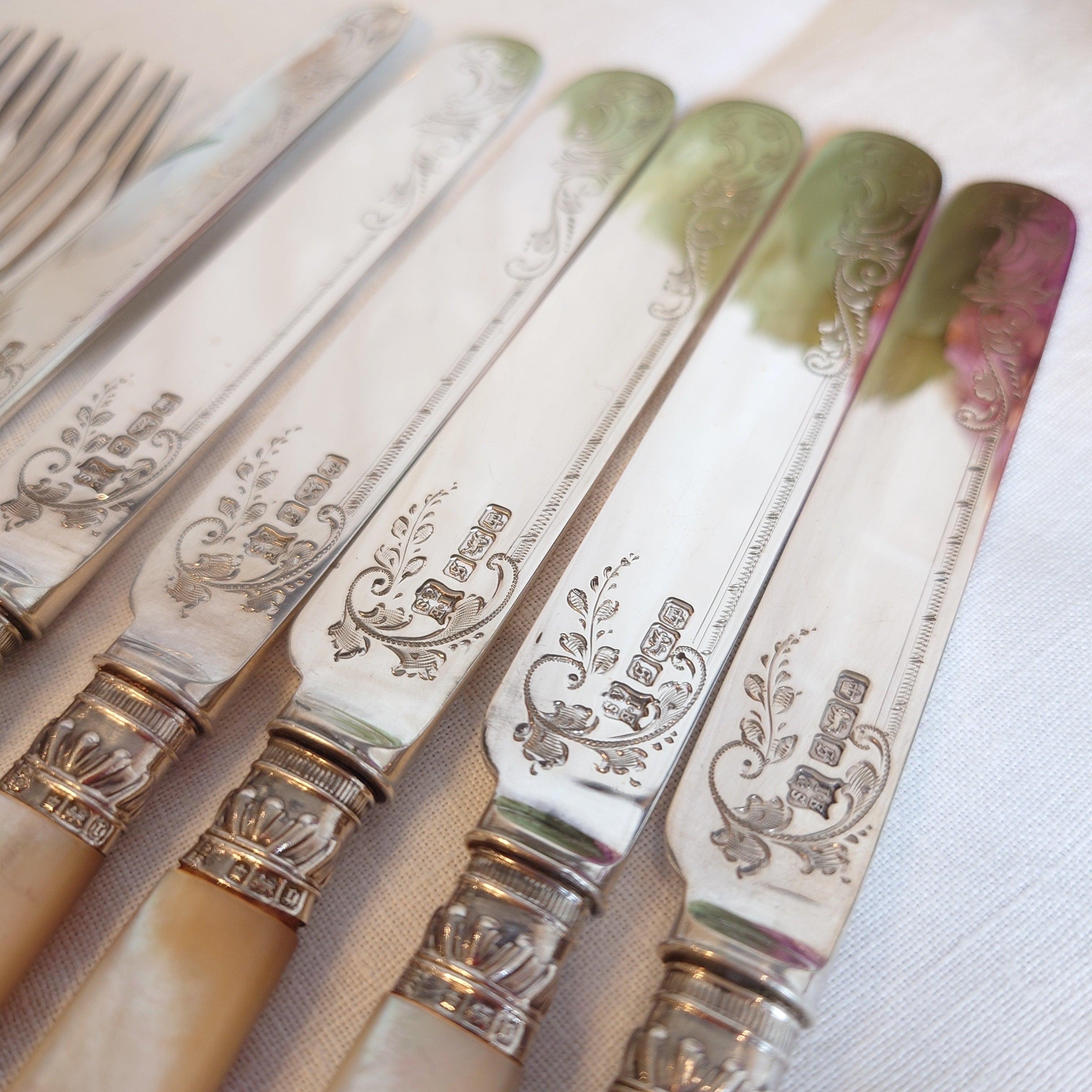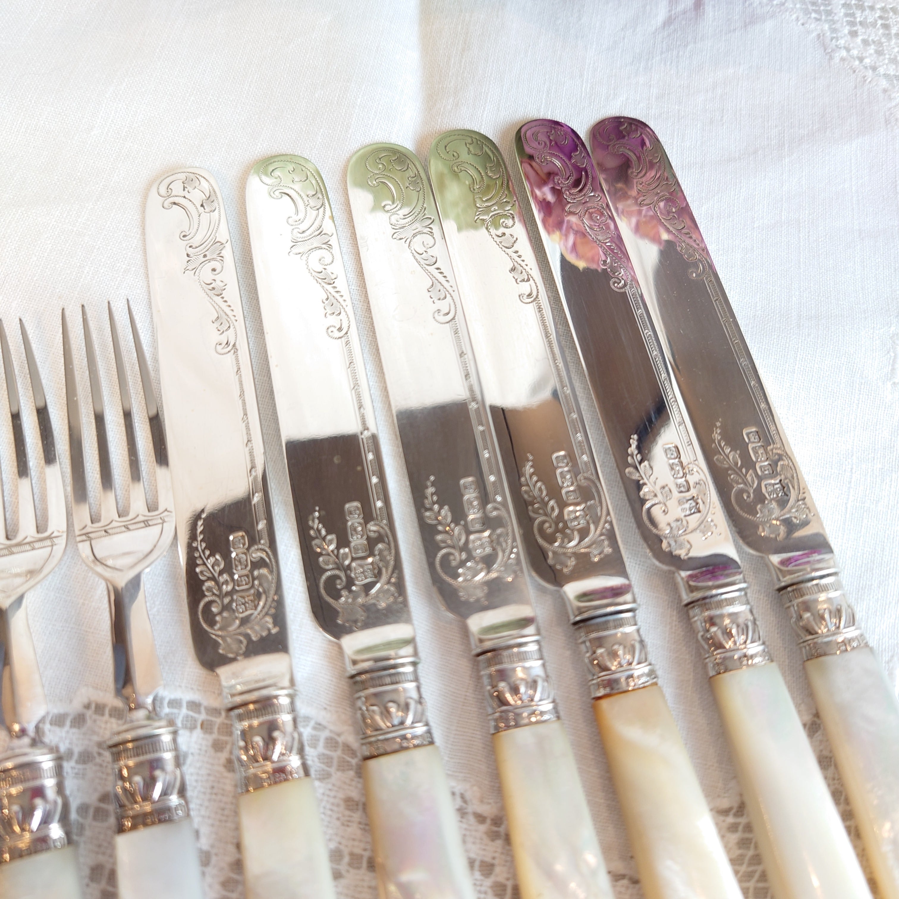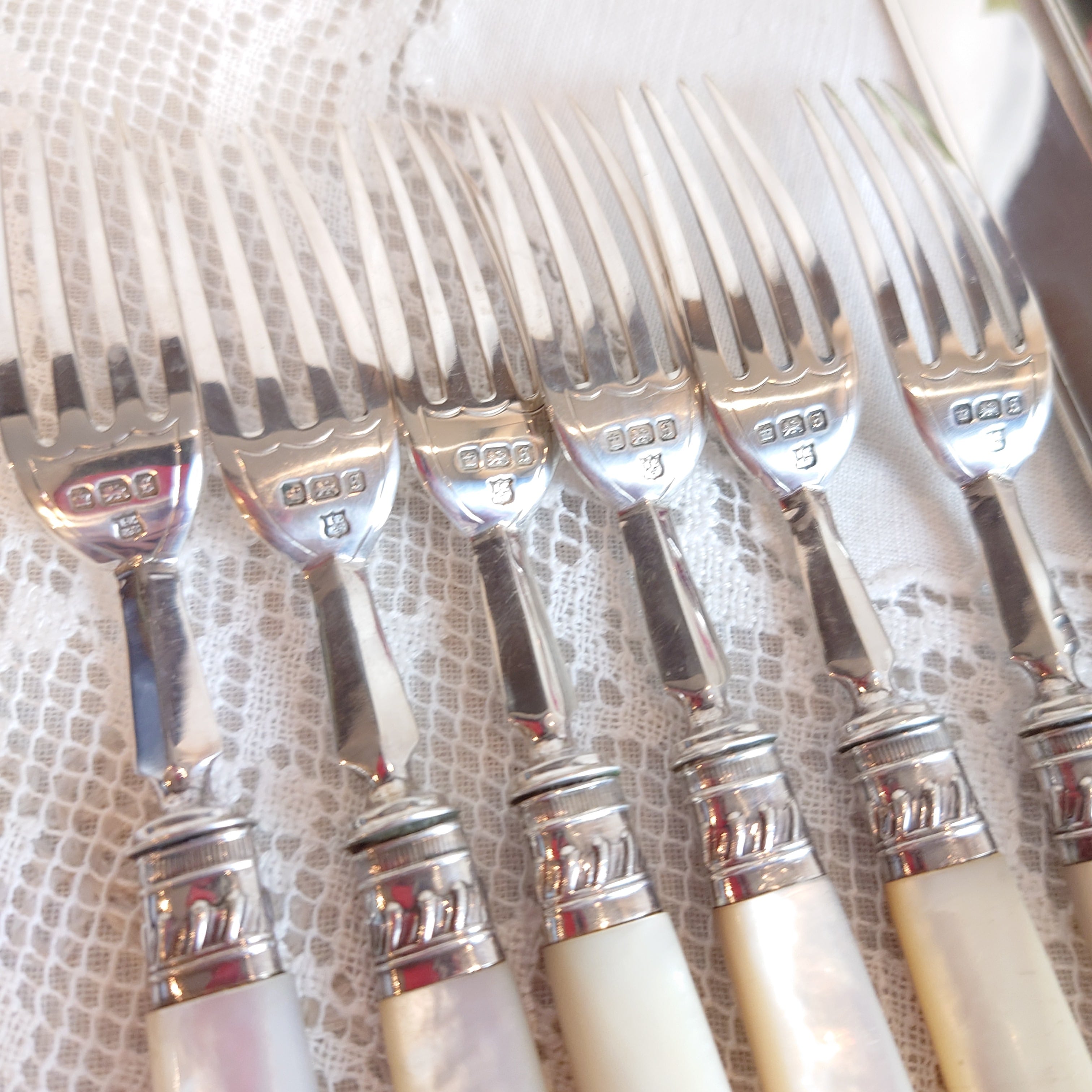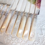 マザーオブパールのハンドルのデザートカトラリーセットです