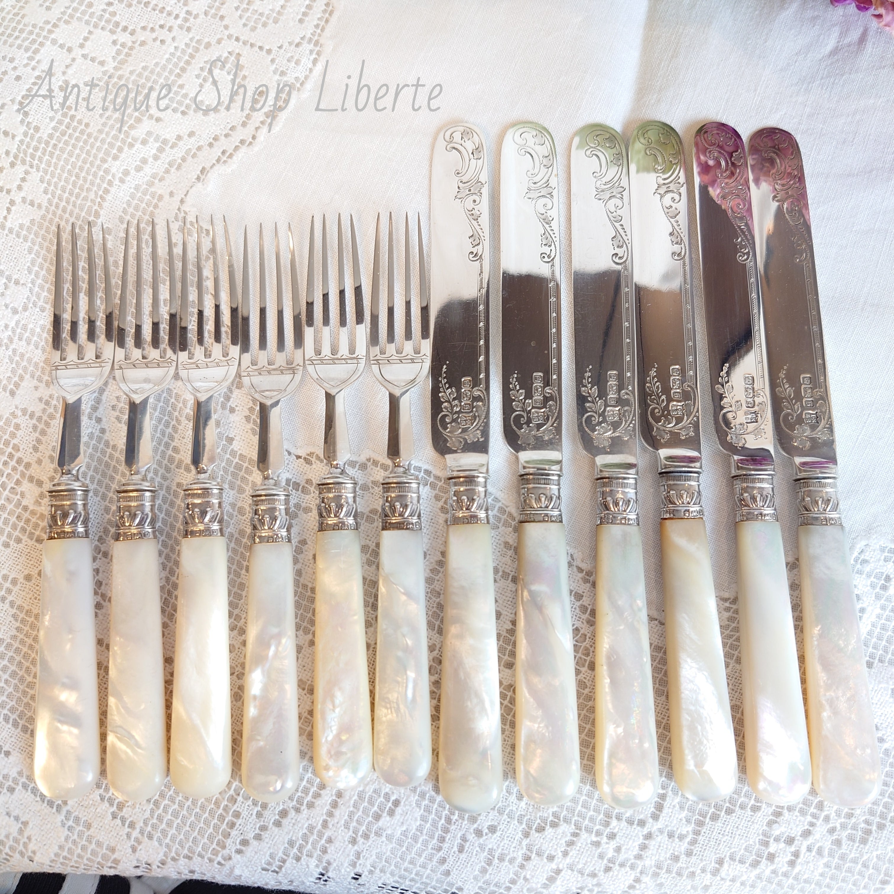 白蝶貝 マザーオブパール カトラリーセット 純銀 1910年