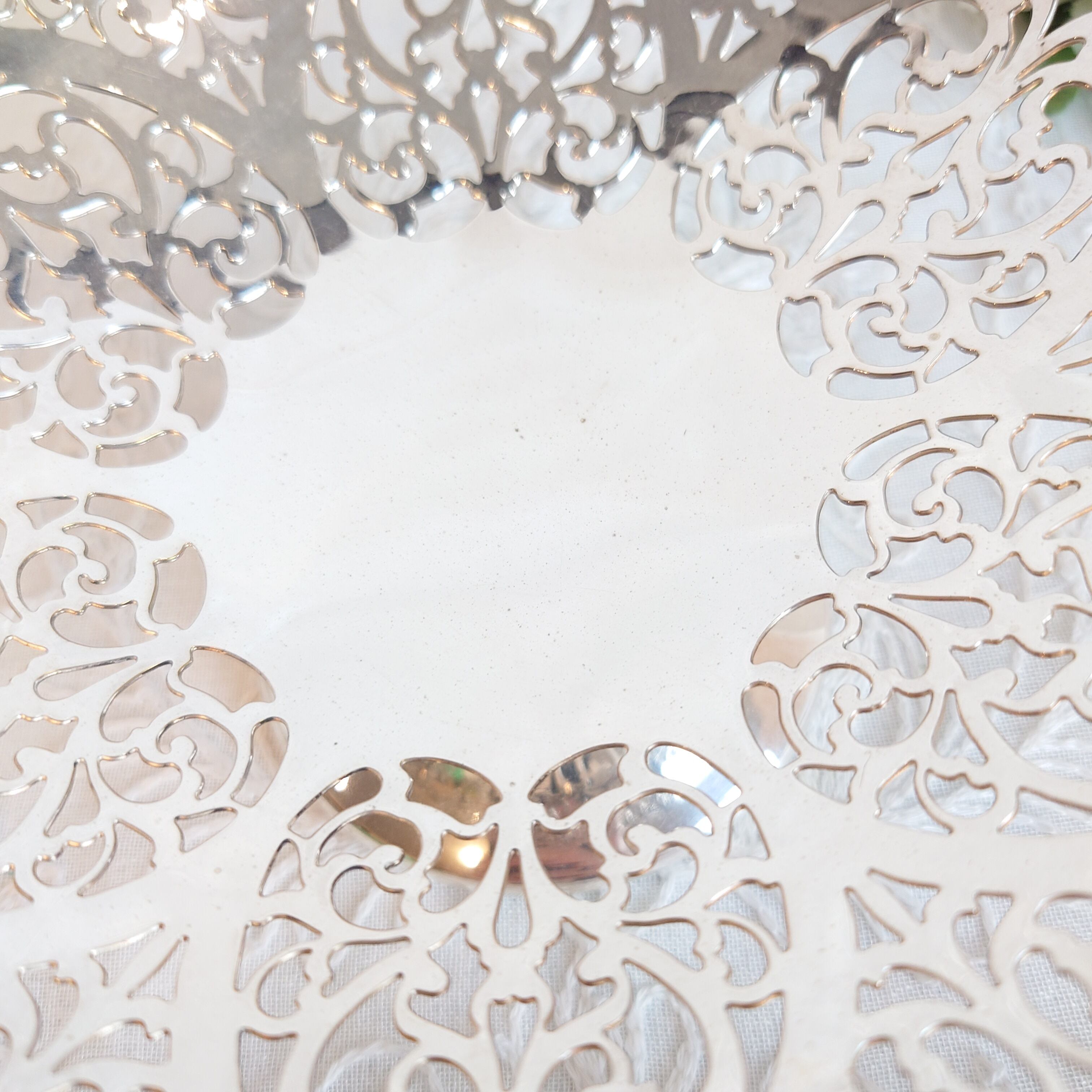 ピアッシングがふんだんに施されており、ハンドルにも透かしのモチーフが施された、ゴージャスな印象を与えてくれる美しいトレイです。