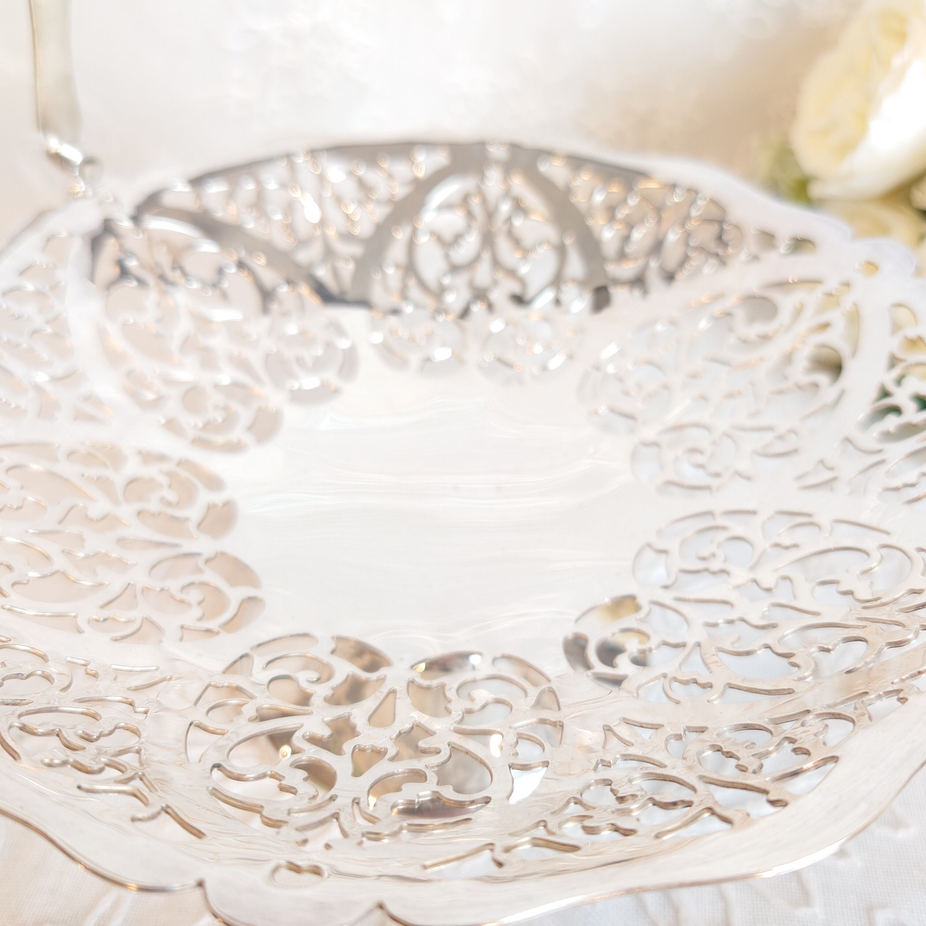 国王室御用達のMappin&Webbのバスケット型のシルバートレイです。