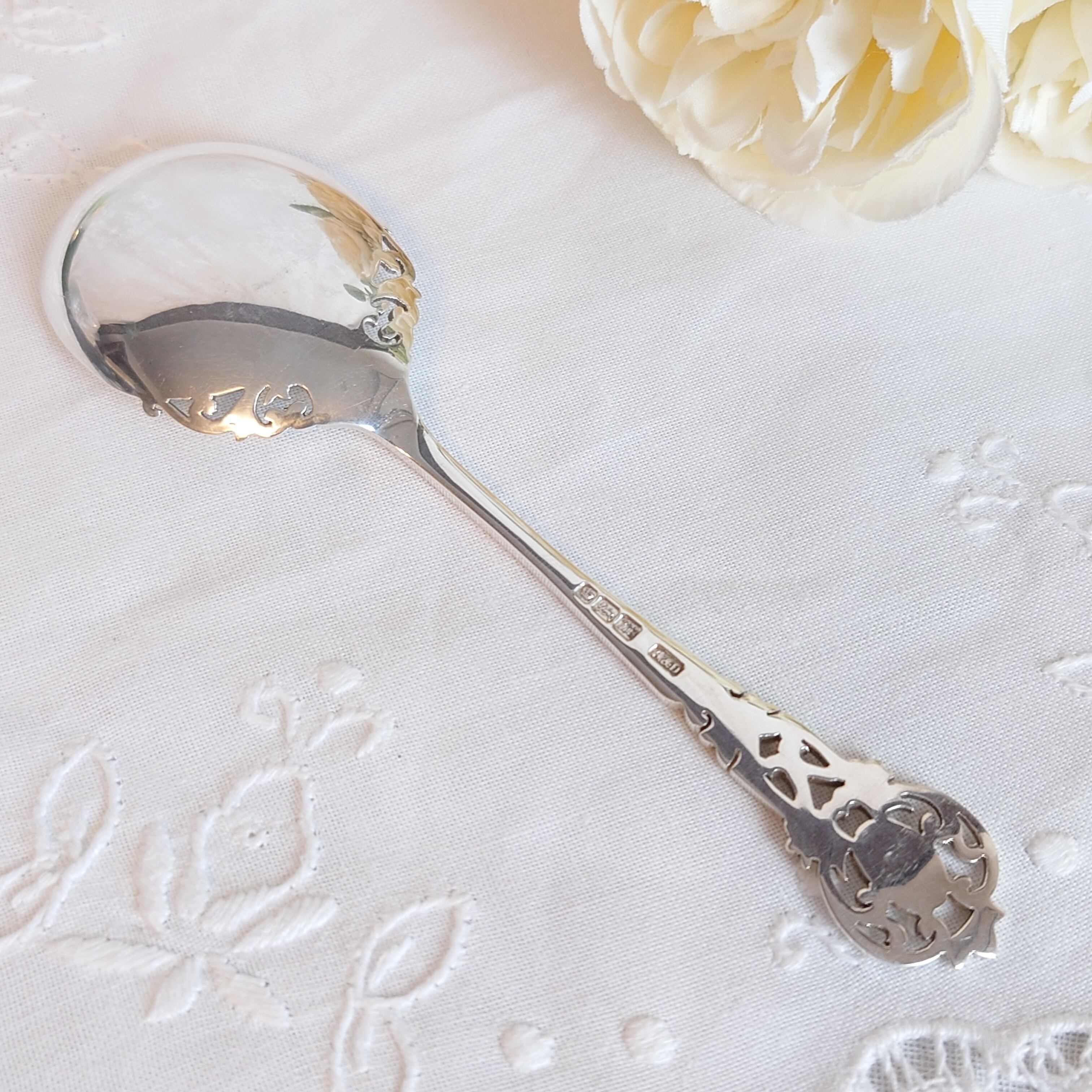 ボウルと持ち手に施されたピアッシングのデザインが素適なジャムスプーンです
