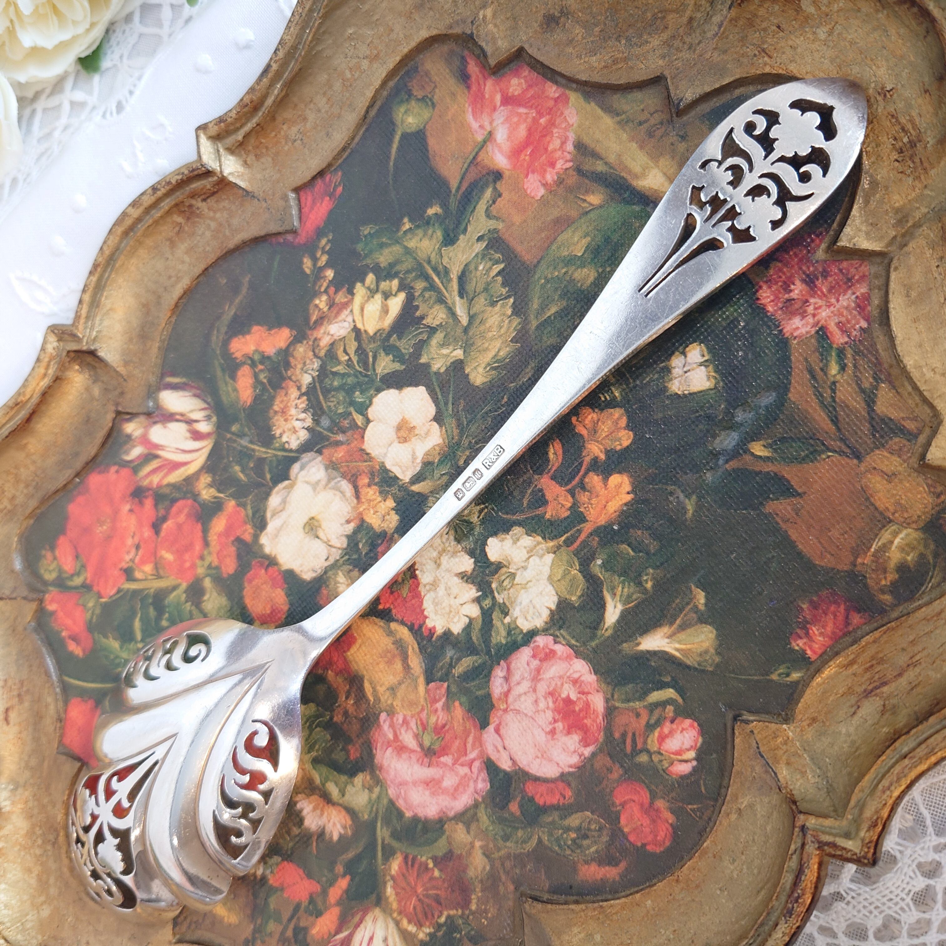 ボウルと持ち手に施されたお花のピアッシングデザインがとても美しいお品です