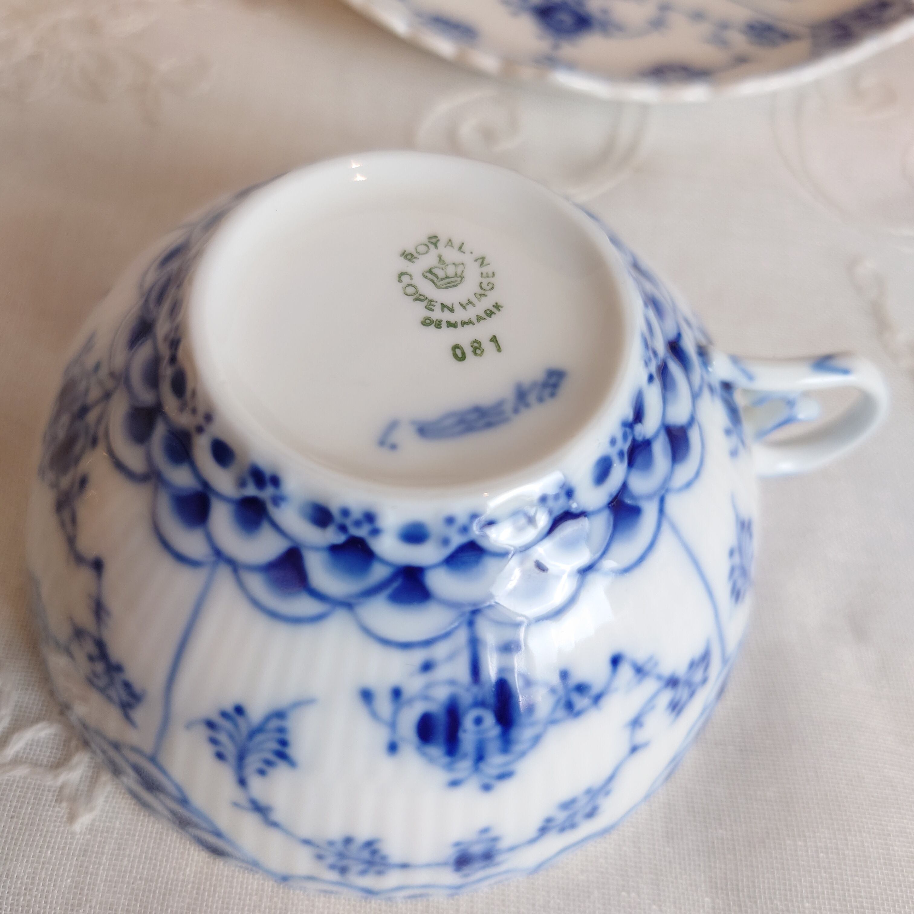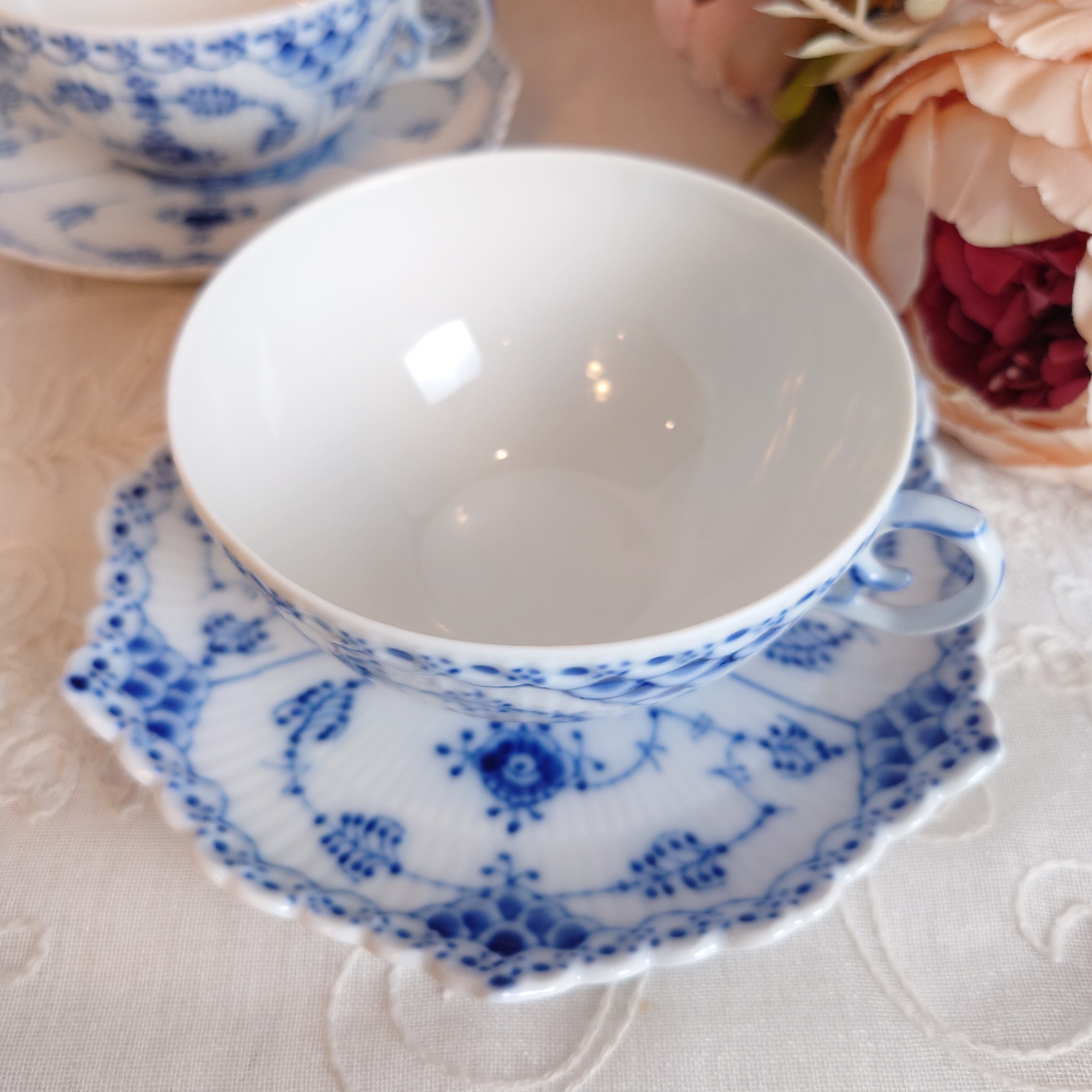 ロイヤルコペンハーゲン ROYAL COPENHAGEN ブルーフルーテッド フルレース ティーカップ&ソーサー