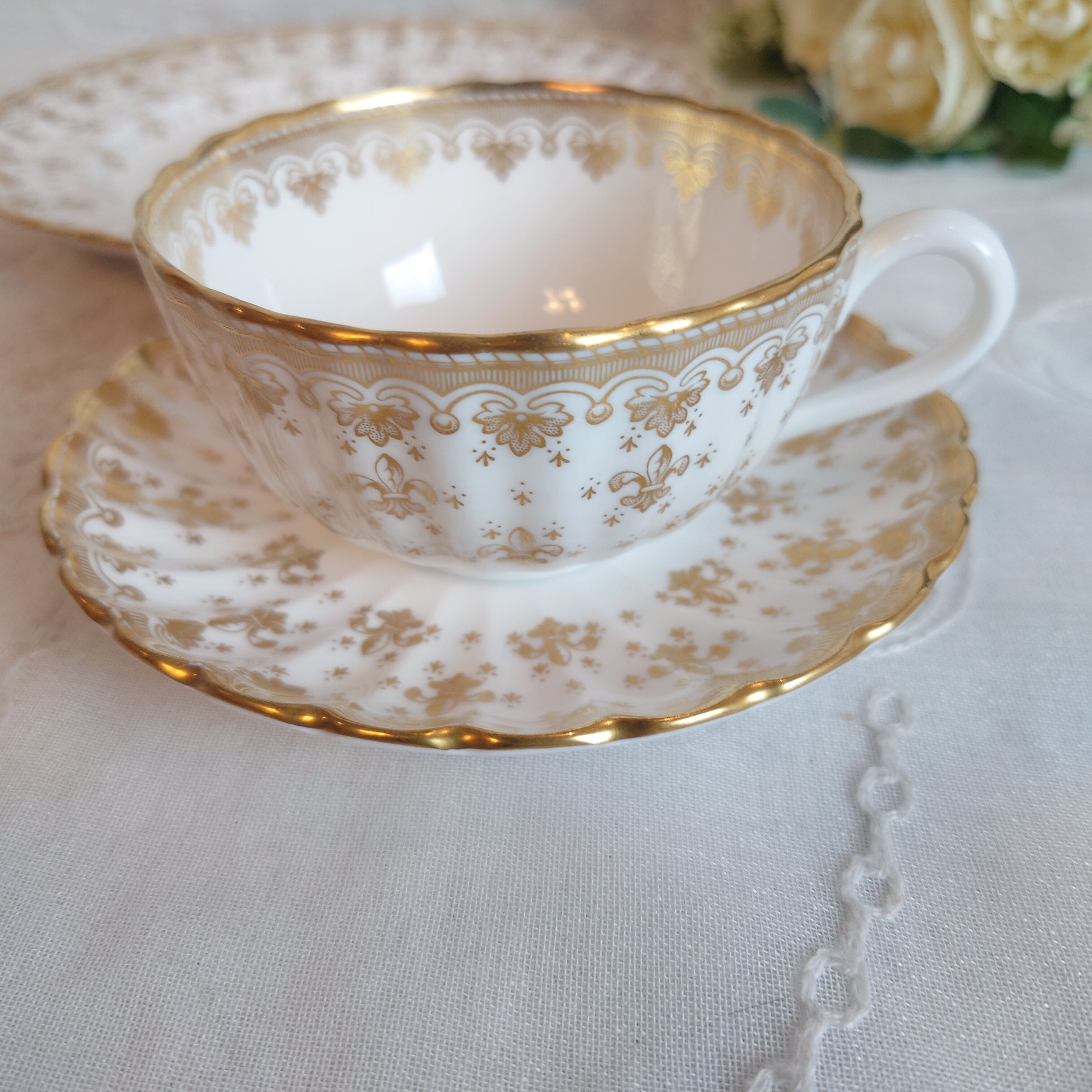 フルール・ド・リス ゴールドのカップ&ソーサー ケーキプレートの3点が揃ったトリオになります