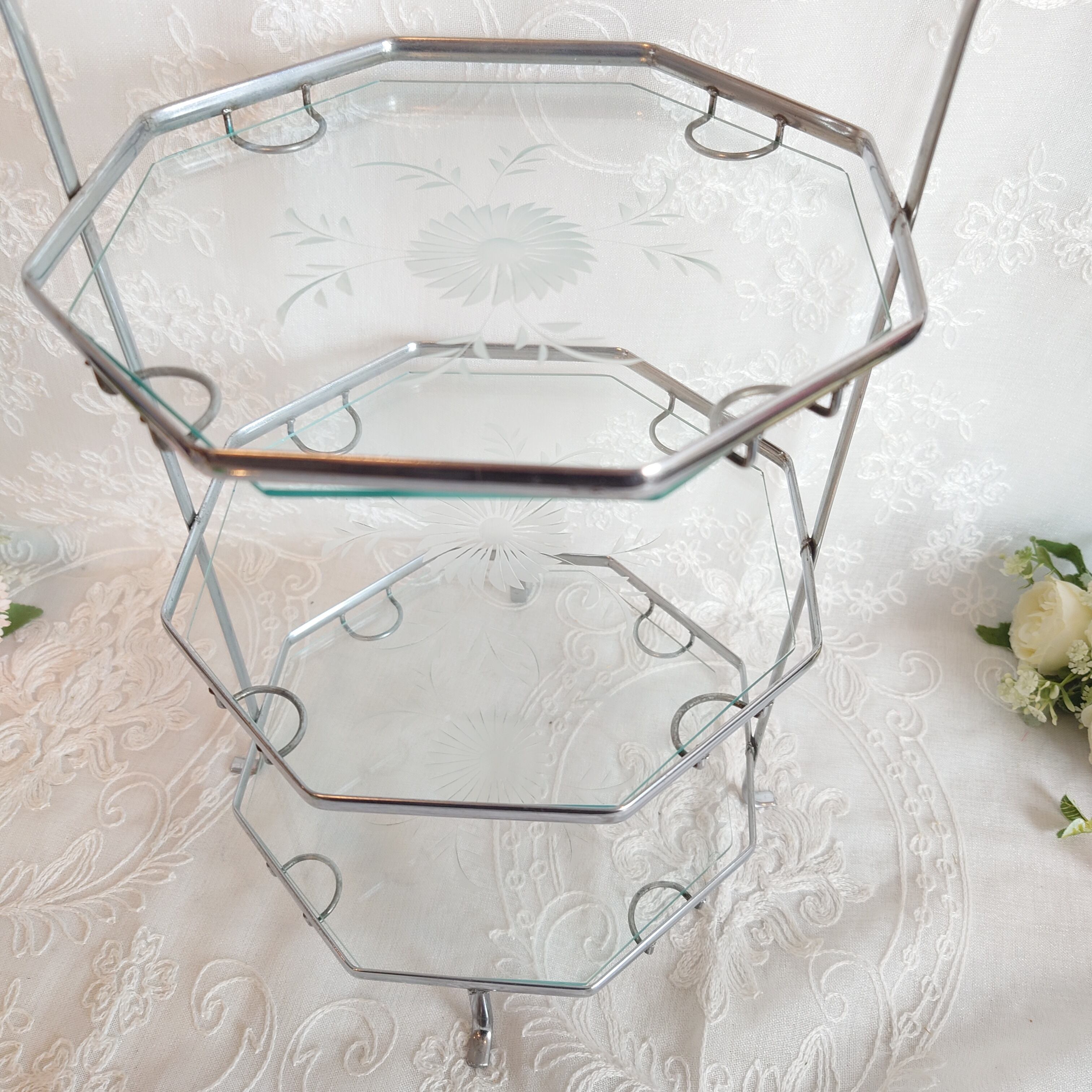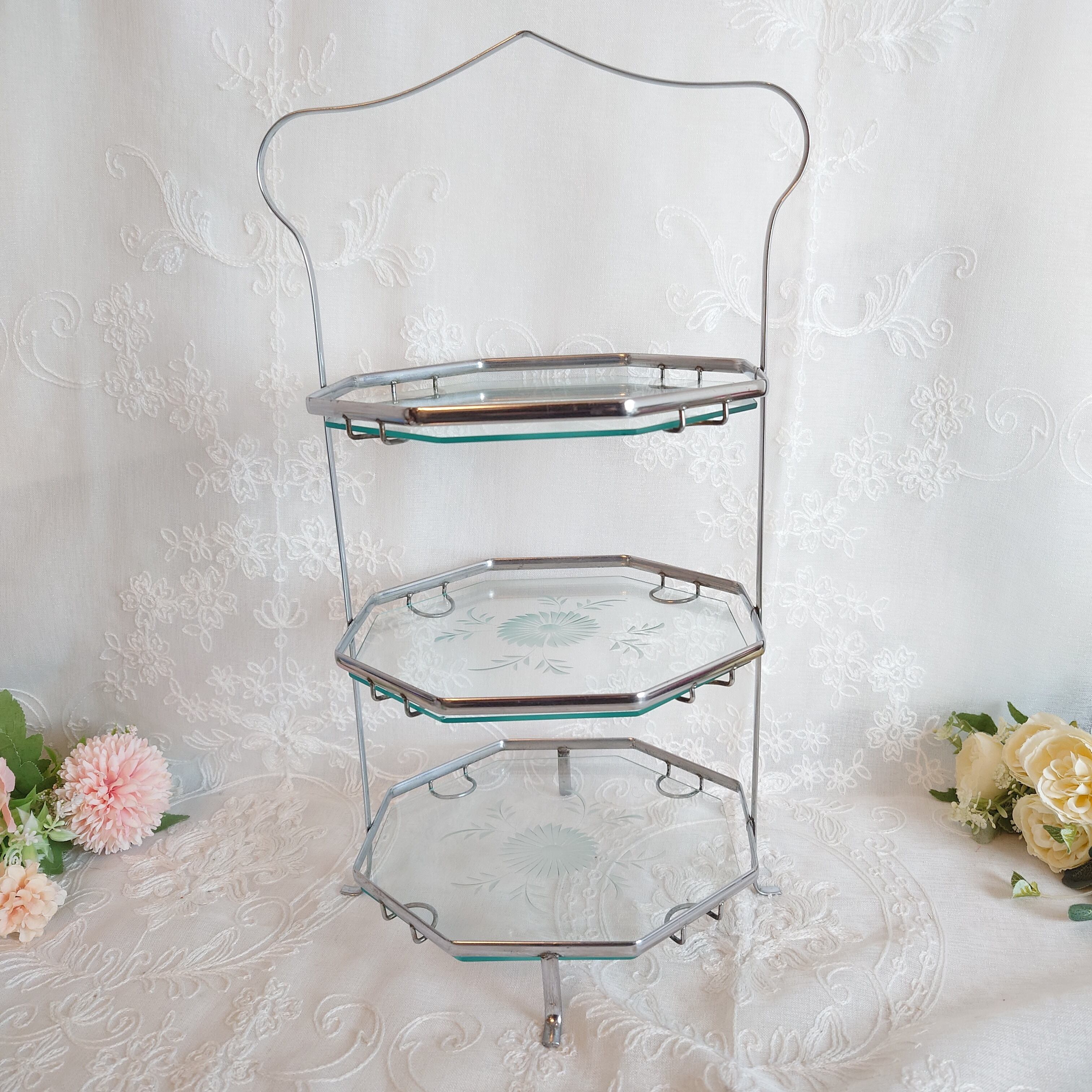フレームの形もアンティークらしく、クラシカルなデザインで、中のお皿がガラスのケーキスタンドはちょっと珍しいお品です