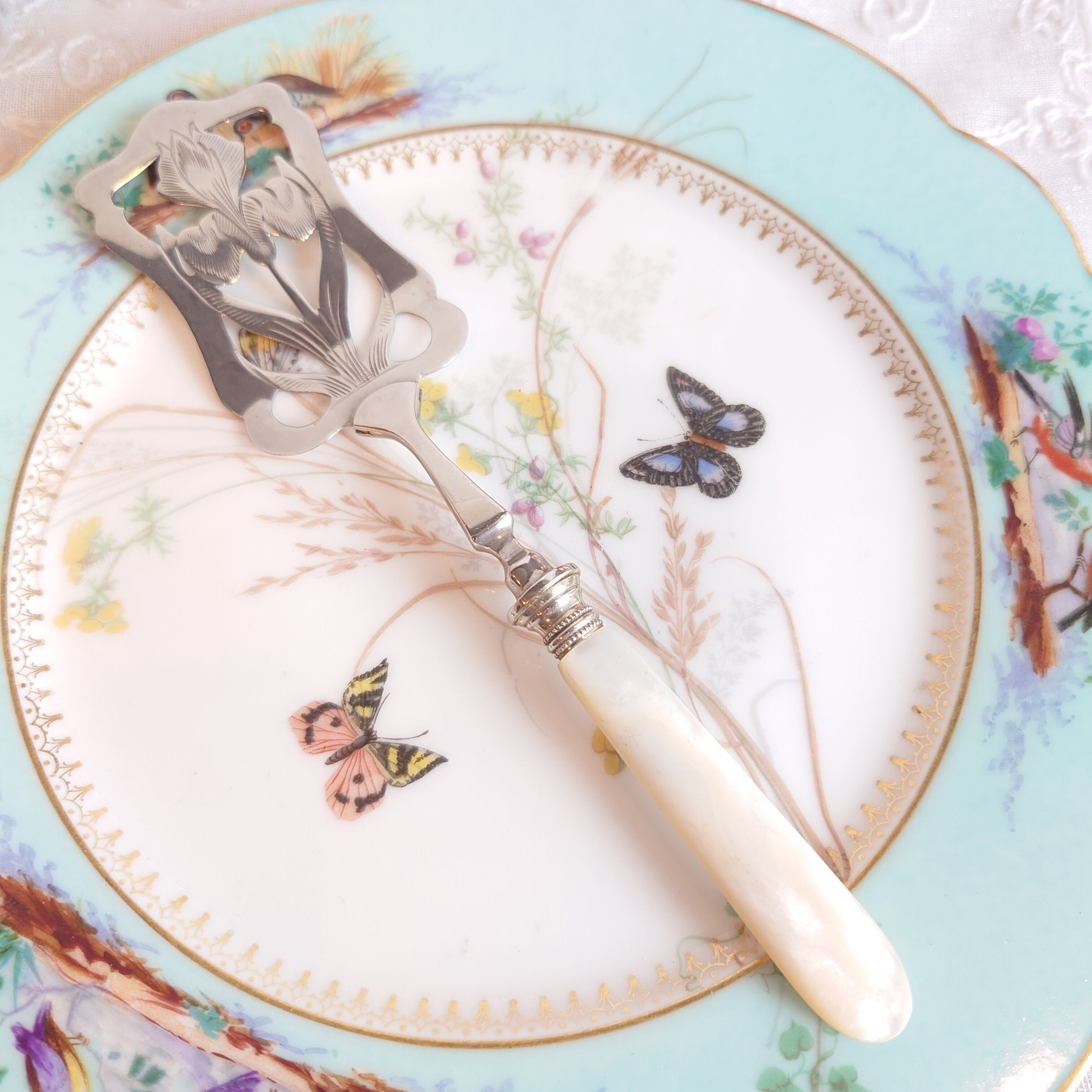 白蝶貝ハンドルのサービングカトラリーです