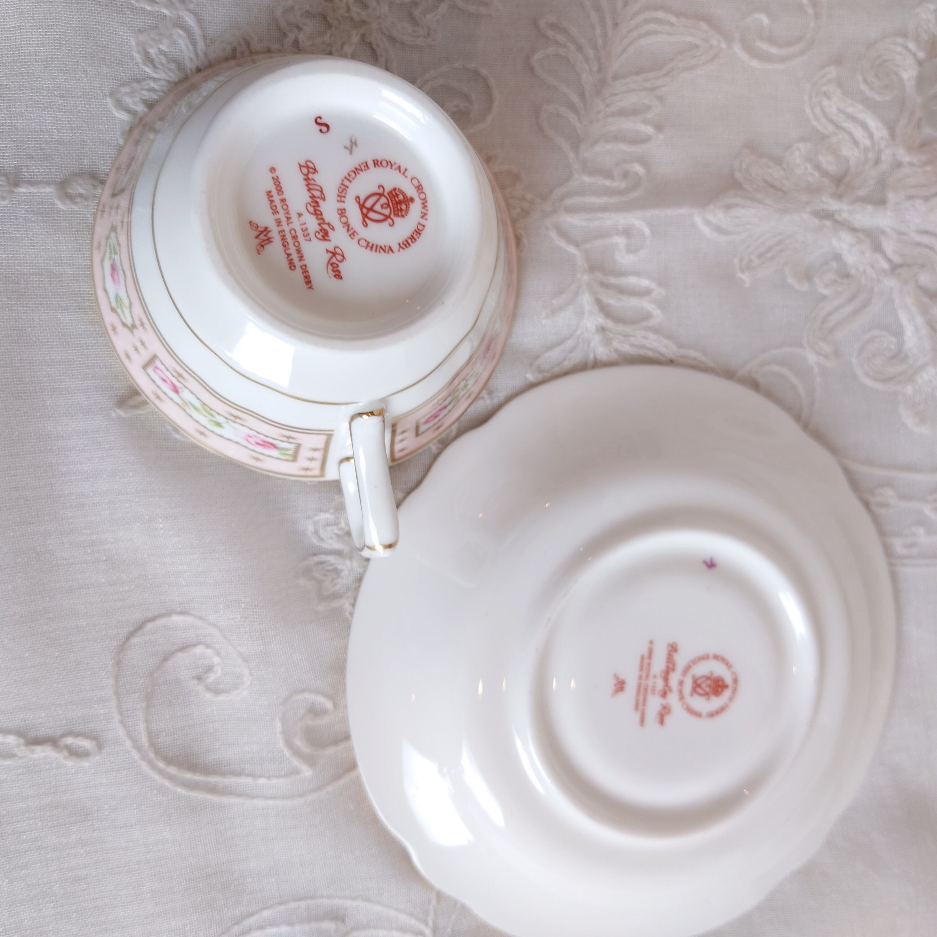 ロイヤルクラウンダービーの250周年記念で作られたビリングスレイローズのカップ&ソーサー ケーキプレートのトリオです。