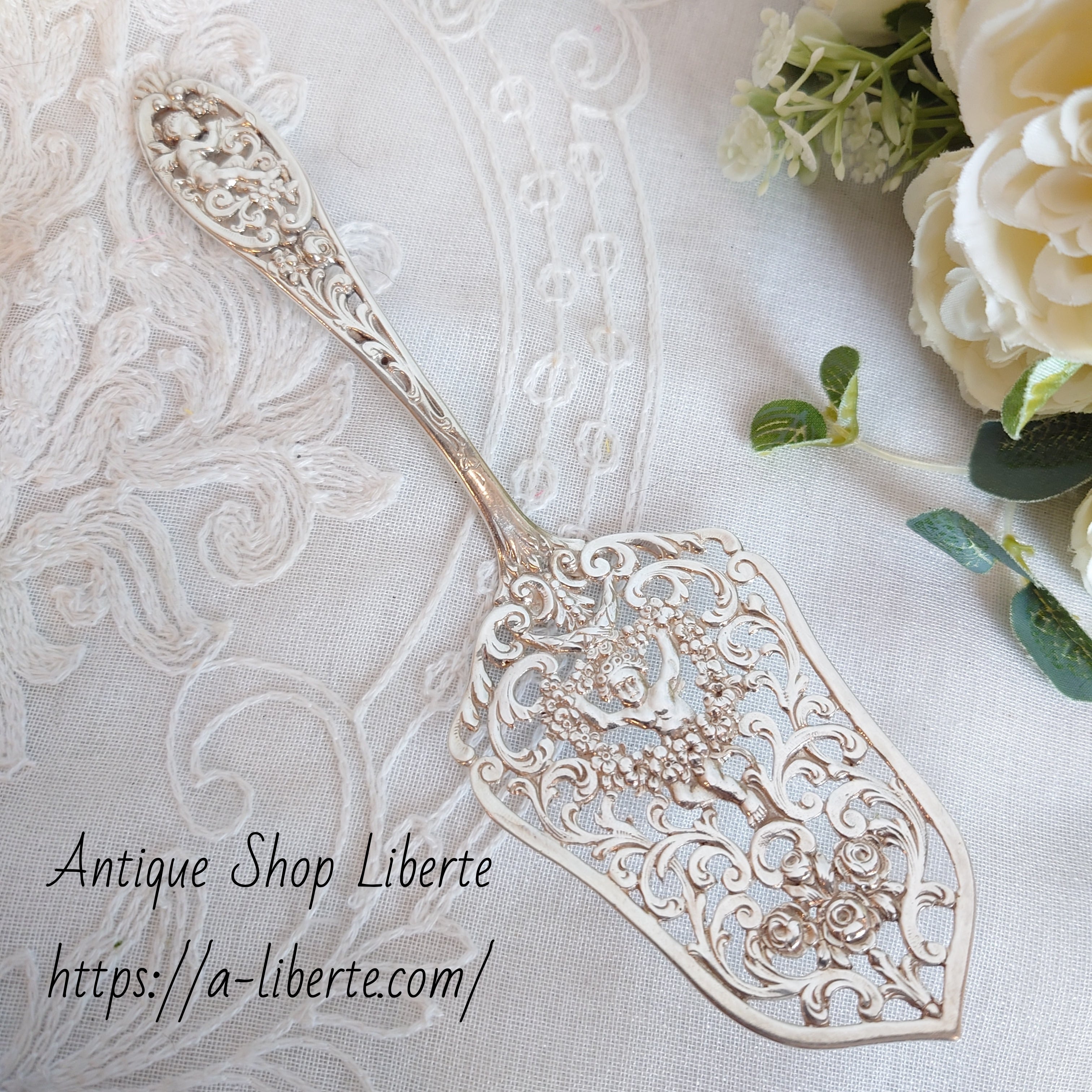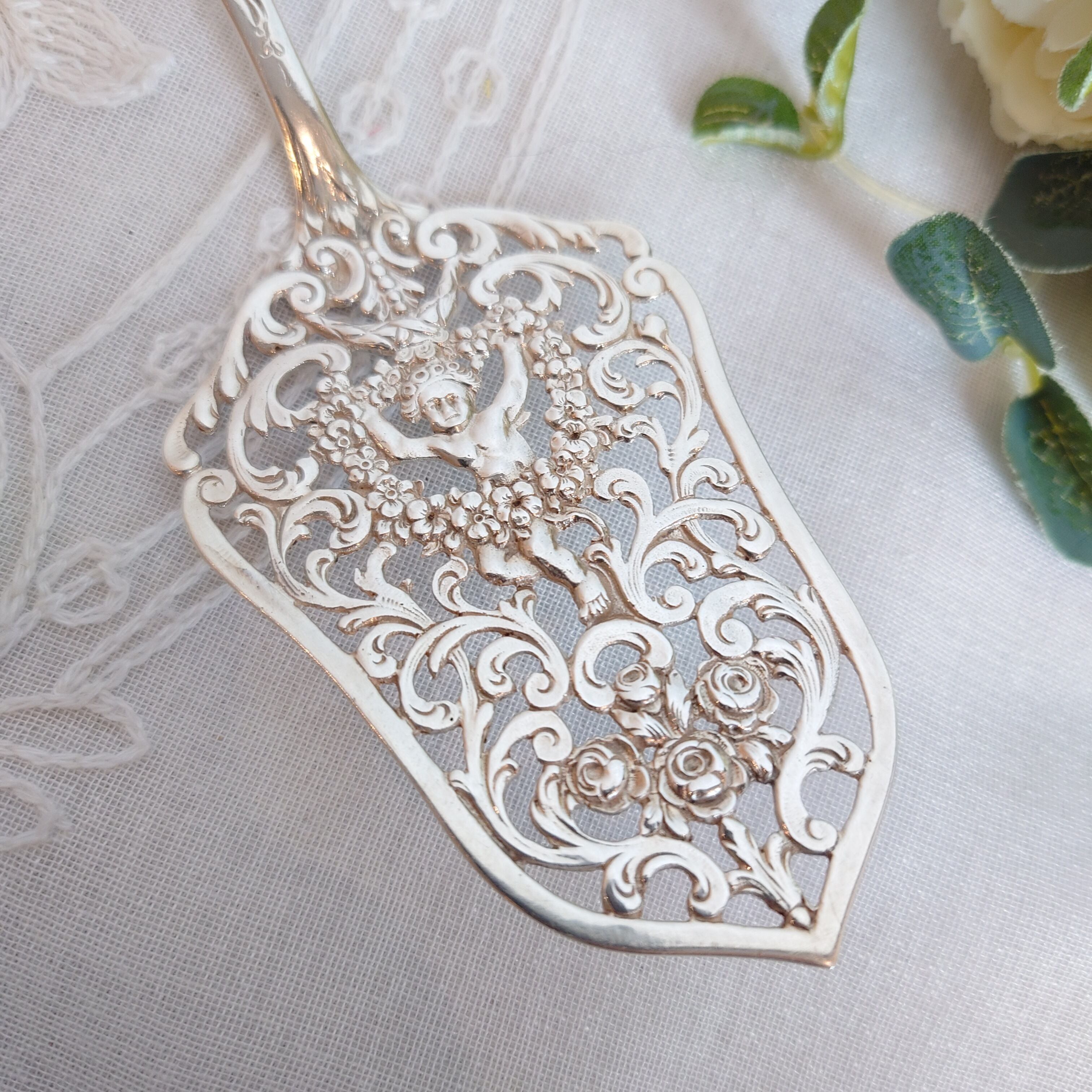 ドイツ製 純銀 ケーキサーバー エンジェル フラワーガーランド