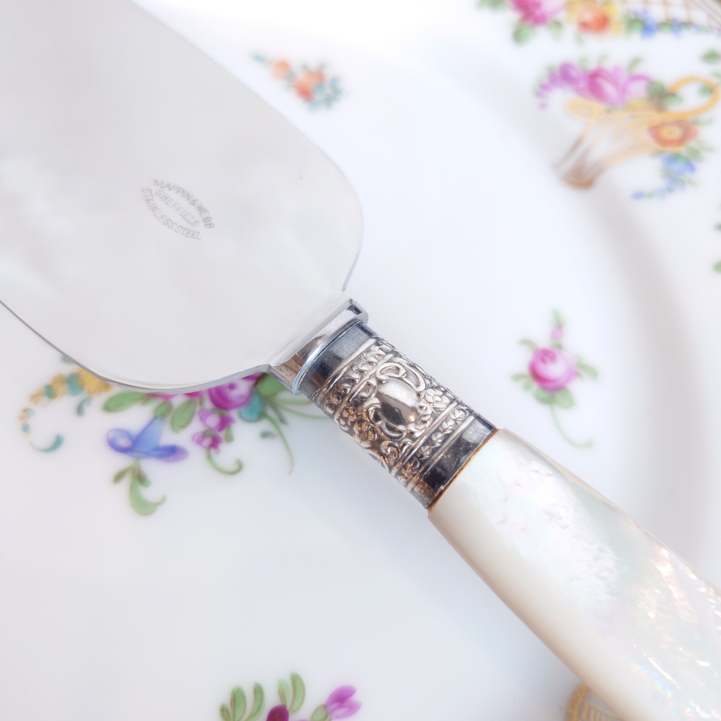 英国王室御用達マッピン&ウエッブ社の白蝶貝ハンドルケーキサーバーです