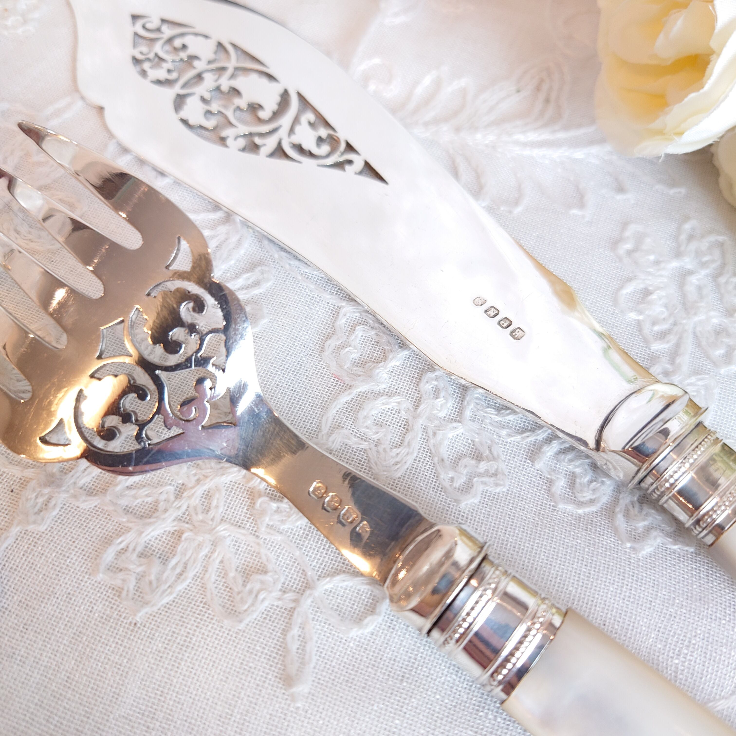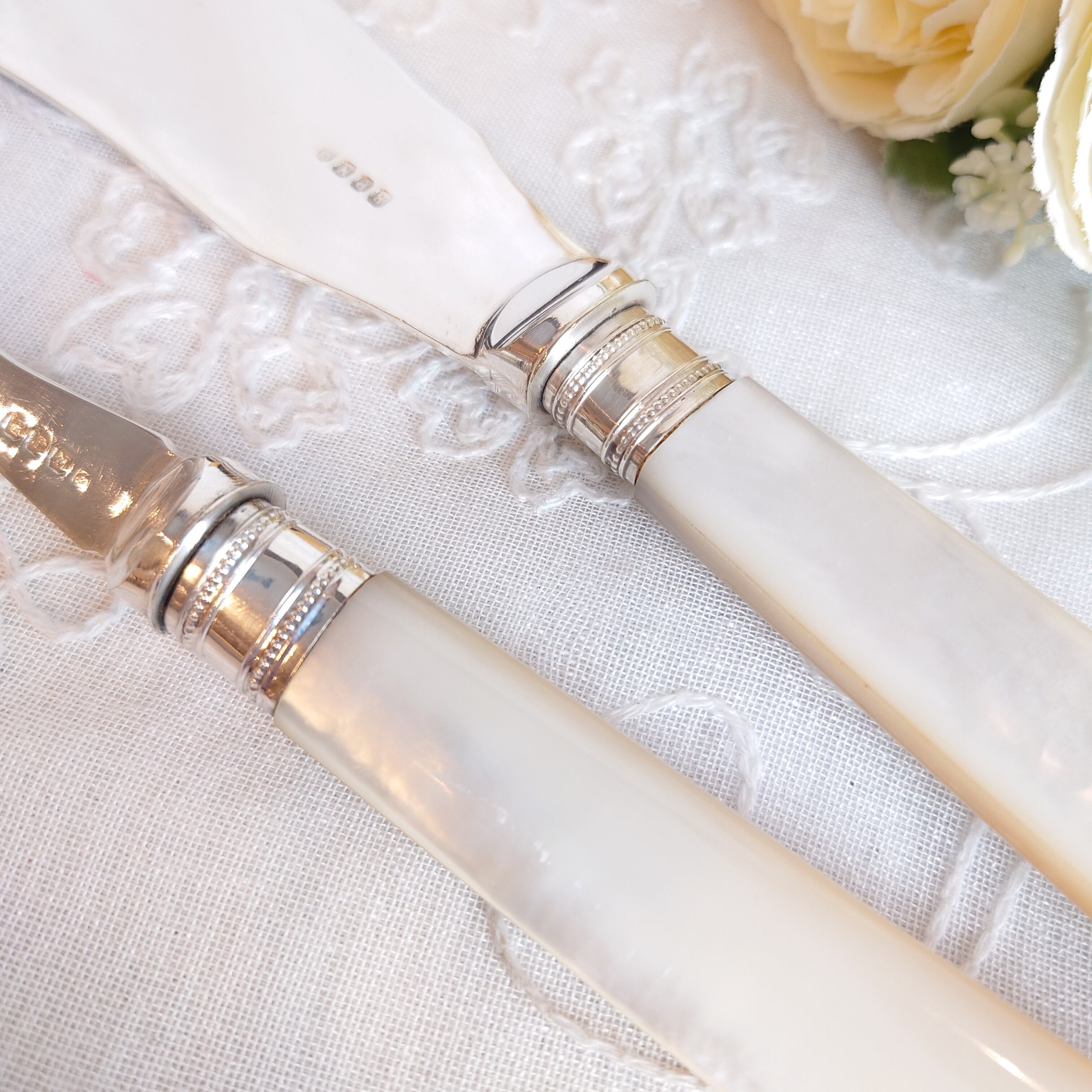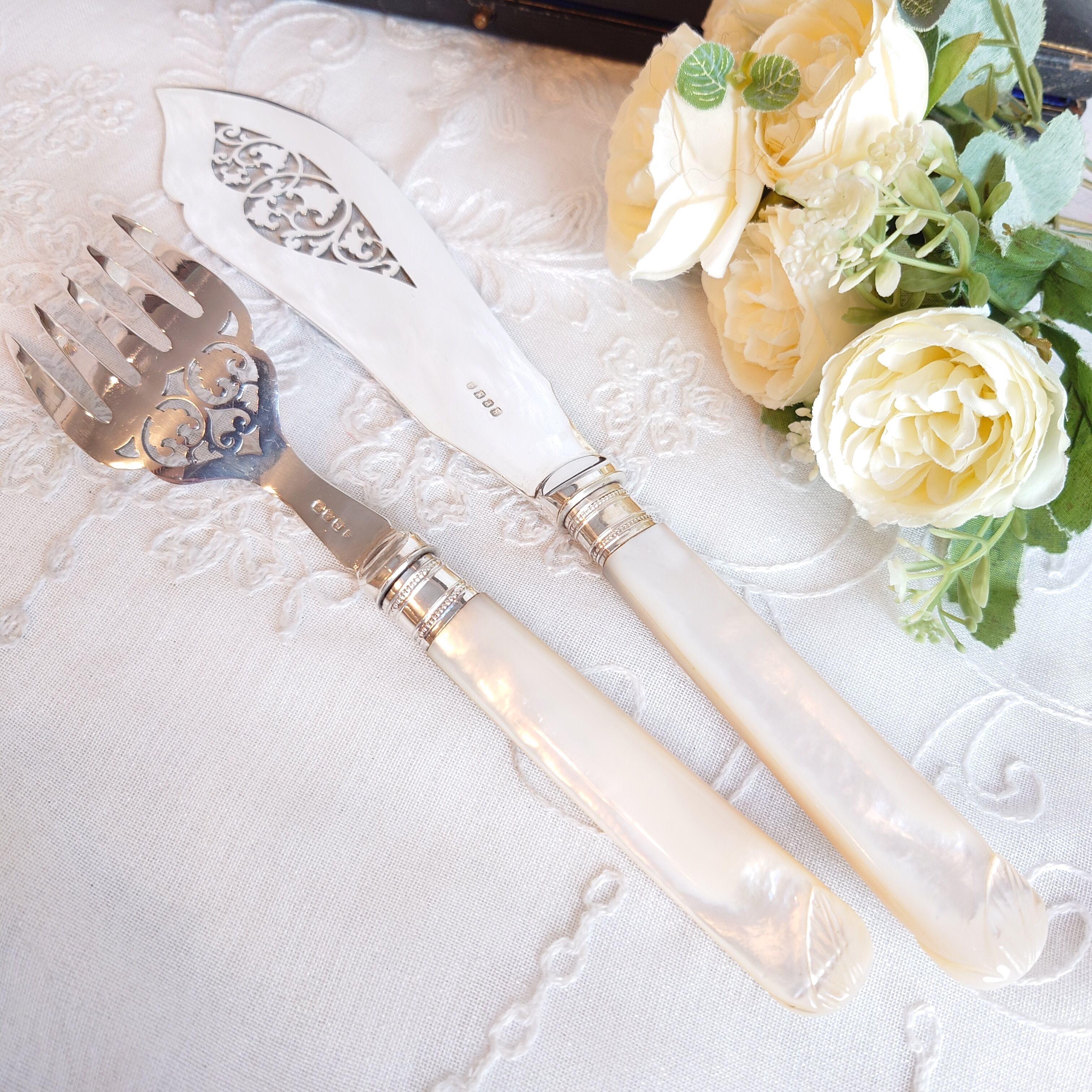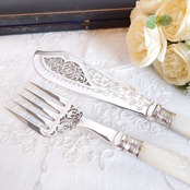 白蝶貝ハンドルのサービングナイフ&フォークです