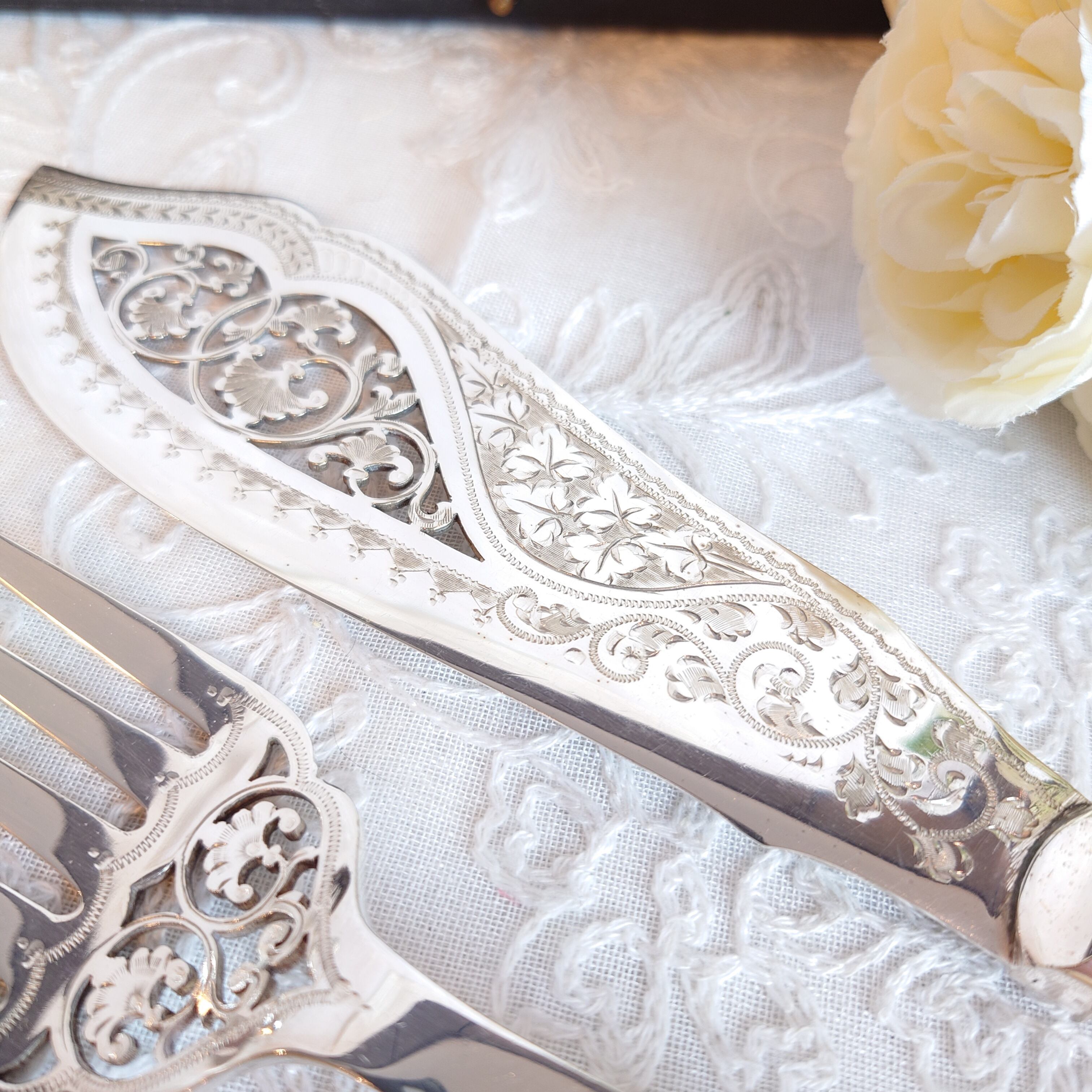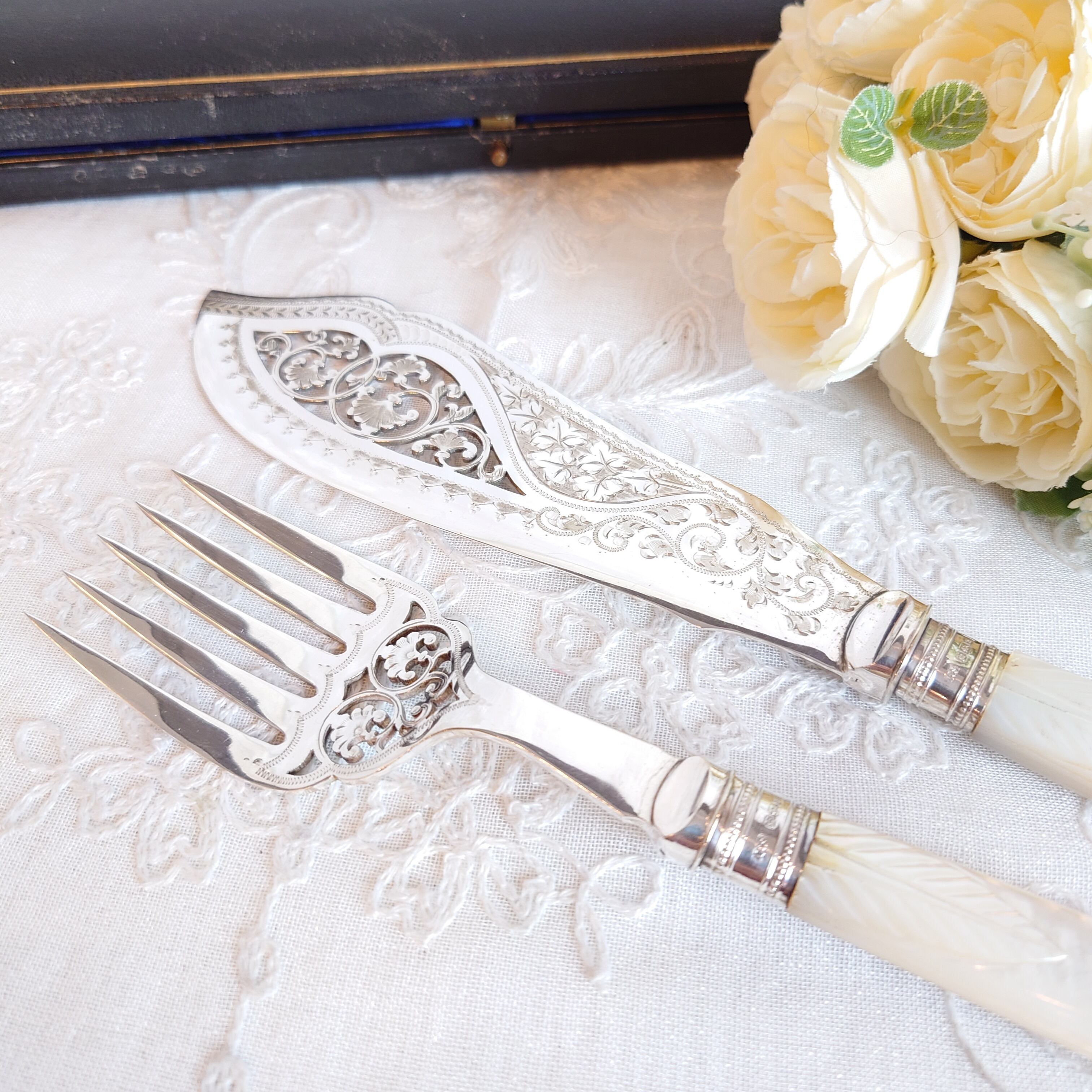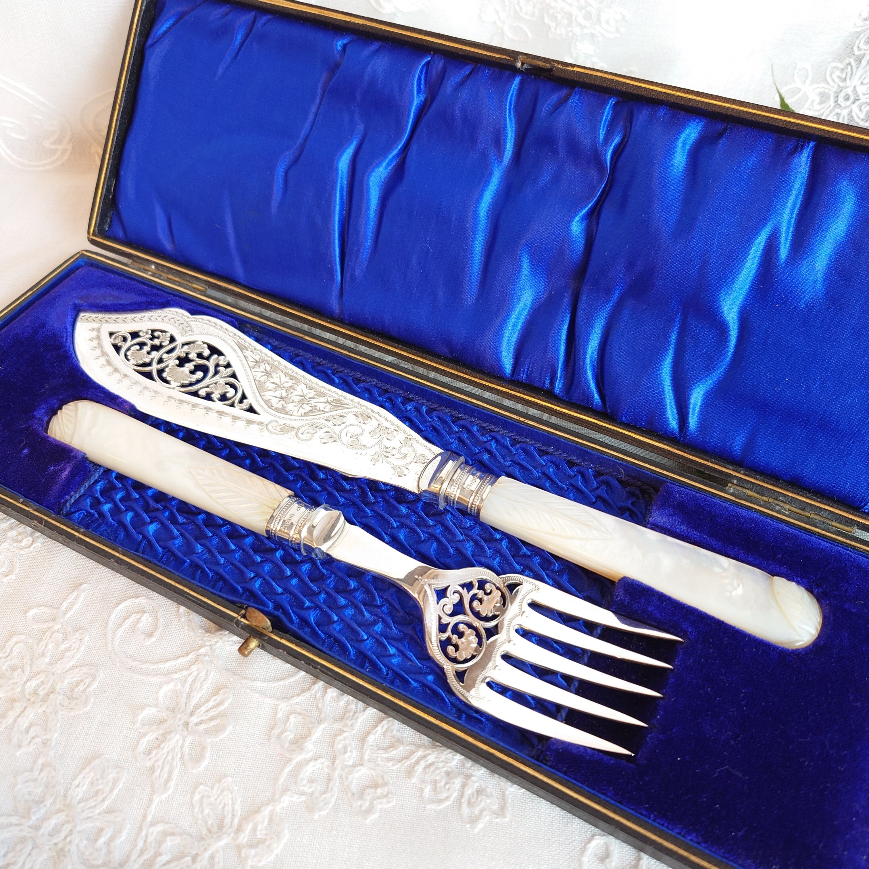 白蝶貝ハンドルのサービングナイフ&フォークです