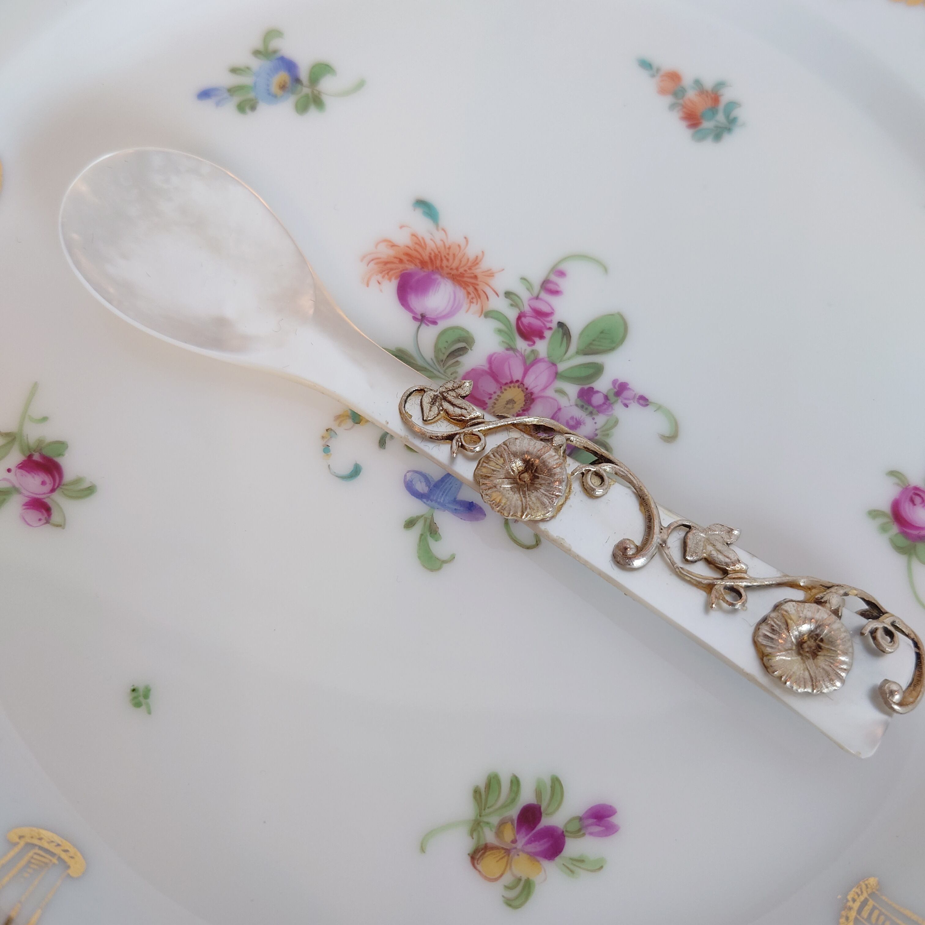 シルバー装飾が施されたマザーオブパールのスプーンです