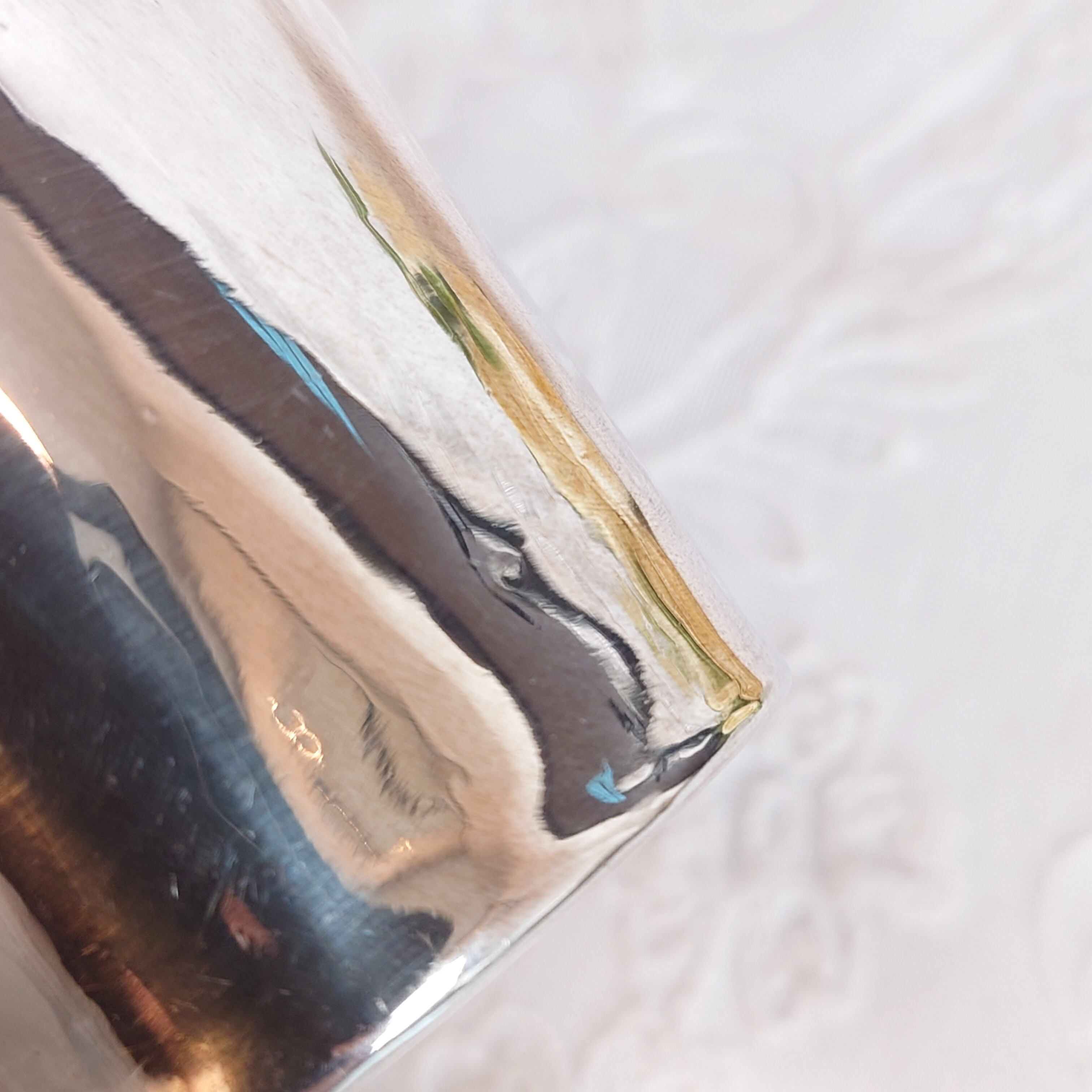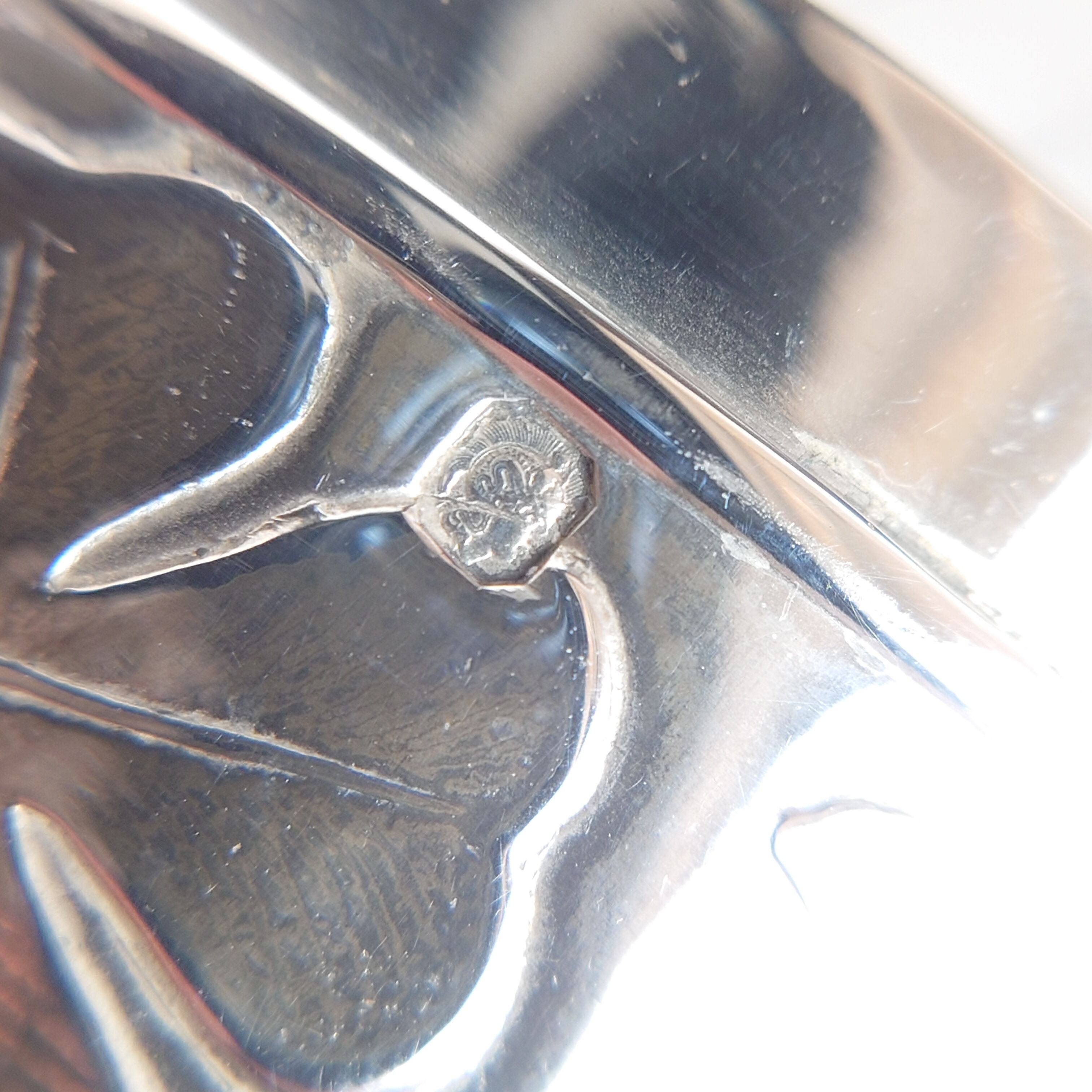 アンティークシルバーで多少のスレやシルバー特有の黒ずみ、わずかに歪みが見られます
