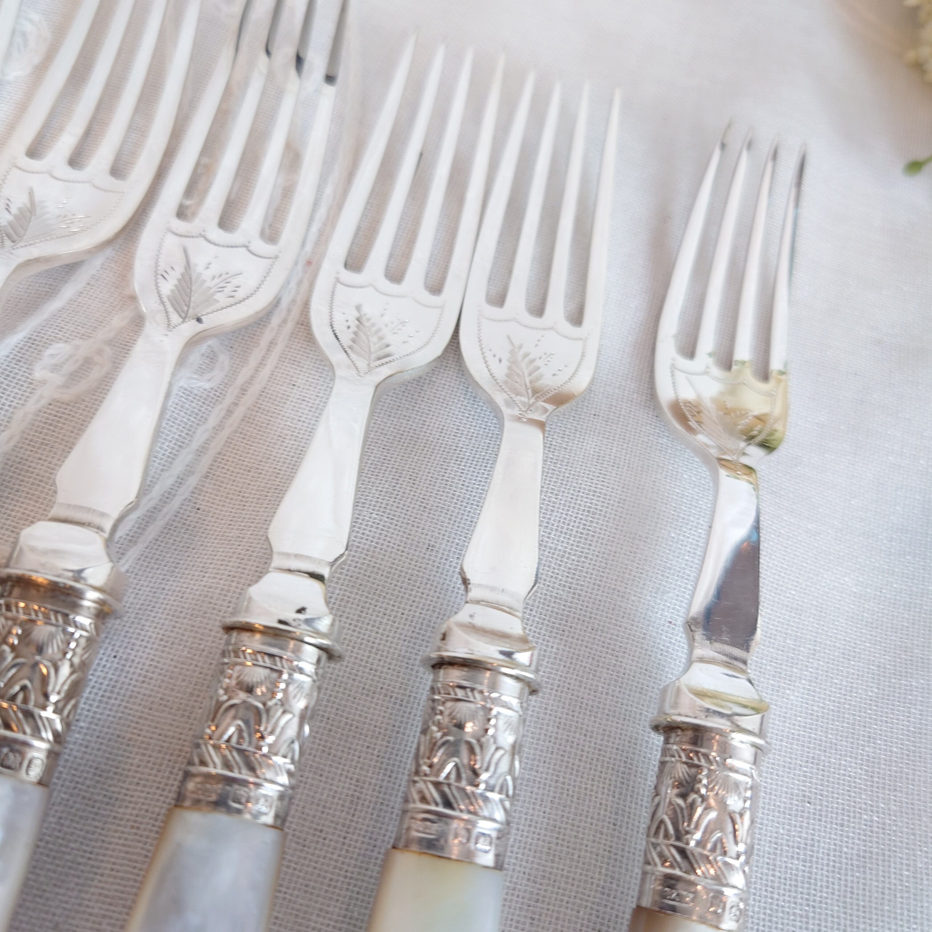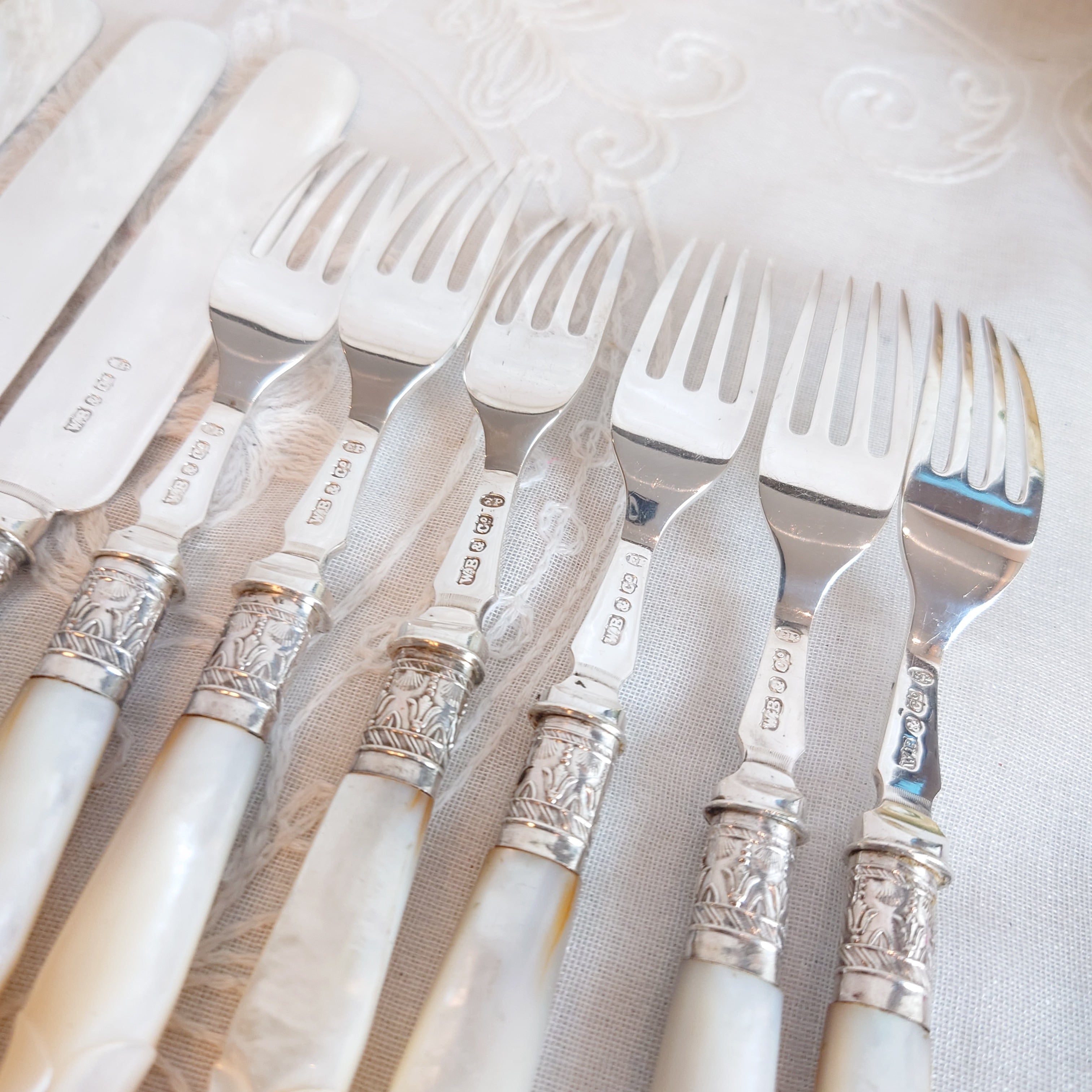 白蝶貝 デザートカトラリーセット 12本組 純銀フェルール