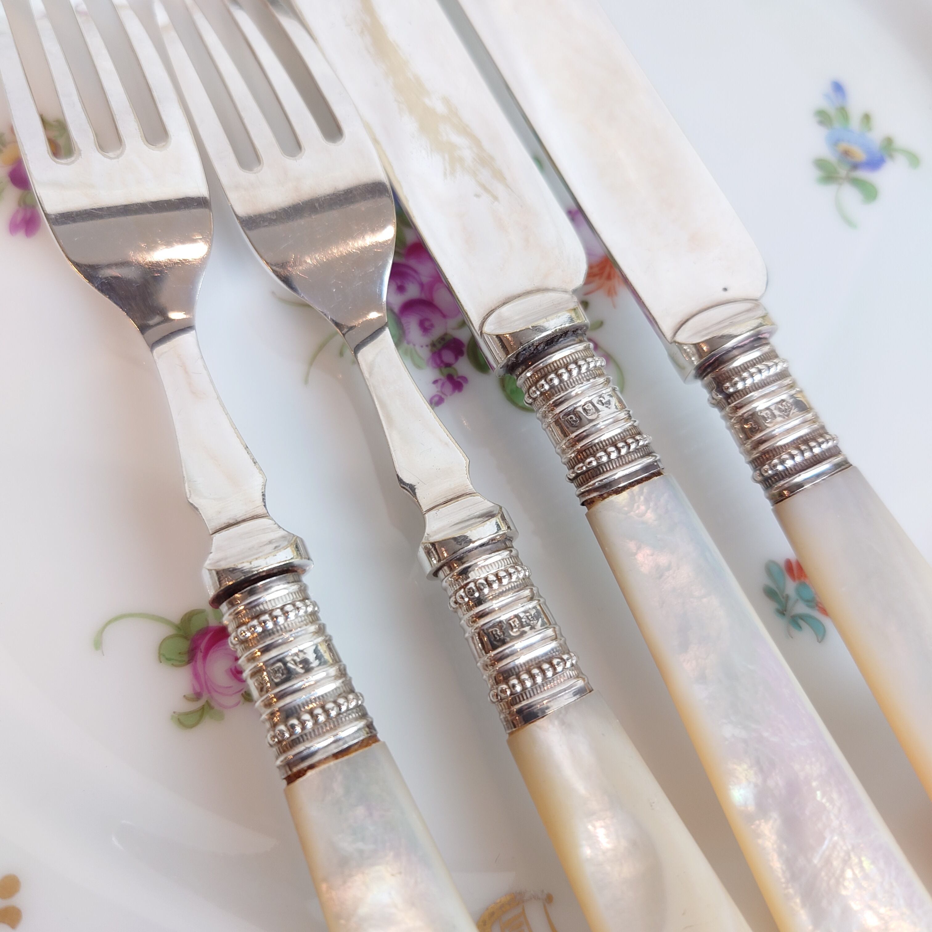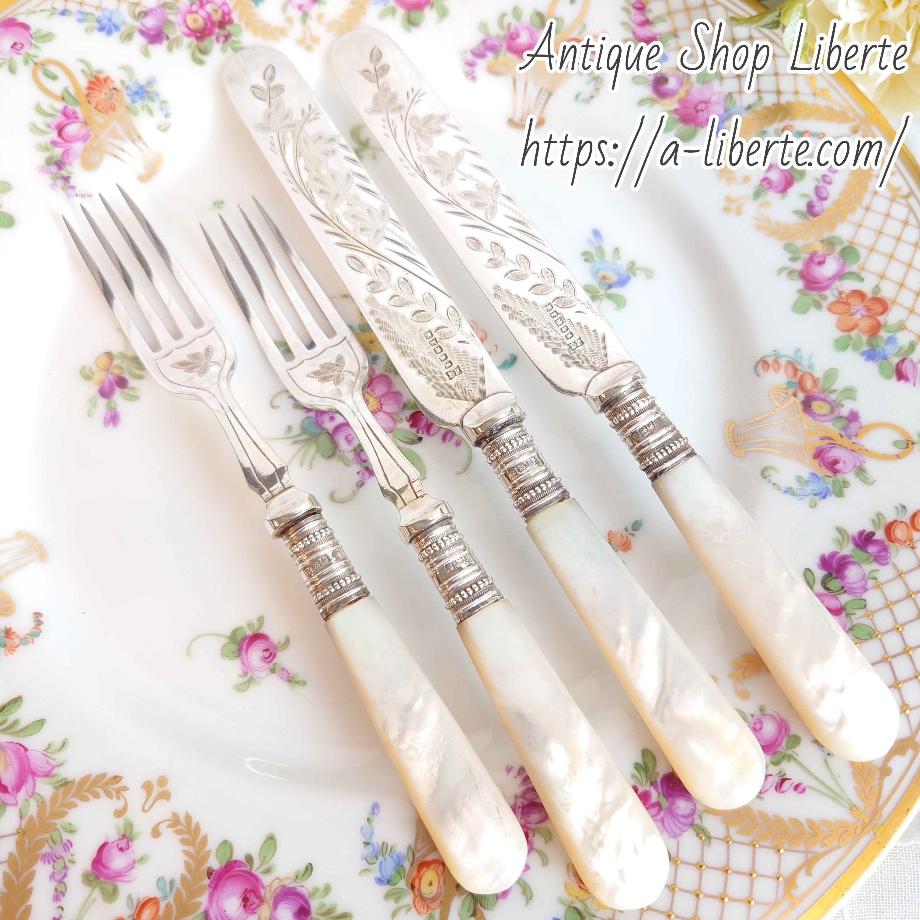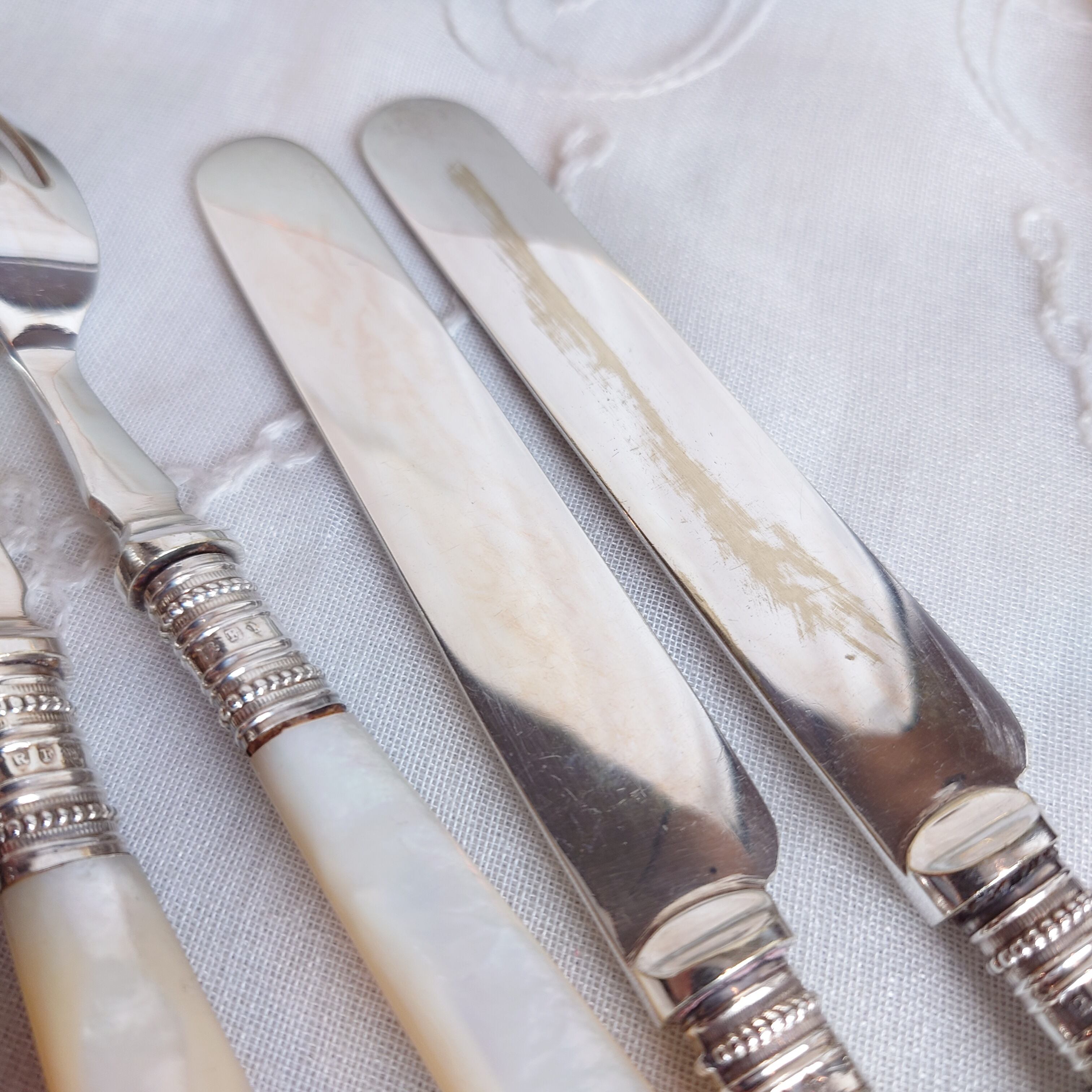 イギリス製 アンティーク 白蝶貝デザートカトラリー セットA