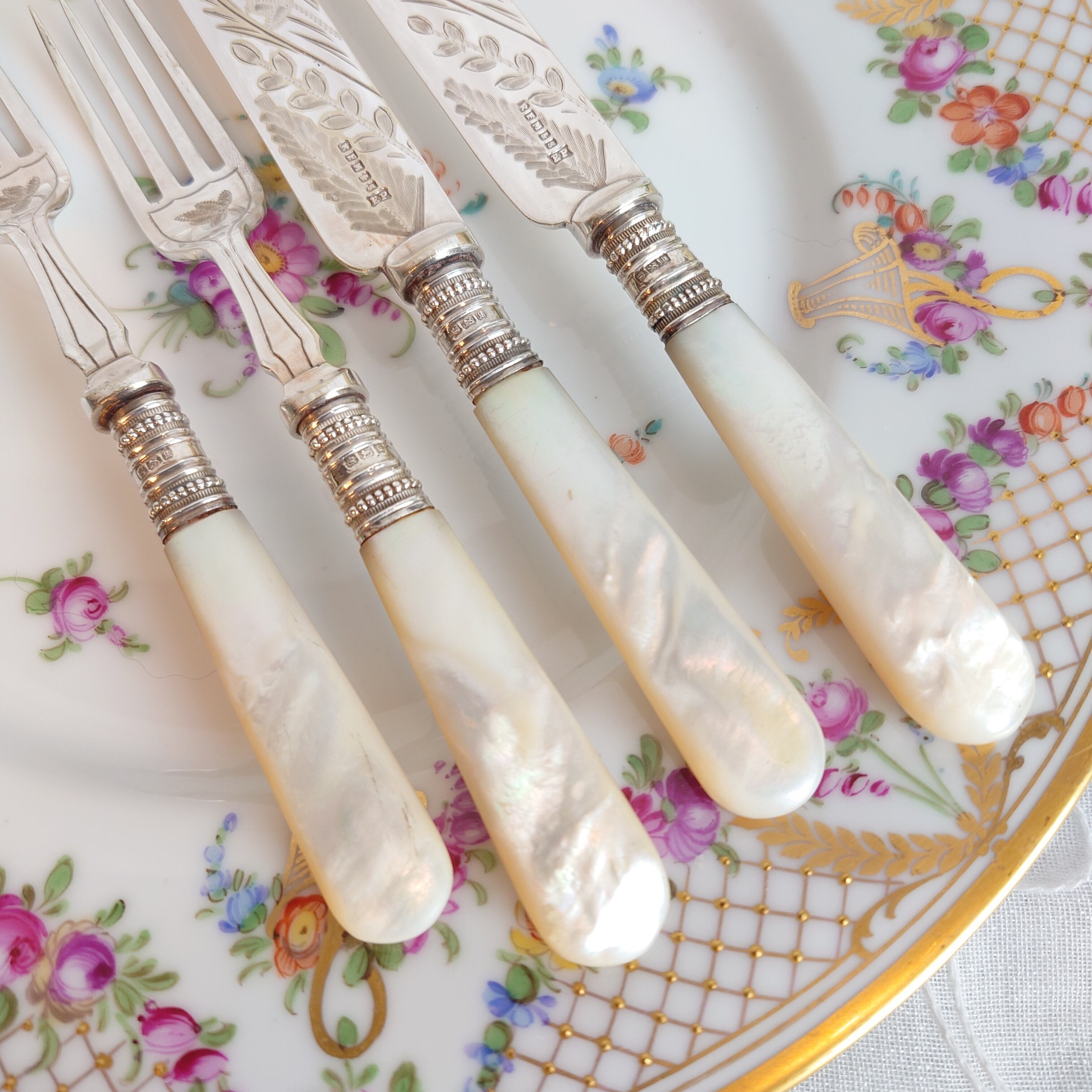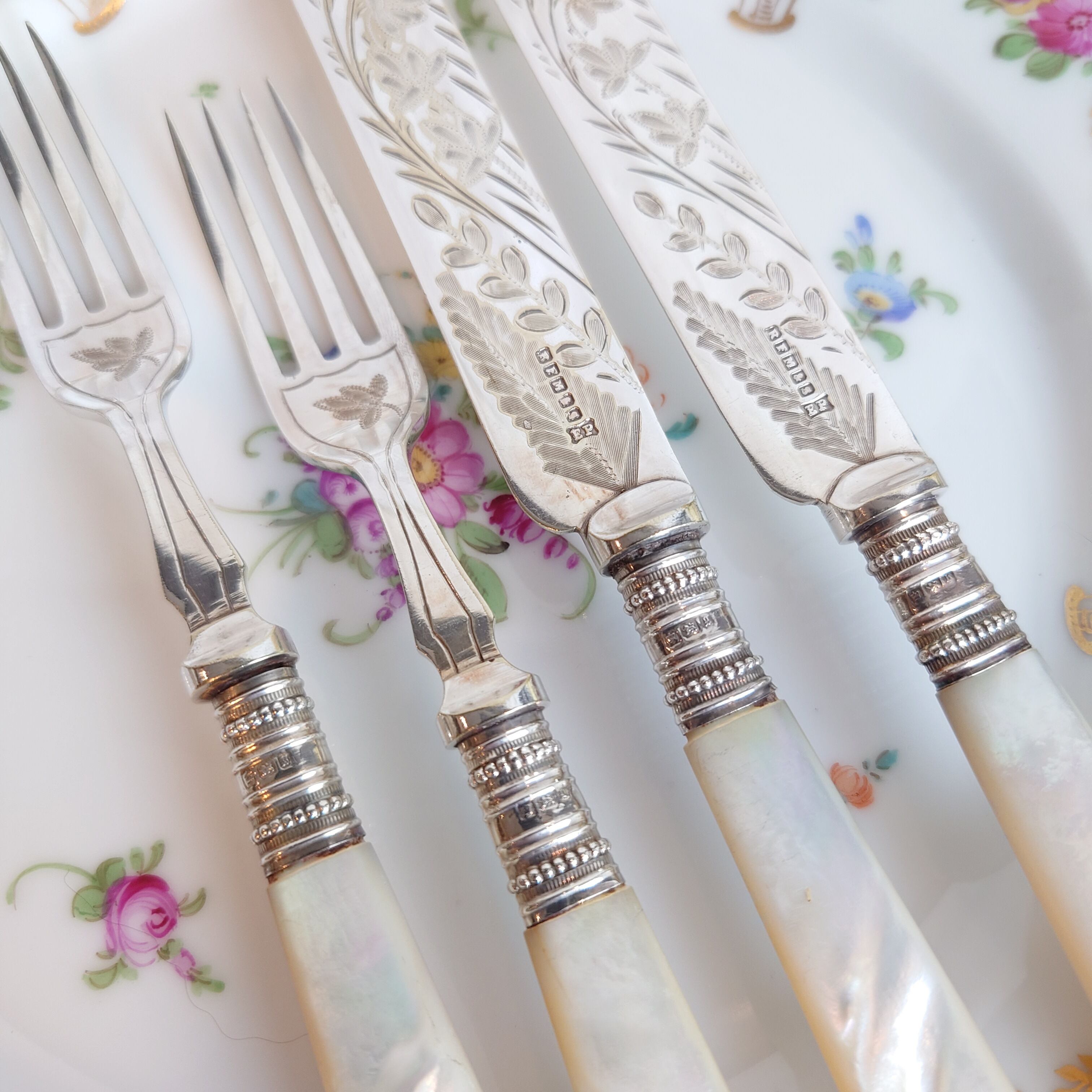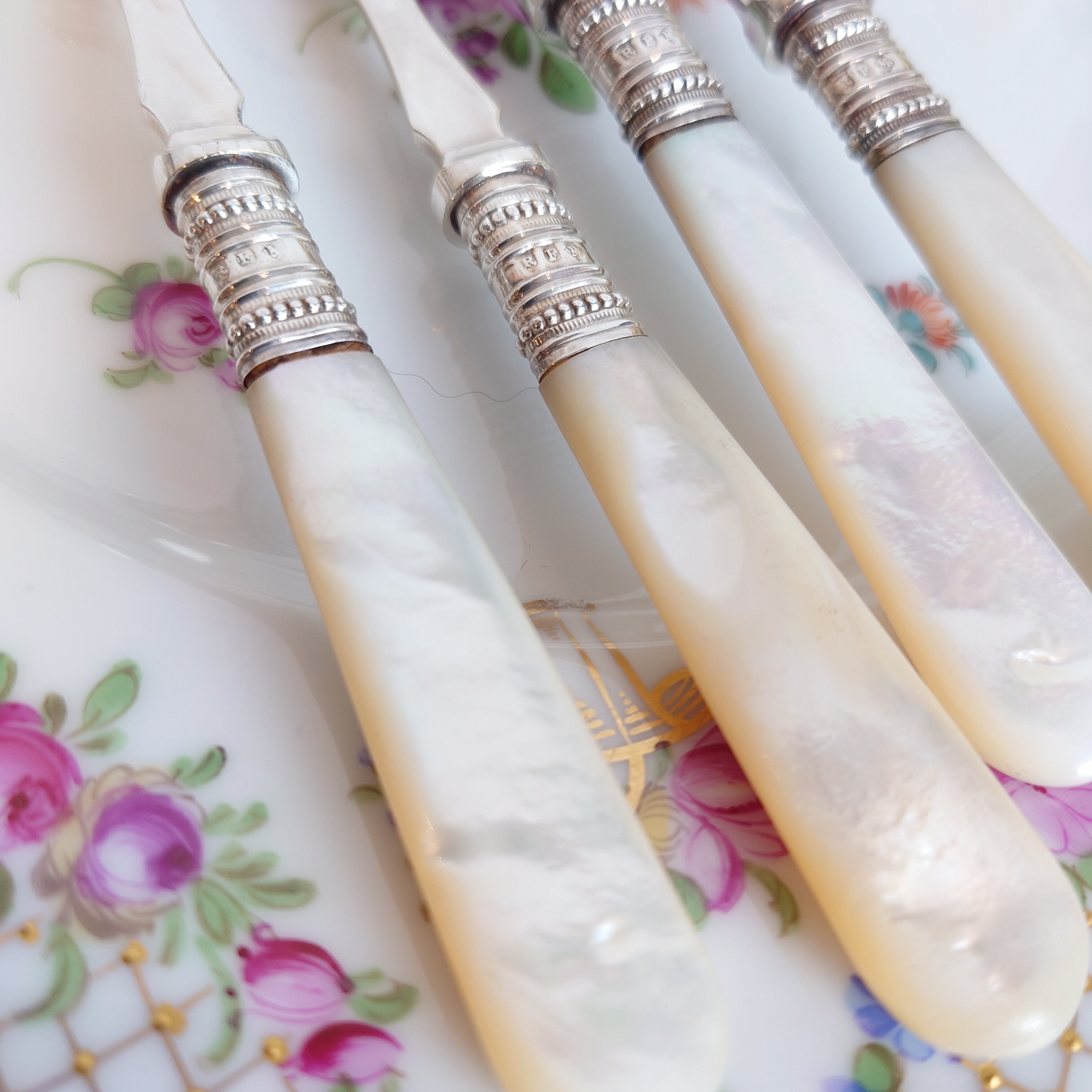 イギリス製 アンティーク 白蝶貝デザートカトラリー セットA