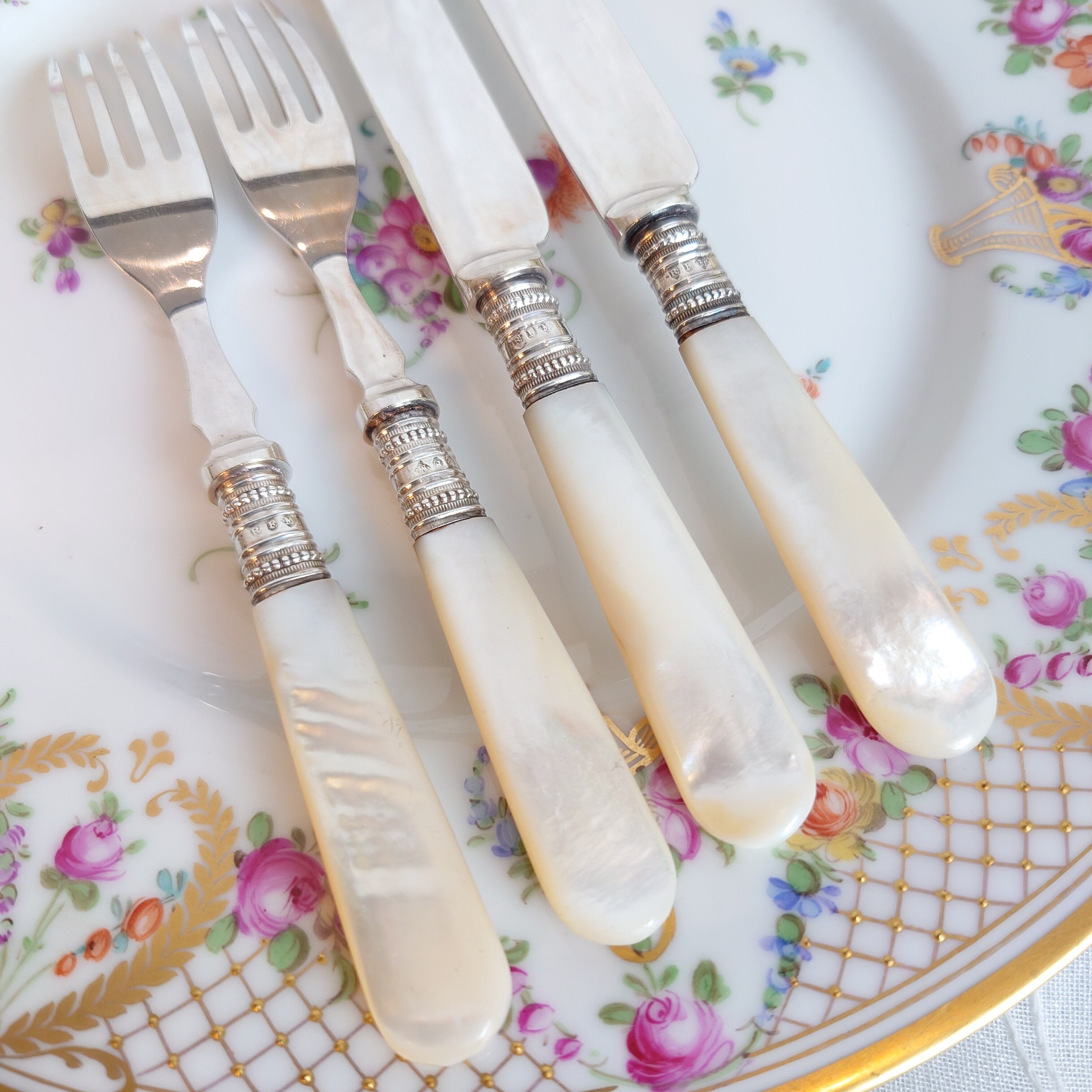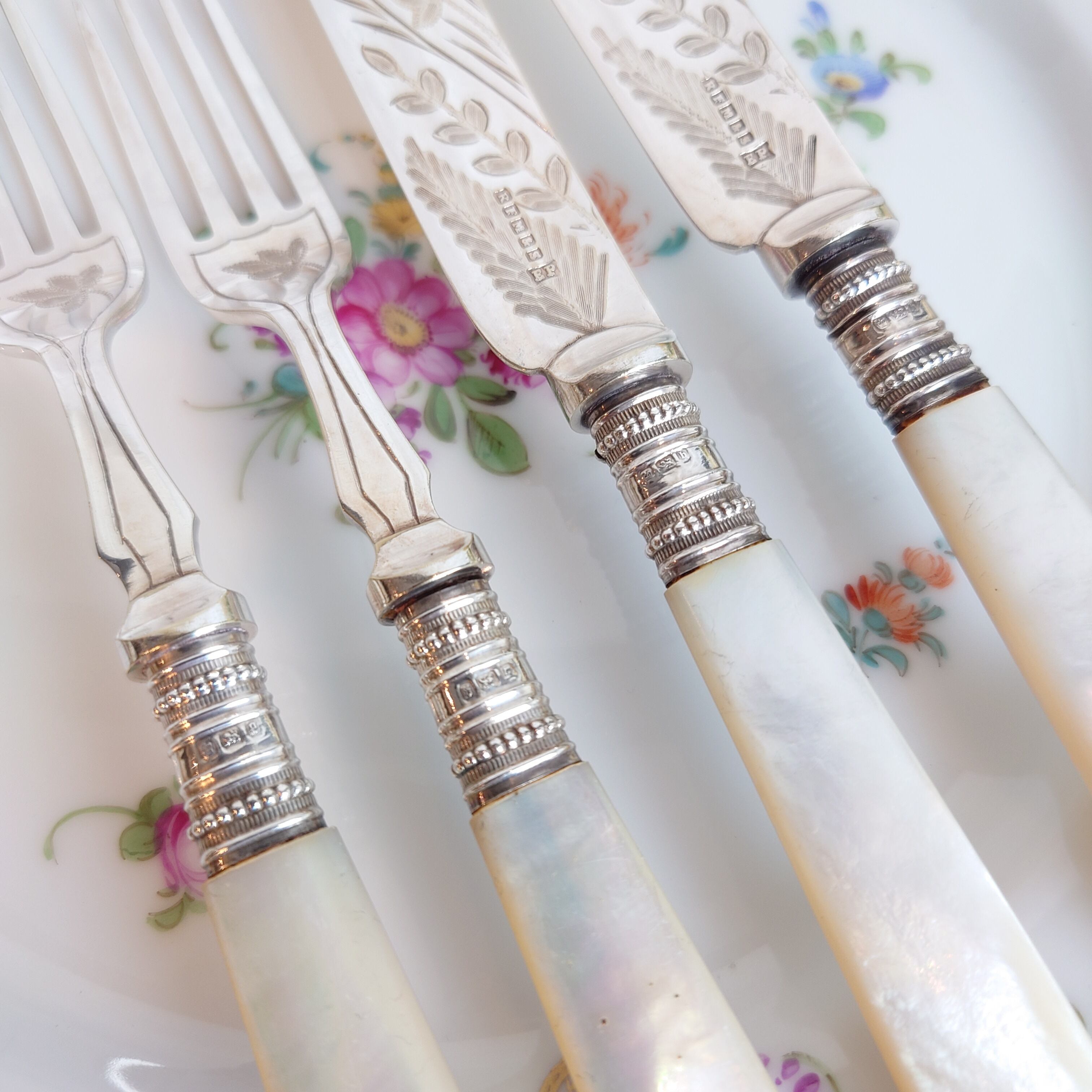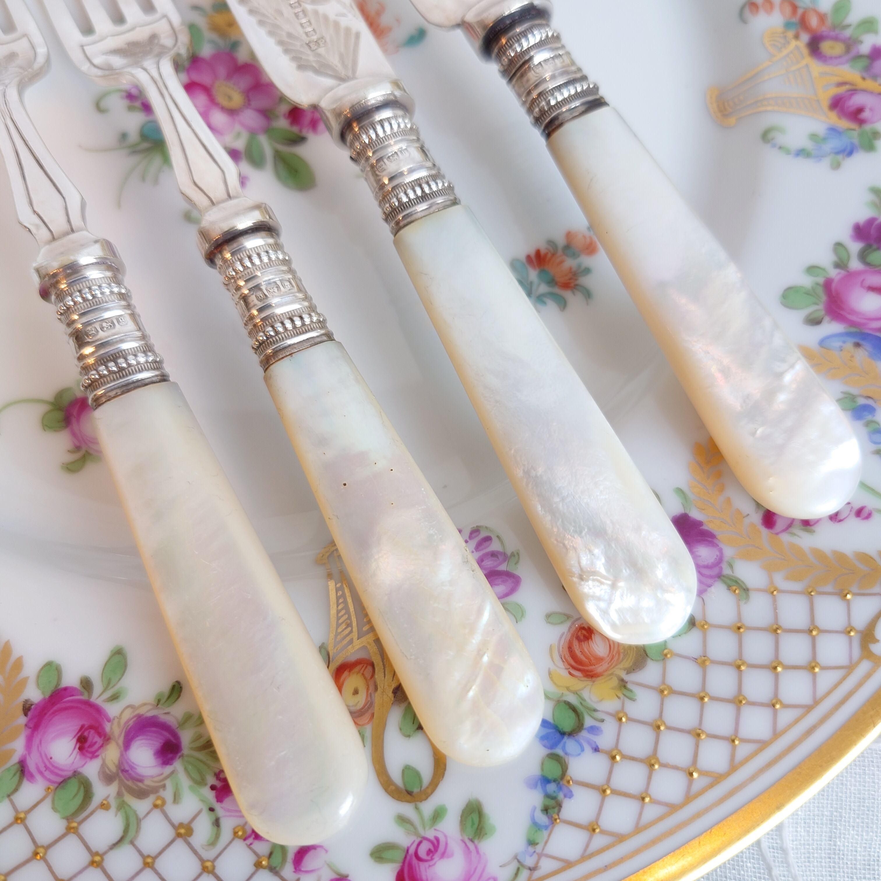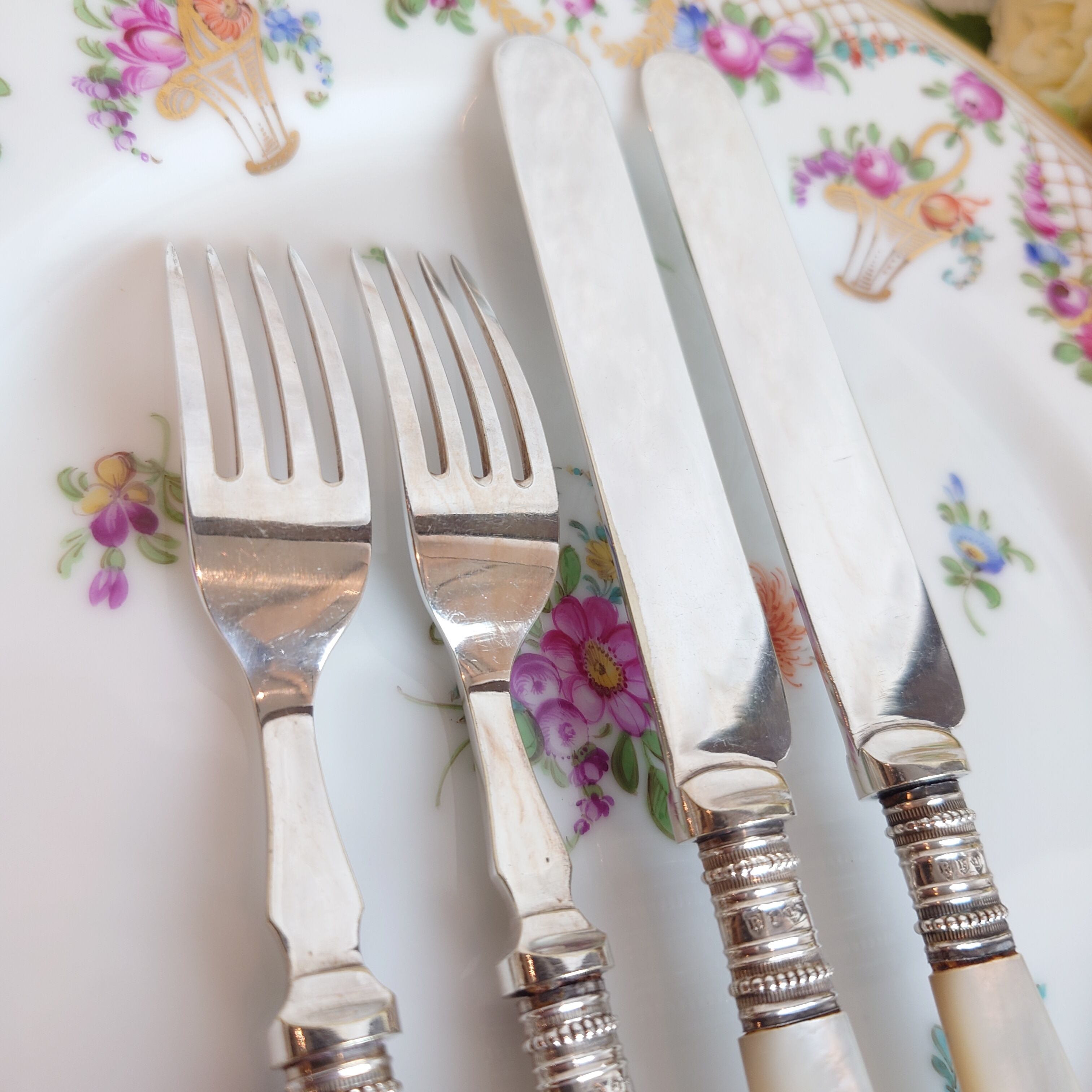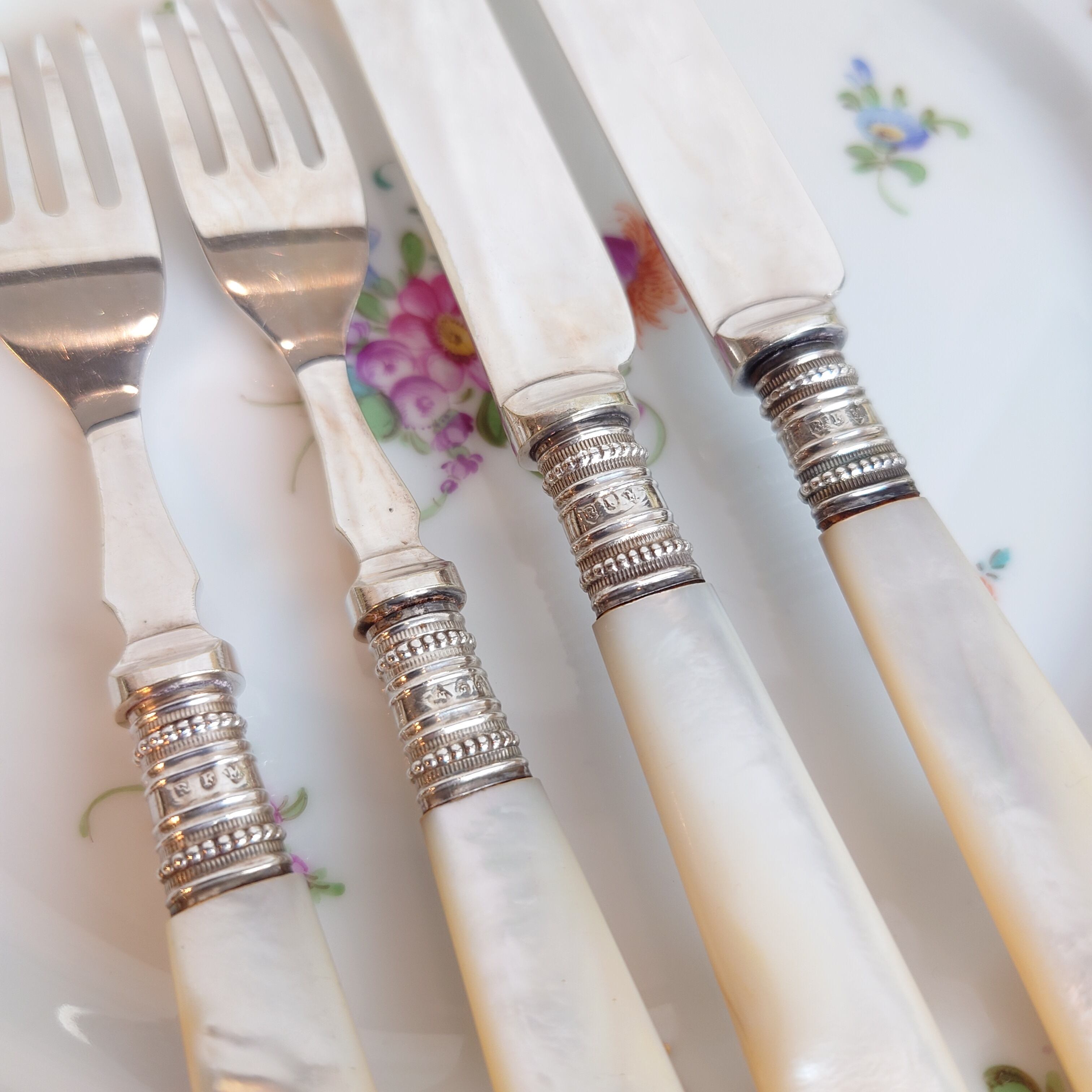 イギリス製 デザートカトラリーセット 白蝶貝ハンドル セットC