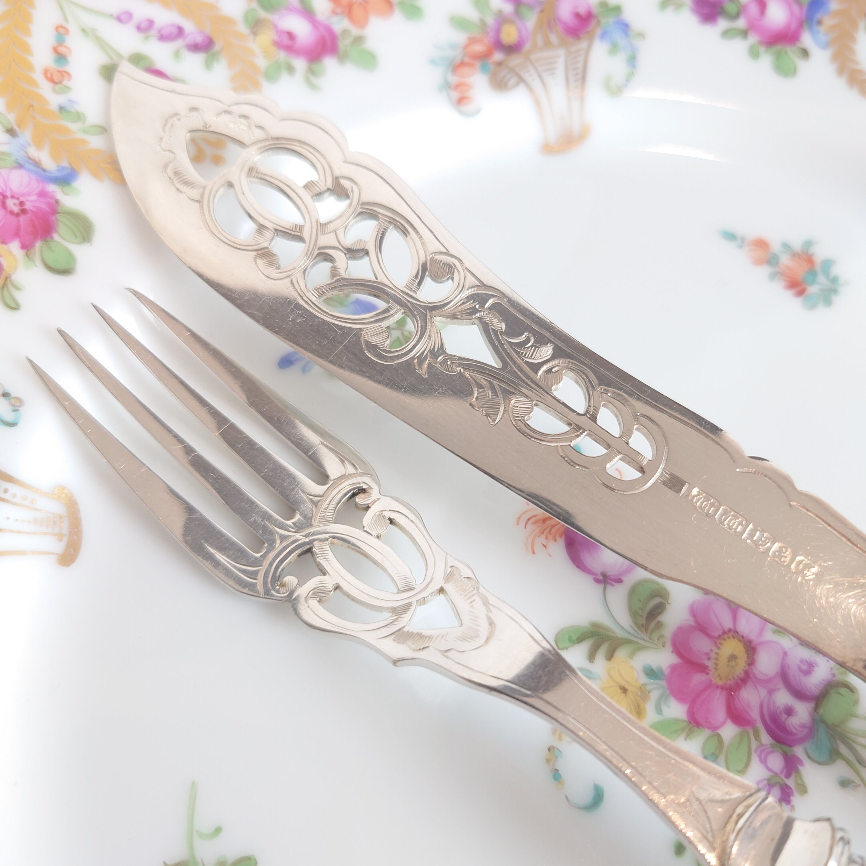 ナイフ、フォーク共に刃先にピアッシングが施されており、大変凝った造りです。