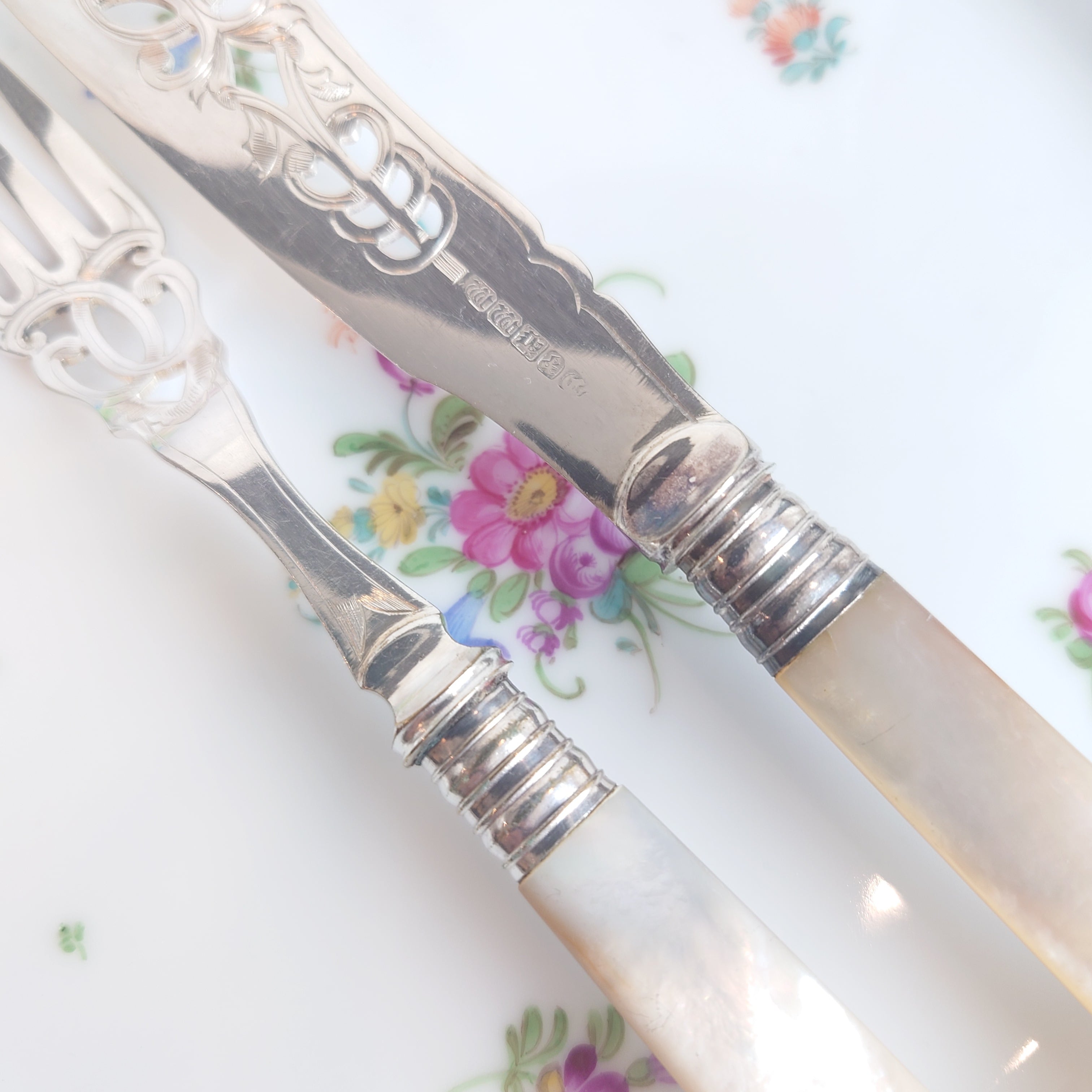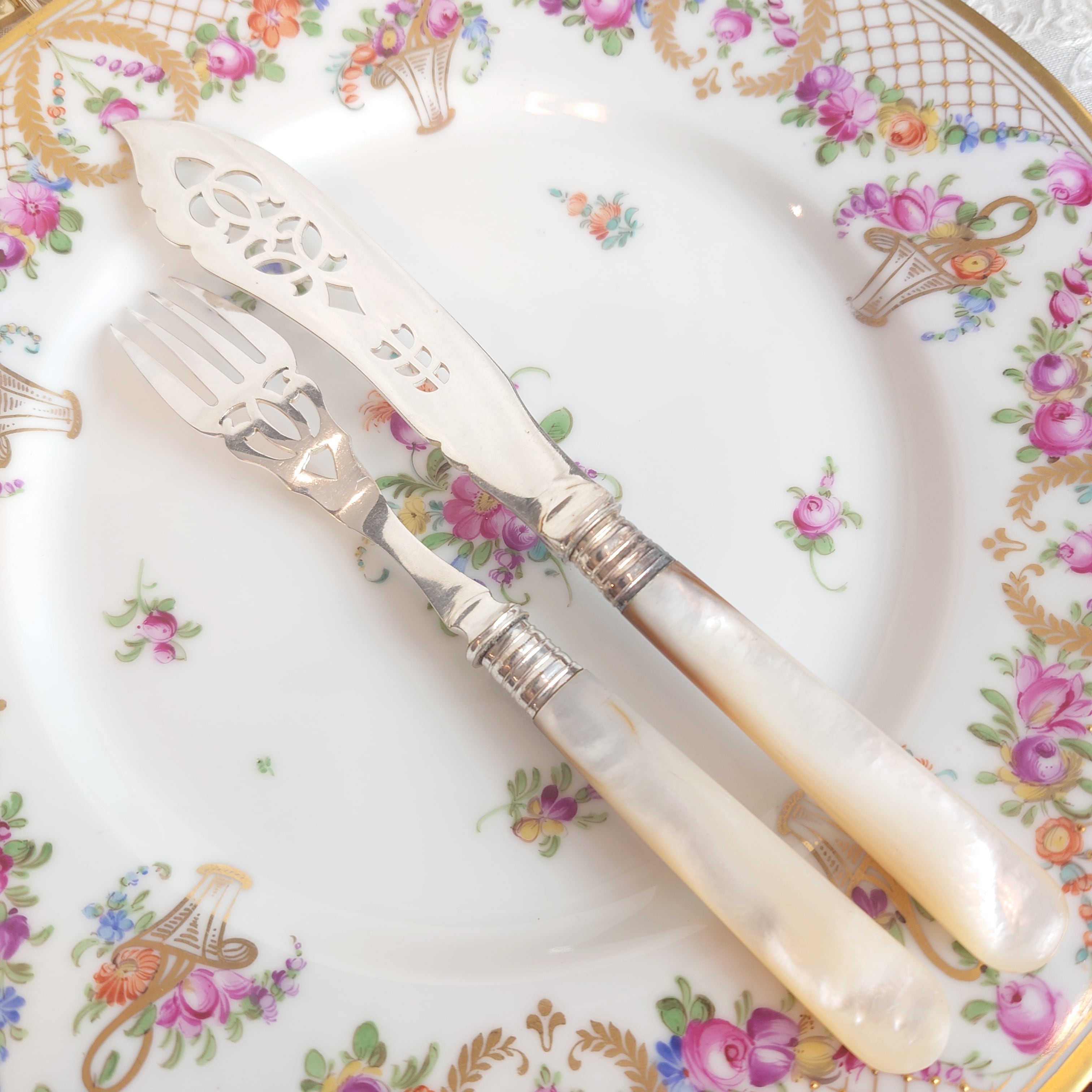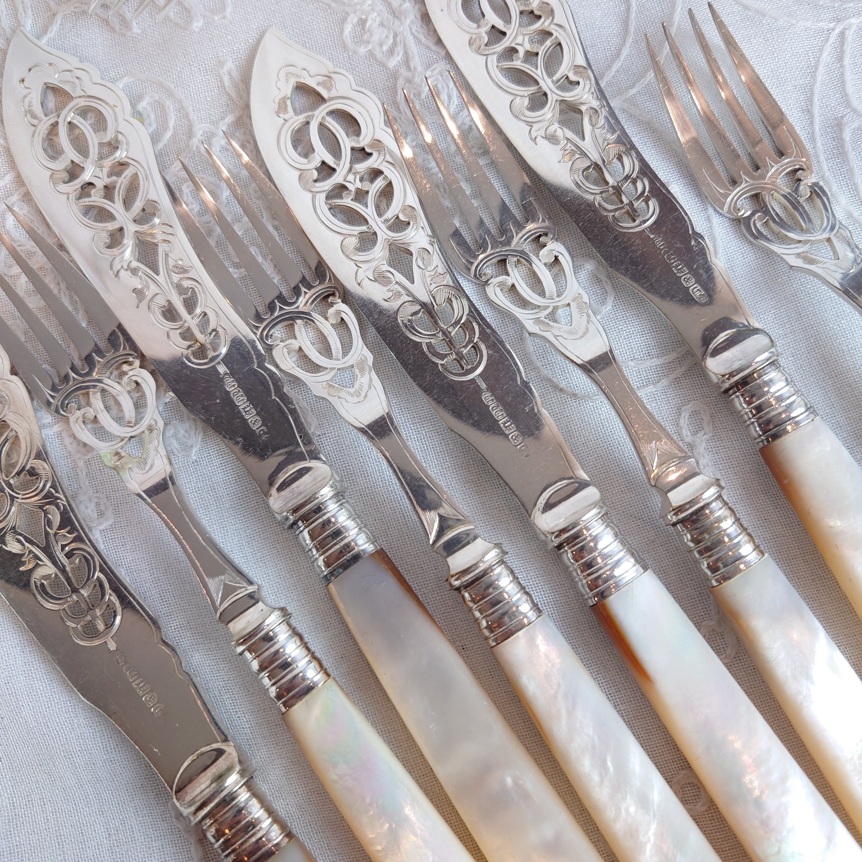 アンティークの白蝶貝ハンドルのカトラリーセットです